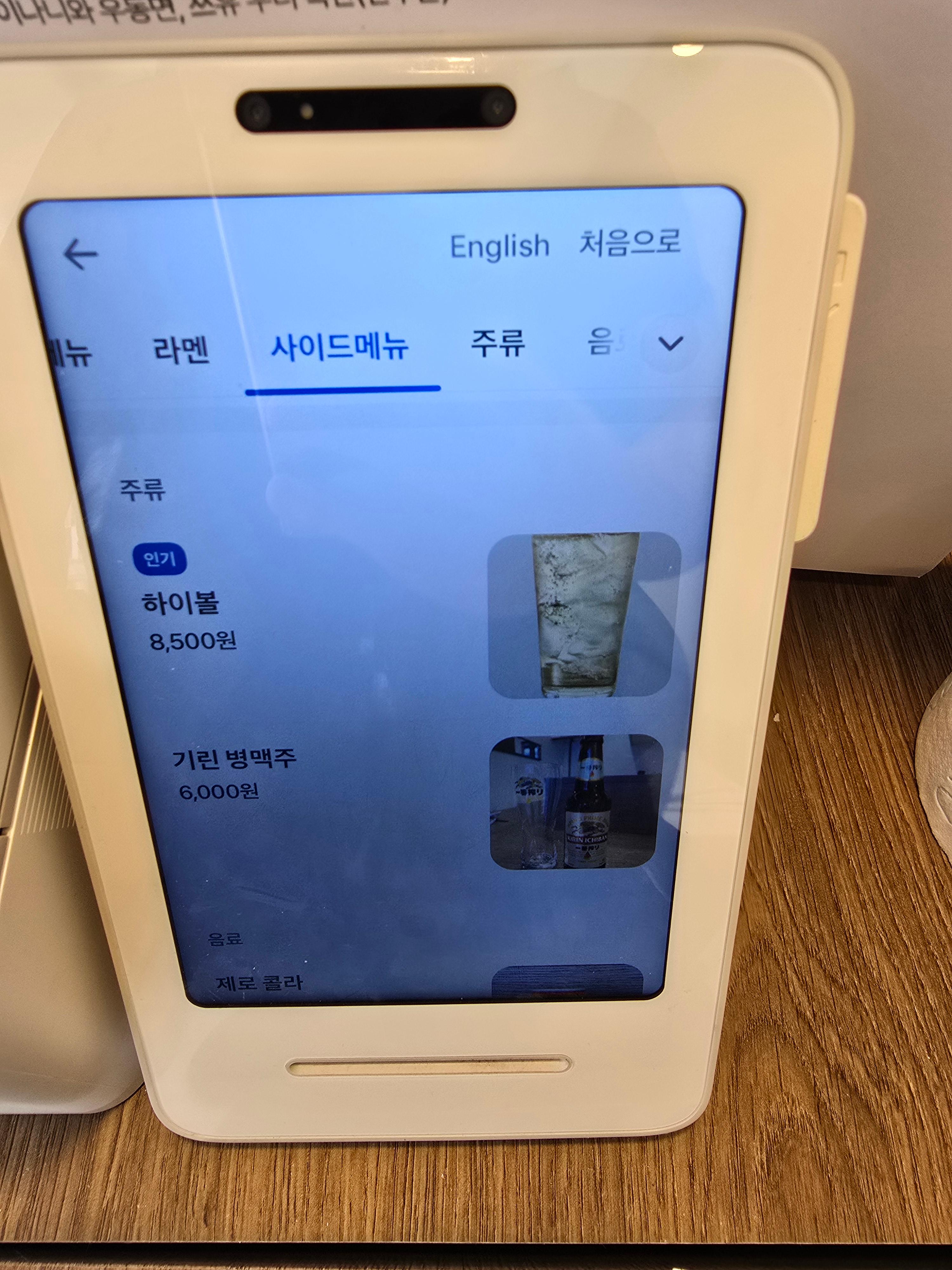 입구에서 키오스크로 주문과 결제를 합니다,