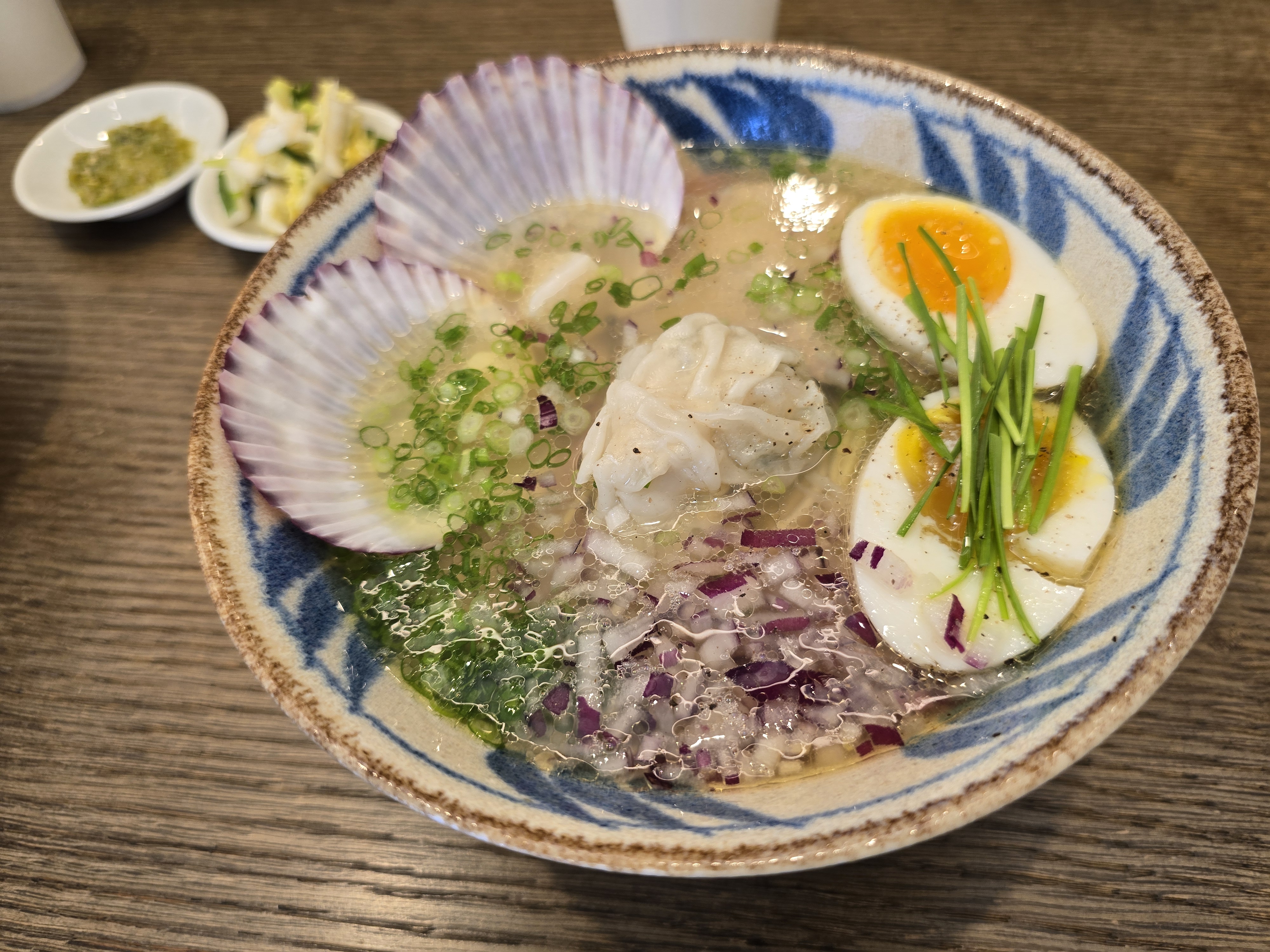 기본 세이 라멘과 외관상 차이점은 홍가리비가 2개 올려져 있는 점입니다.