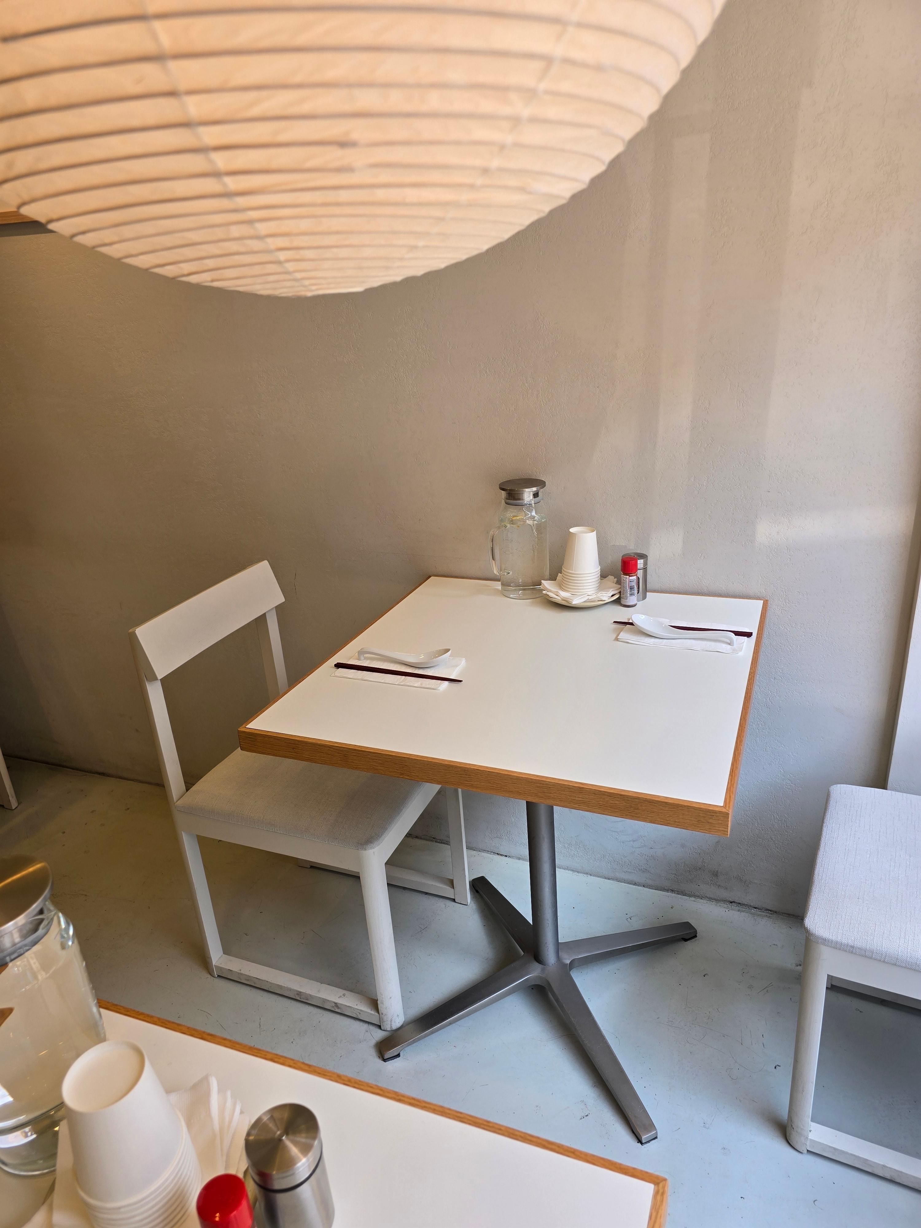 실내는 다치8석과 2인테이블 두개의 아담하면서 밝은 톤의 깔끔한 인테리어가 돋보입니다