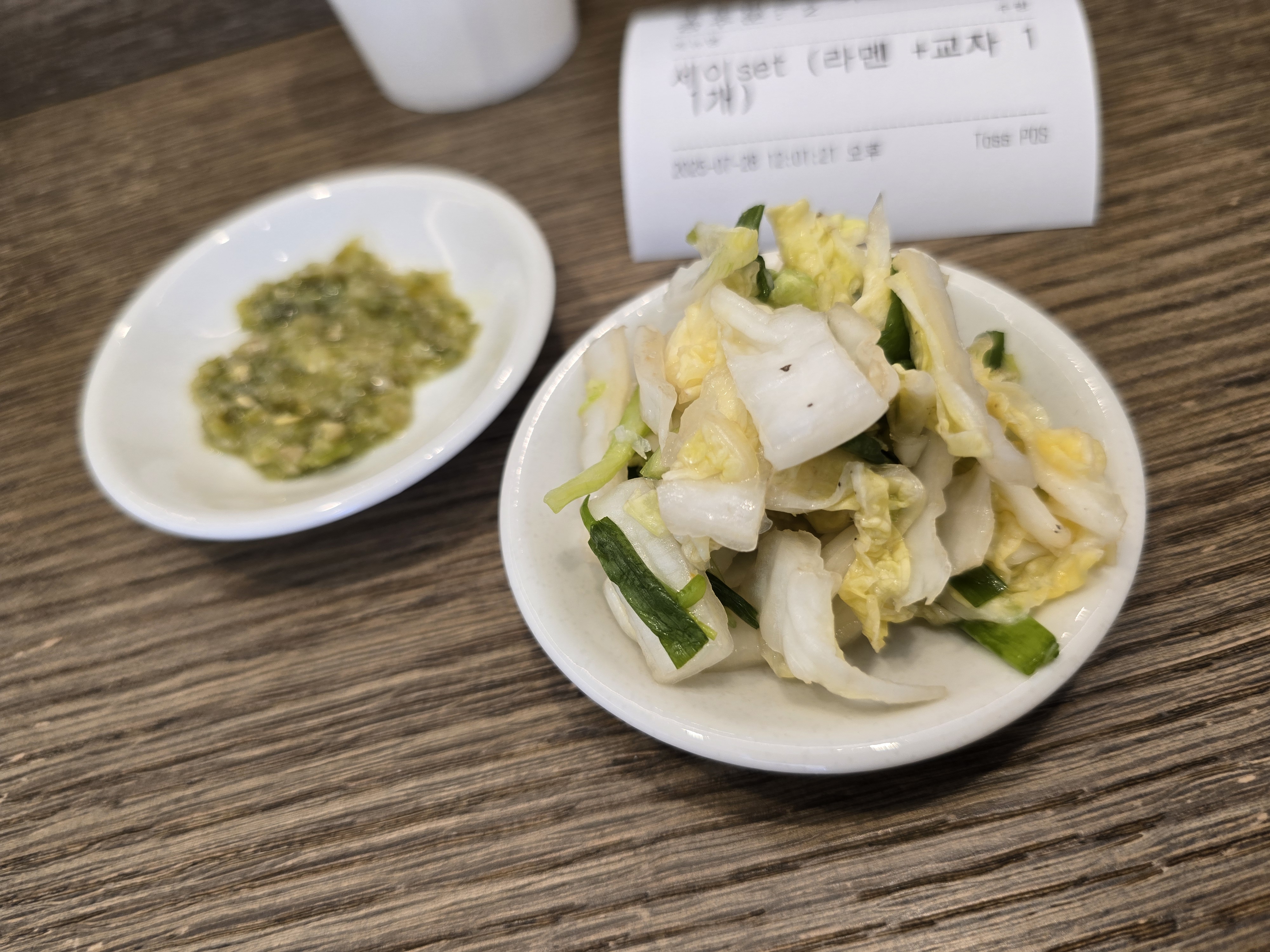자리를 잡고 앉으면 유자백김치절임과 갈은 청양고추를 작은 그릇에 담아 내줍니다. 유자김치절임이 유자향이 나서 맛잇습니다 .