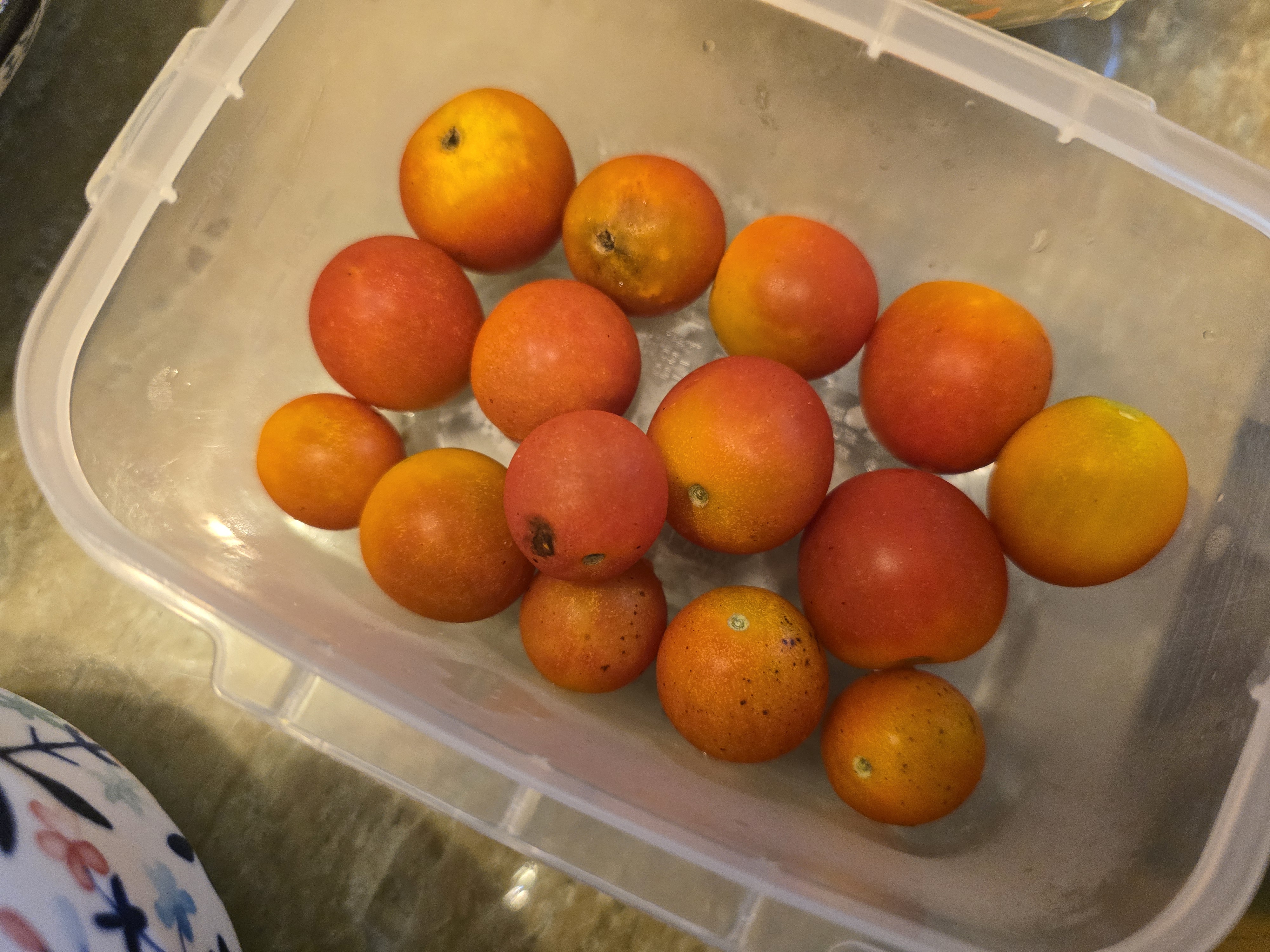 조그만 텃밧에서 수확안 방울 토마토.... 야채 샐러드에 넣어 먹엇습니다.