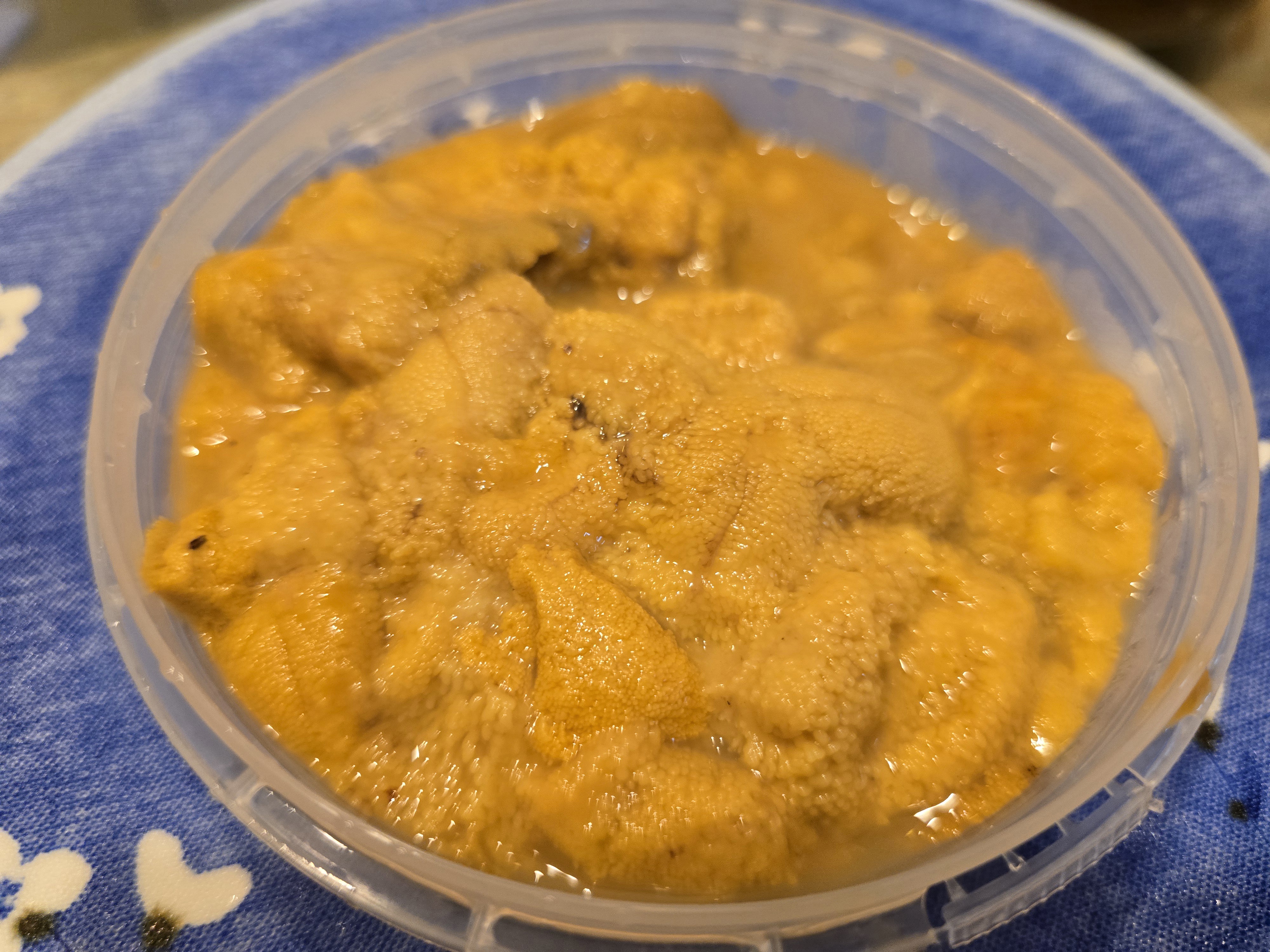 6월에서 8월까지가 보라성게의 제철이라고 합니다. 요즈음 제일 맛있고 가격도 저렴하다고 해서 주말에 도착한 보라성게알 200그램입니다. 더운 날씨에도 얼음팩으로 잘 포장되어 도착한 보라성게입니다.