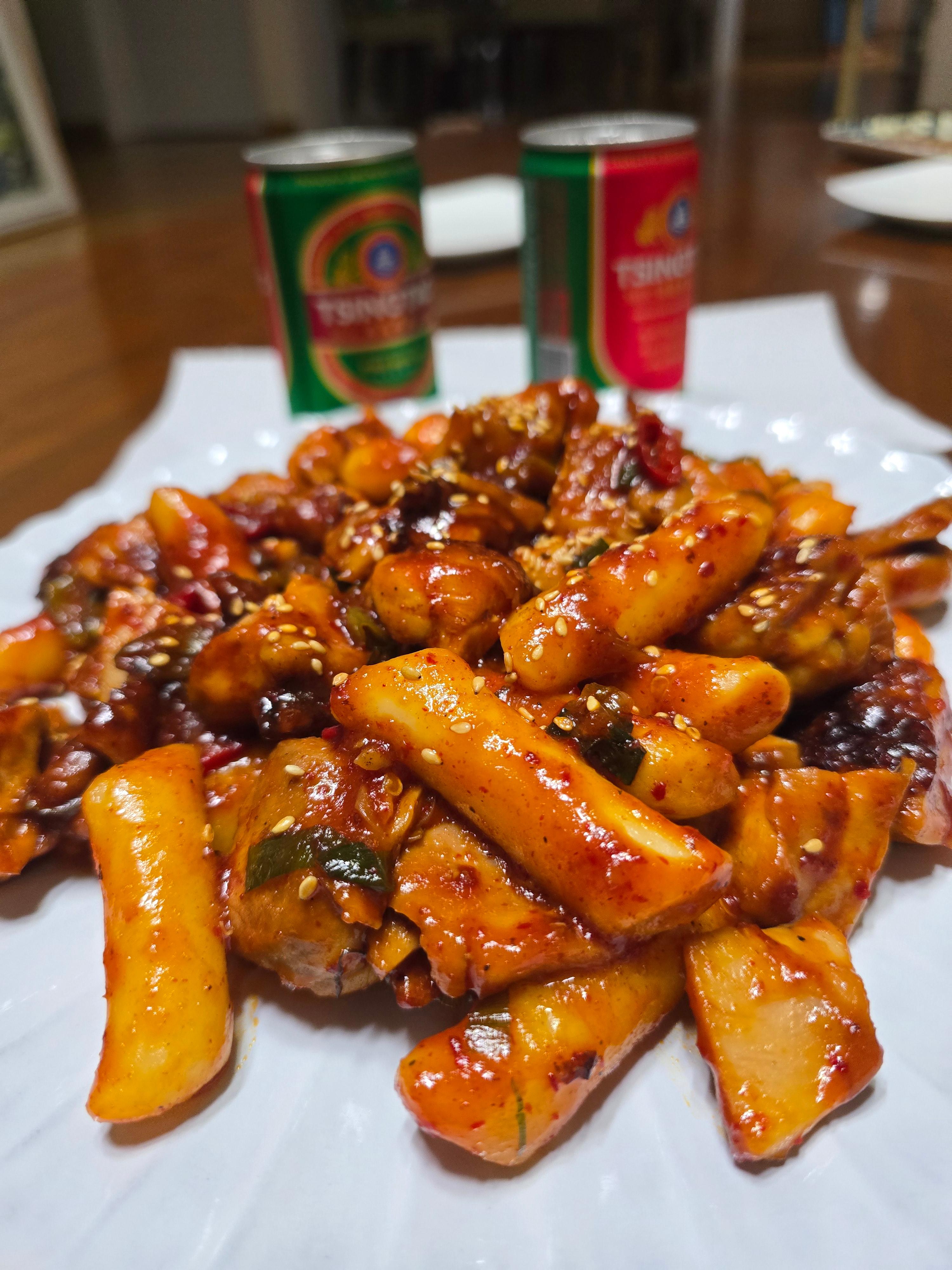 TV보면서 맥주와 떡볶기.... 남이 만들어 주면 다 맛잇습니다 .