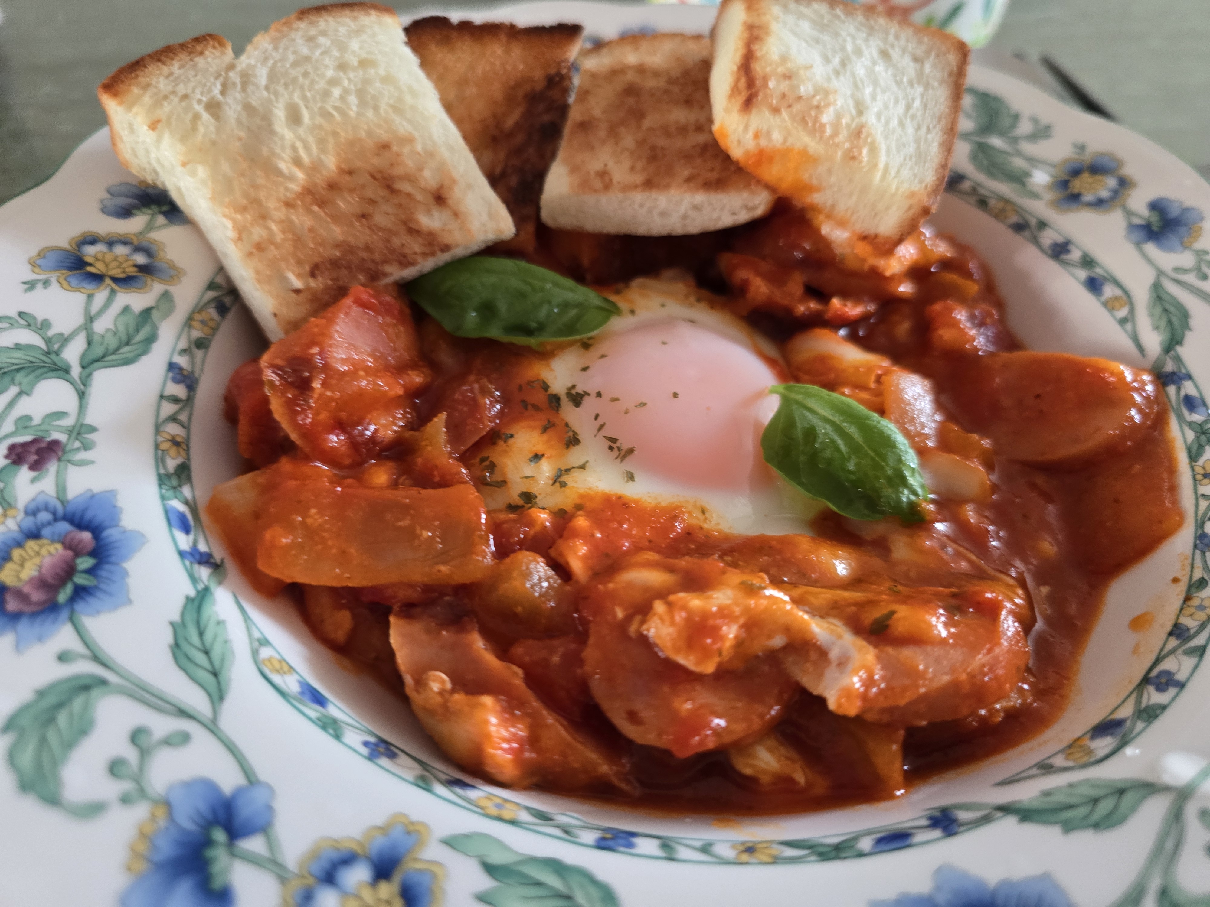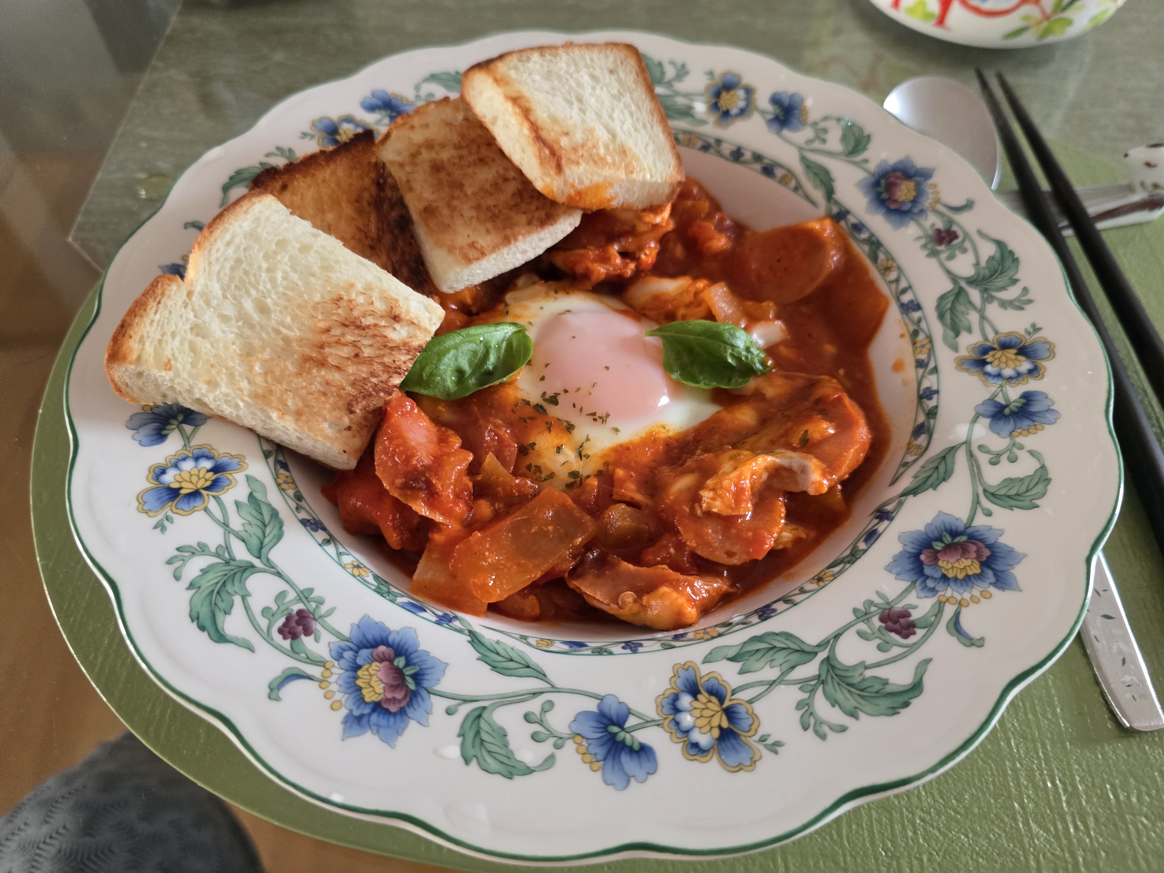 주말 점심 ... 소세지 토마토소스, 계란후라이, 바질을 토핑하여 맛있게 먹엇습니다.