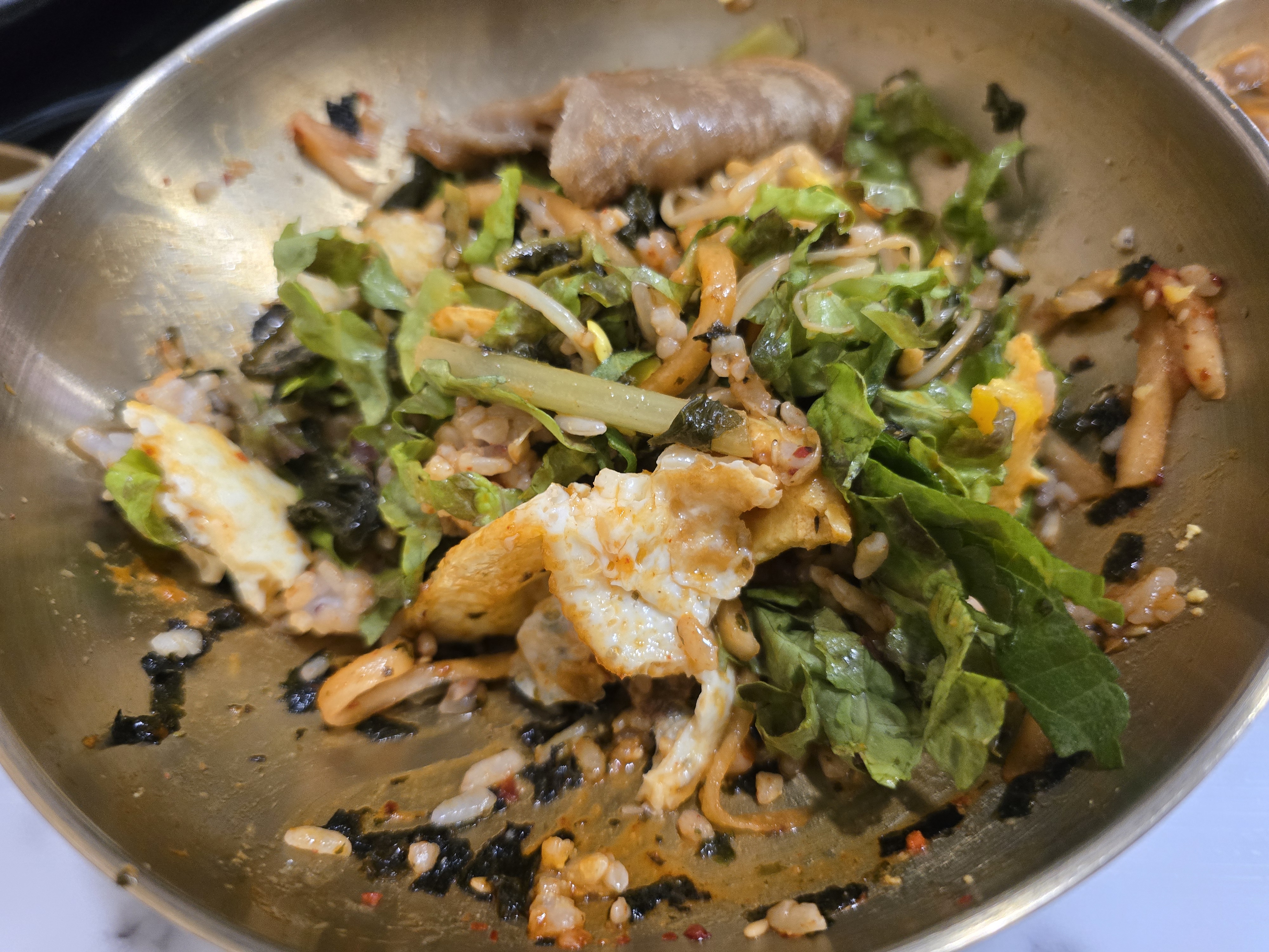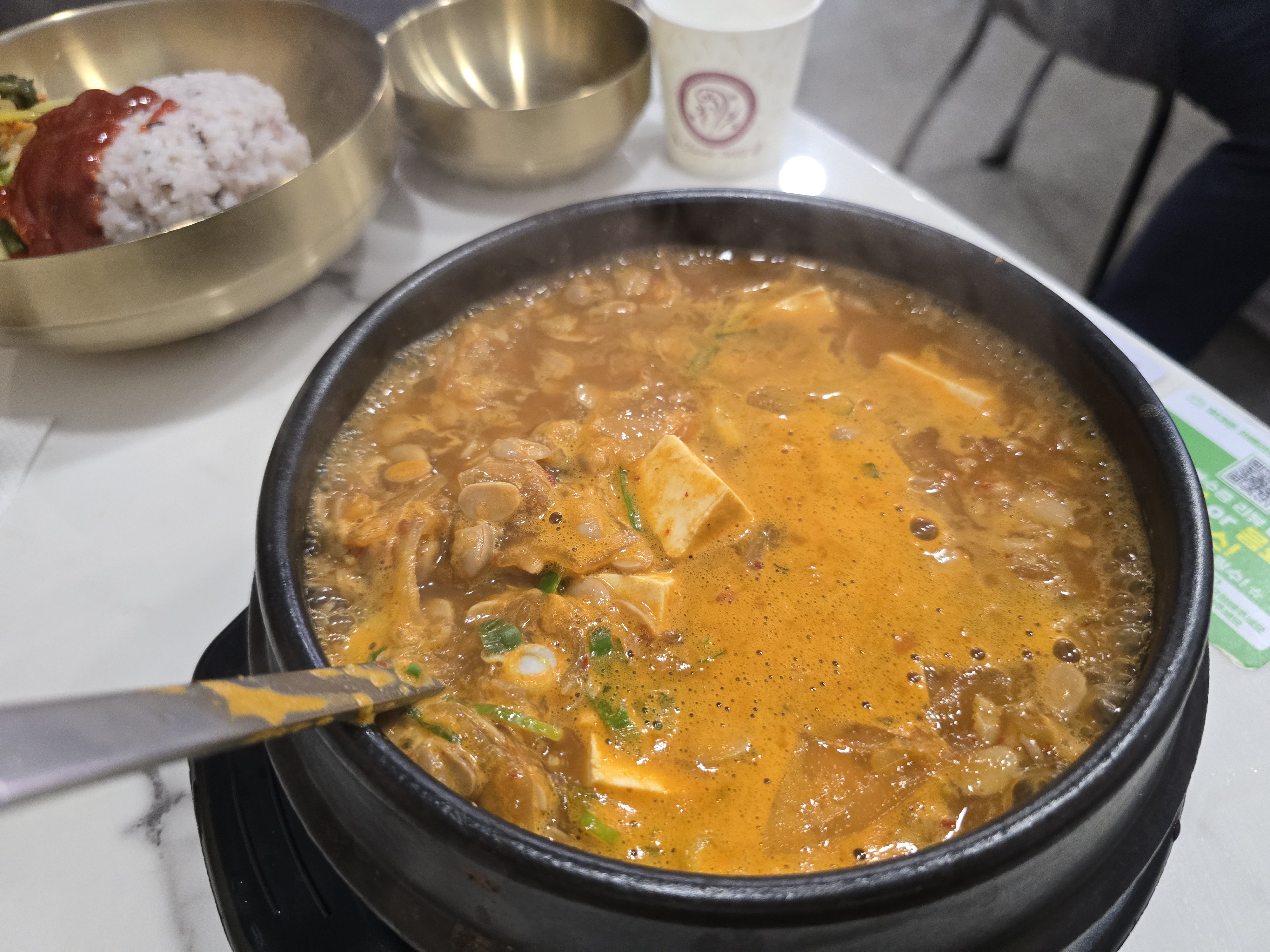 청국자을 크게 한숫가락떠서 같이 비벼 먹으니 맛잇습니다 . 청국장은 적당히 구수한 냄새도 나면서 짜지 않아 그대로 먹어도 맛있엇습니다 . 부드럽게 씹히는 청국장콩의 식감도 좋앗습니다. 근래에 보기드문 맛있는 청국장으로 전문점이라 할 만 했습니다.