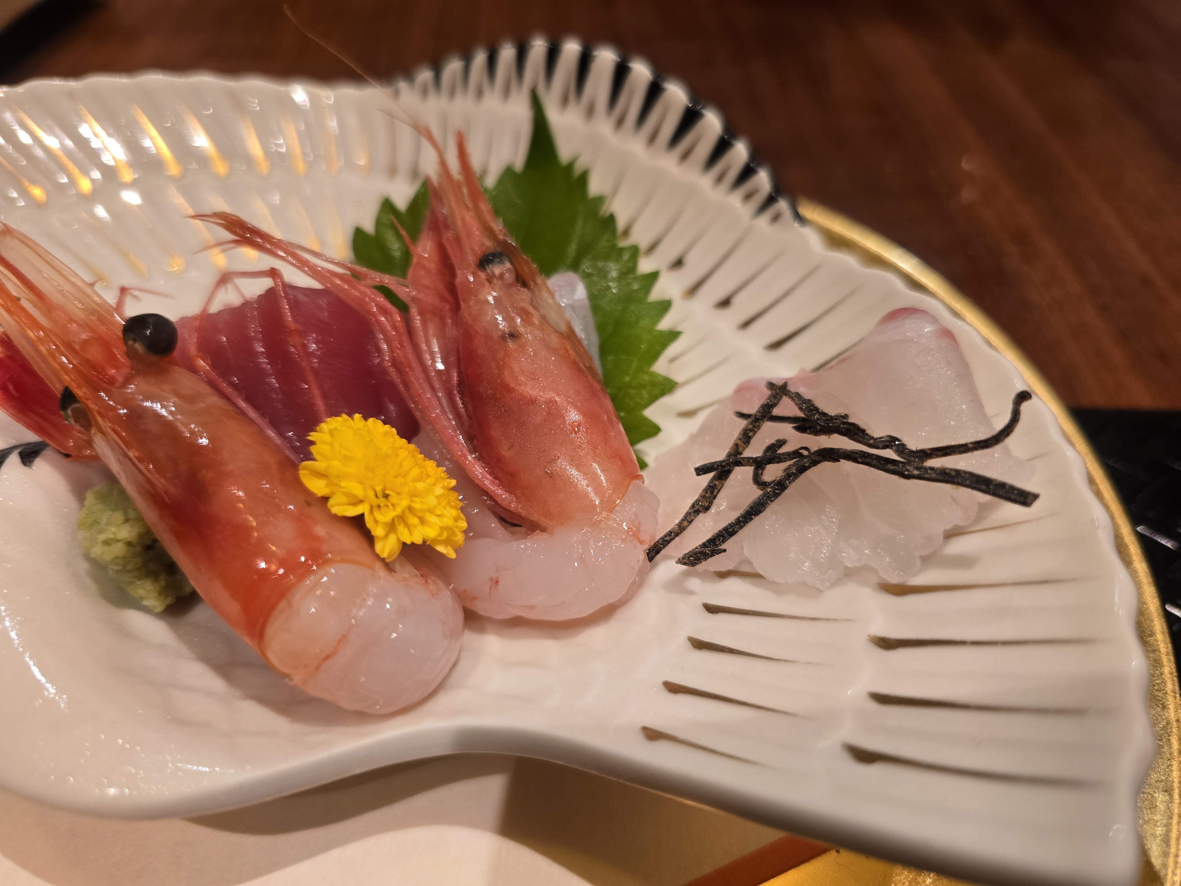 도미회를 다시마를 곁들여 먹으면 감칠맛이 더 좋다고 합니다. 단새우도 맛잇습니다.