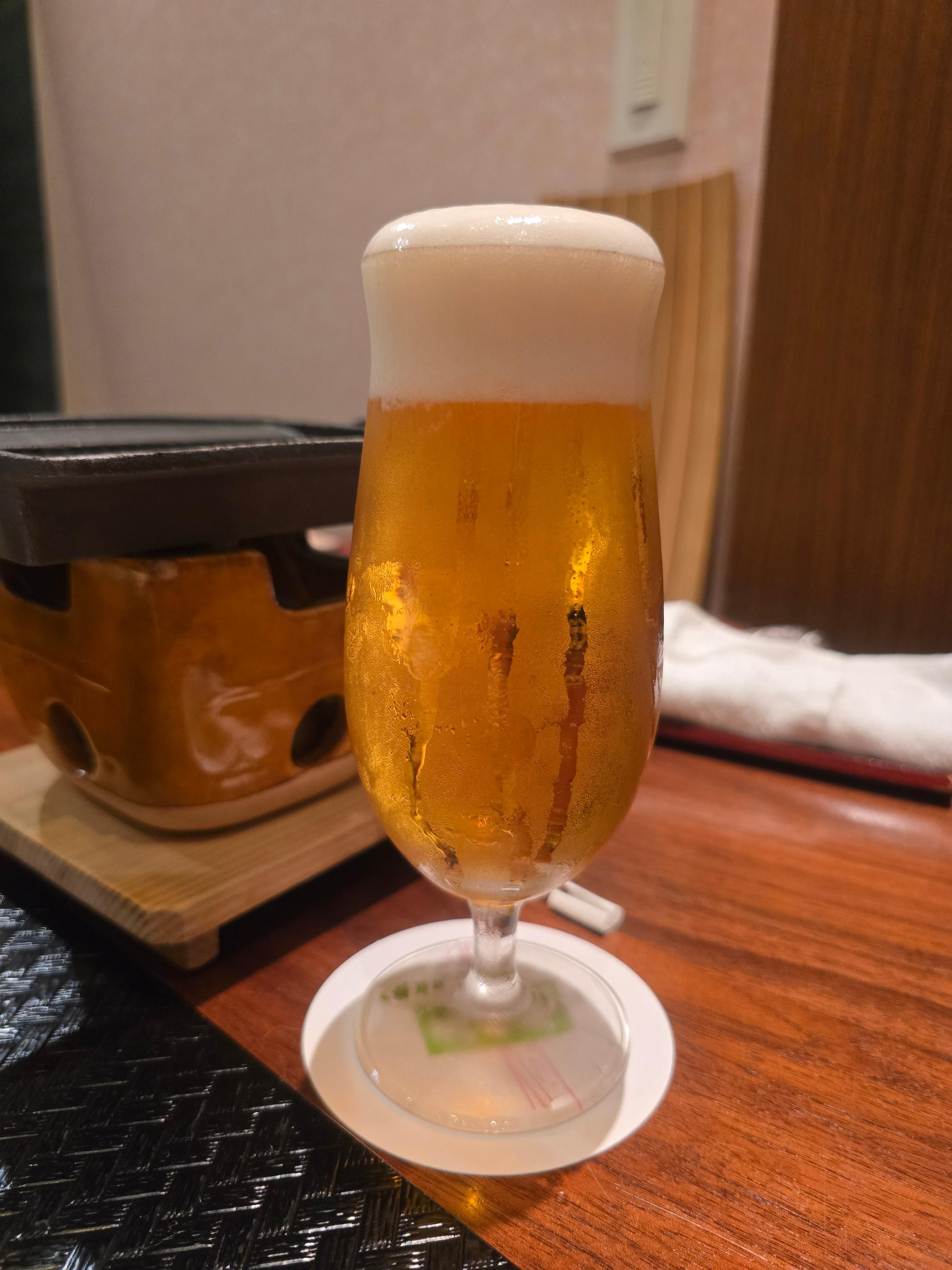 맛있는 요리와 더불어 축하주로 생맥주를 주문합니다 .