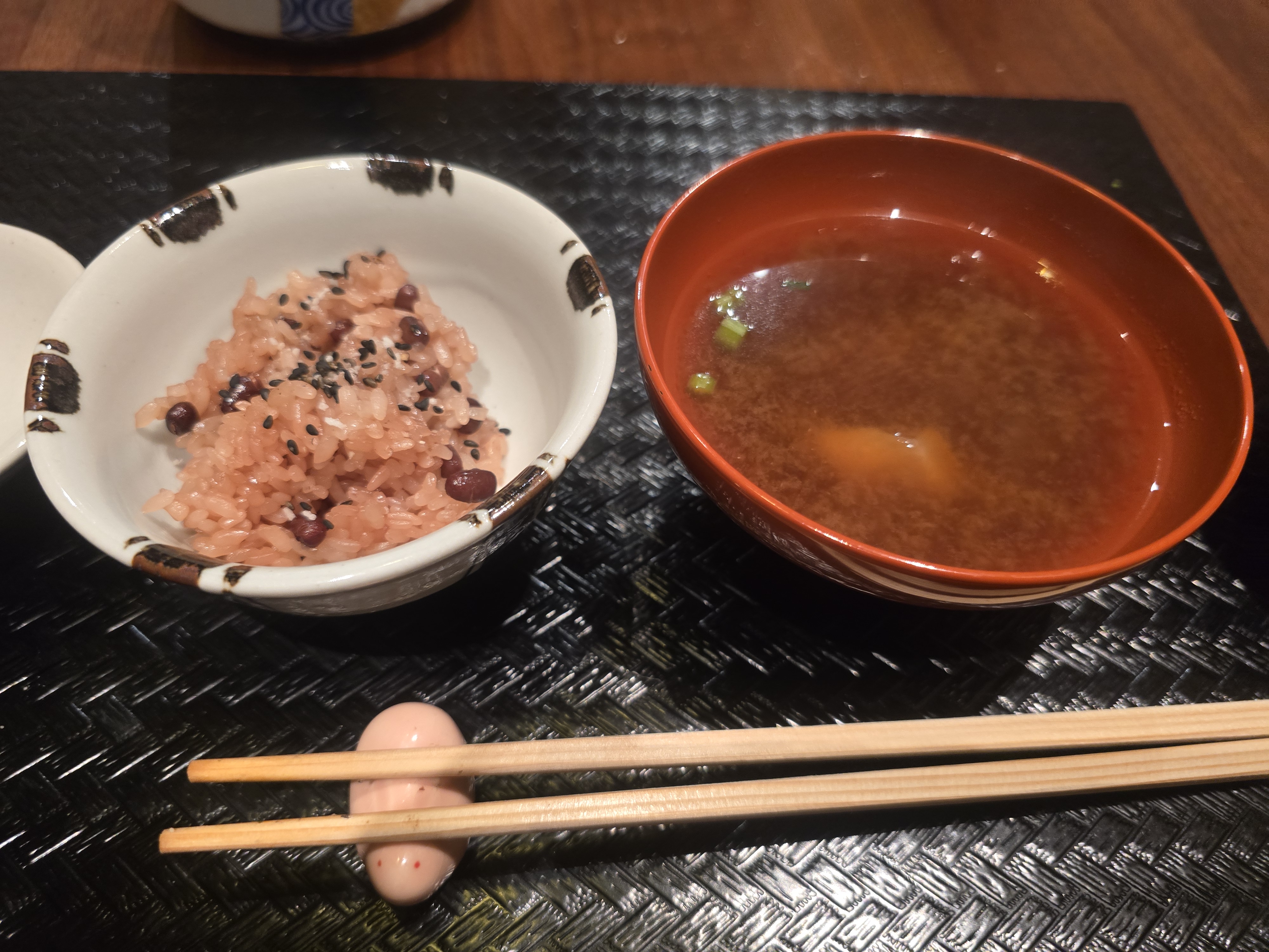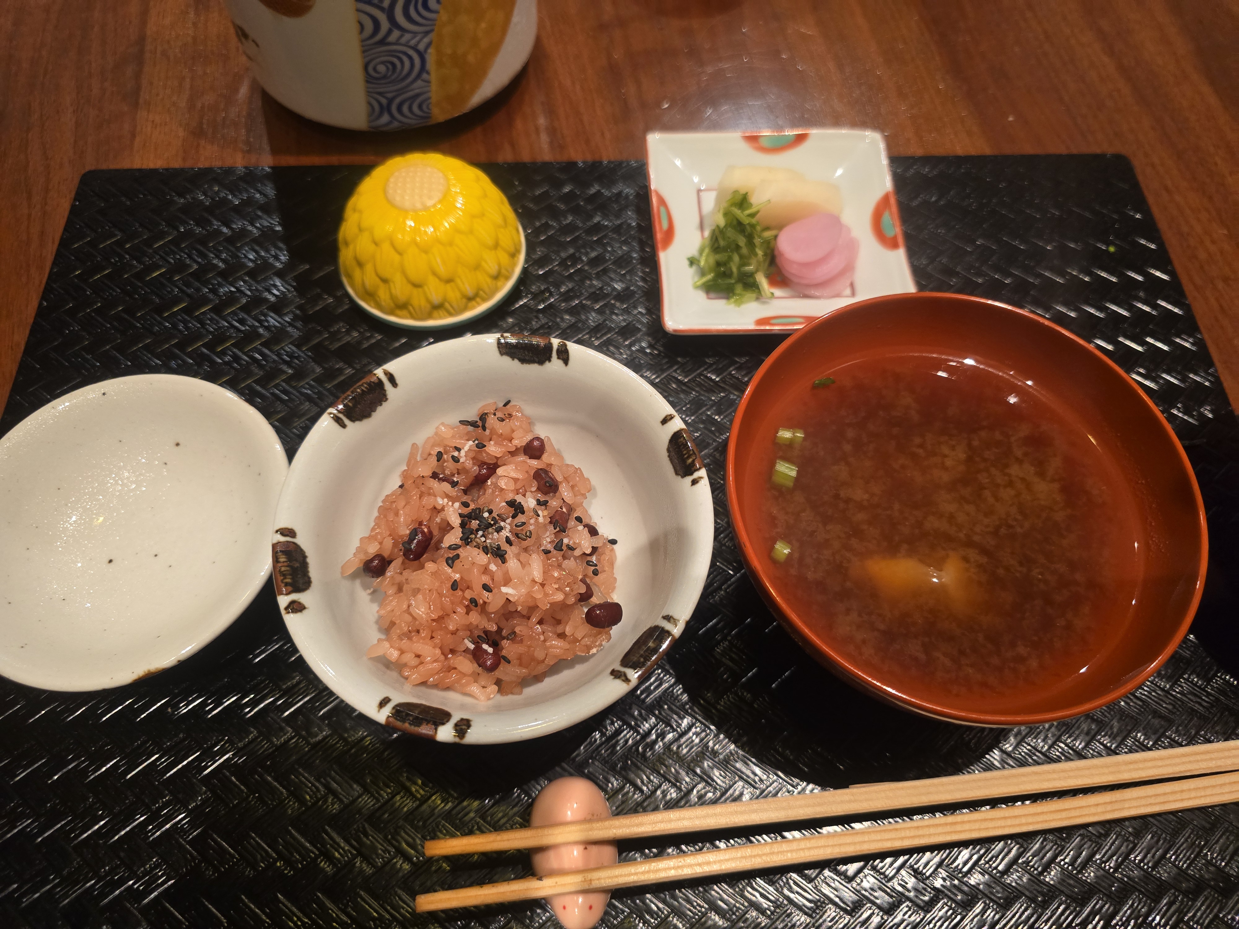 가이세키 코스가 마무리로 접어 들었습니다. 경사스런 날에 먹는 아카항(팥잡곡밥)이 나왓습니다.