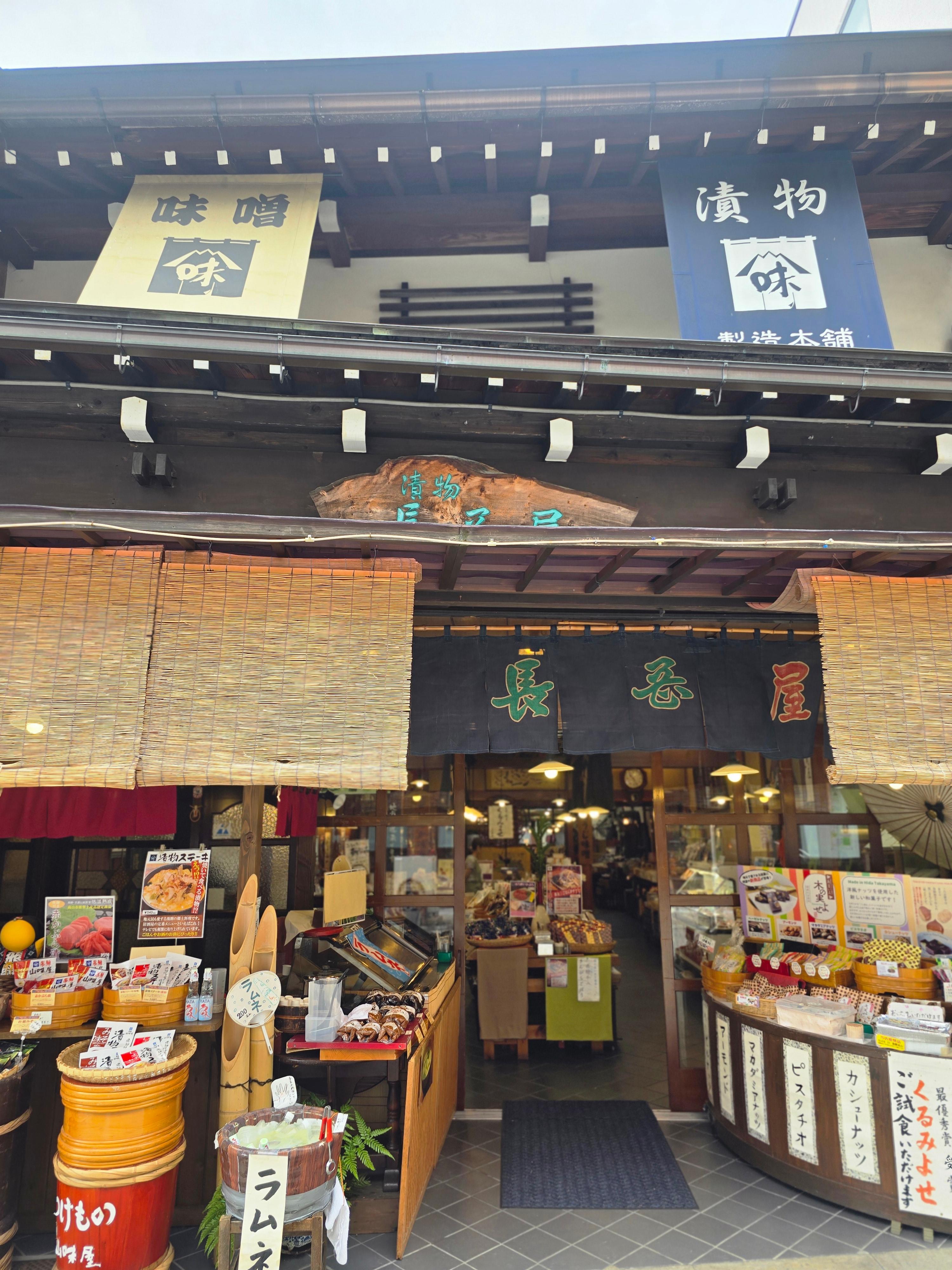 다카야마의 전통된장을 비롯하여 다양한 절임류를 판매하는 매장입니다. 결국 여기서 다카야마의 된장을 하나 샀습니다.