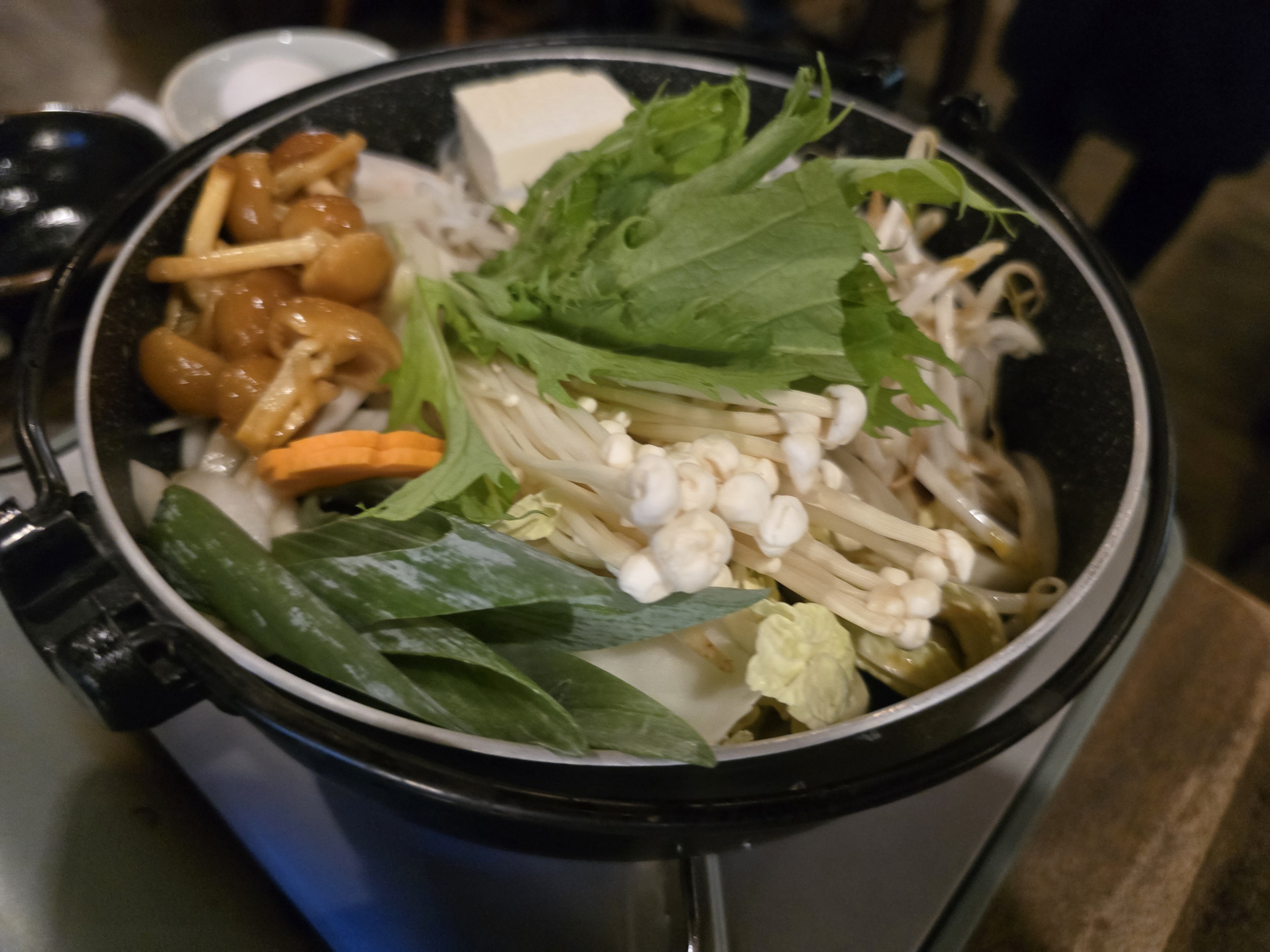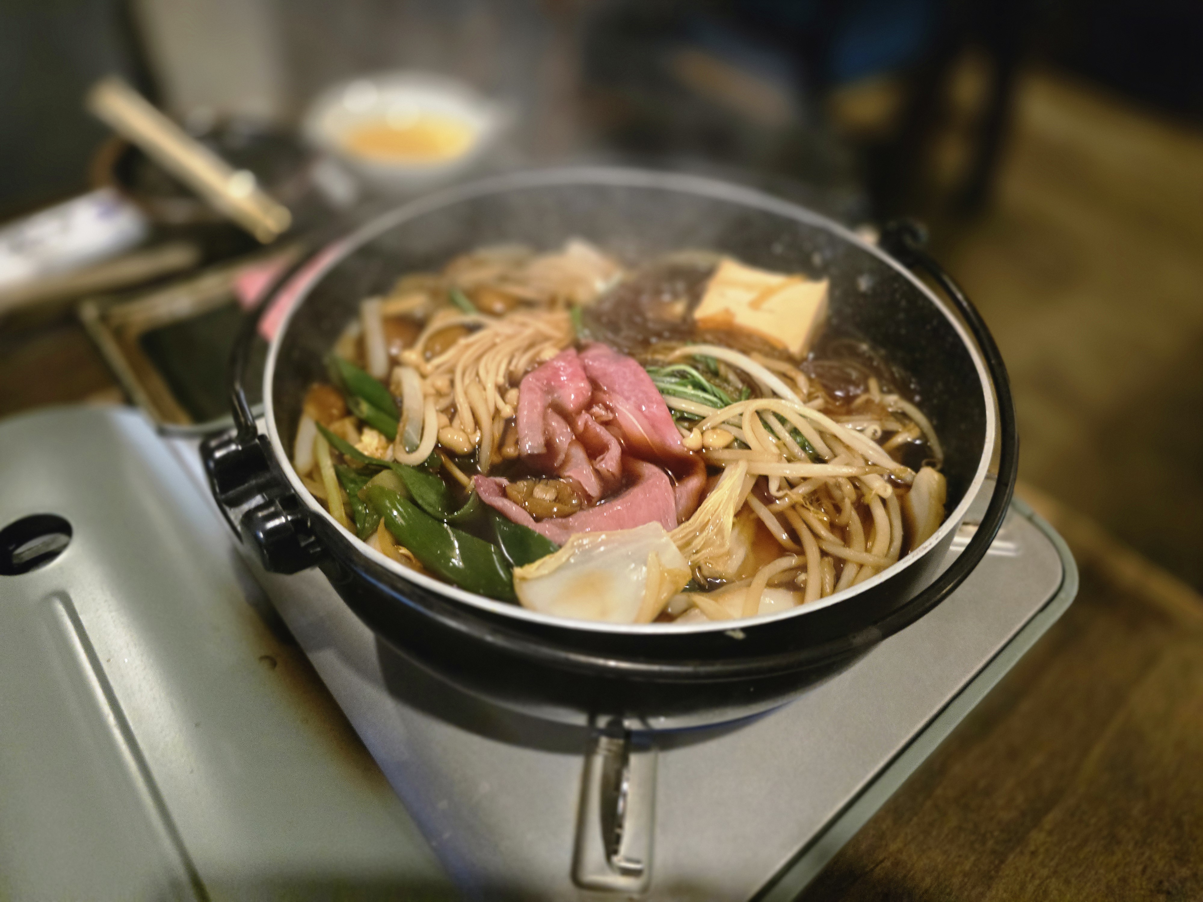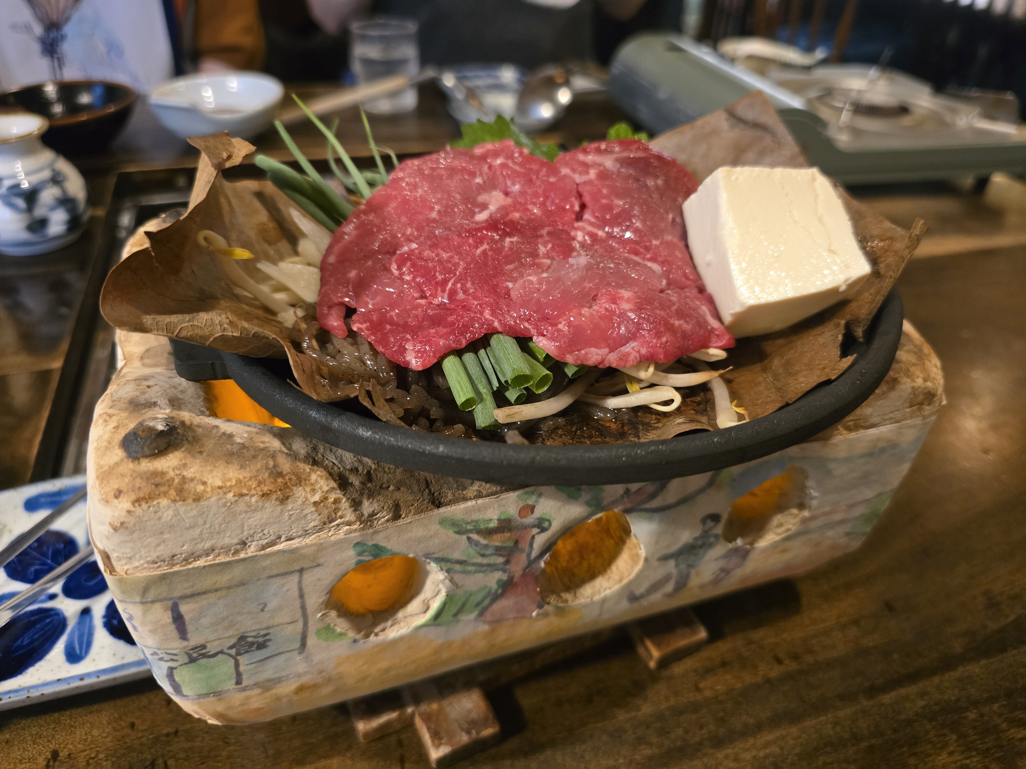 이쪽은 스키야키철판입니다. 야채, 두부, 버섯등 내용물은 샤브샤브나 대동소이 합니다