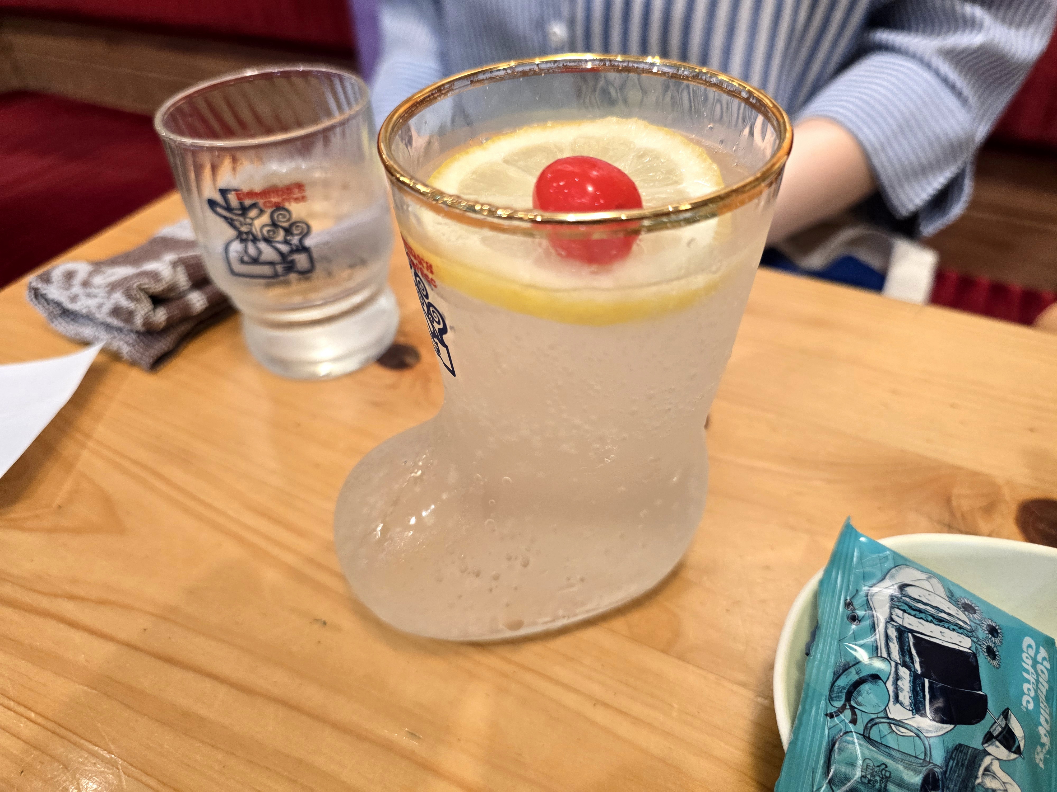 레몬스카쉬 ... 신발모양의 유리잔에 나왓습니다.