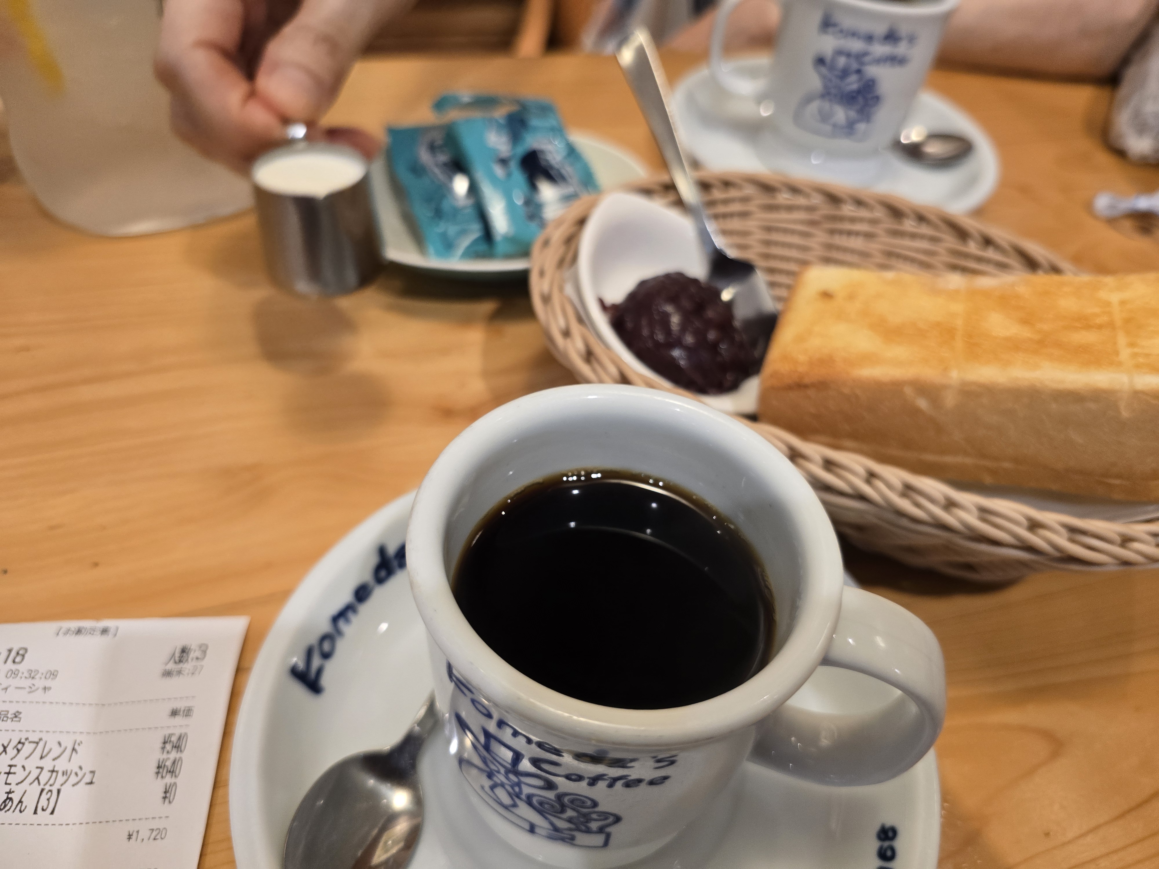 고메다커피의 모닝세트.... 브랜드커피에 두툼한 식빵반쪽과 단팥소스 , 그리고 나고야커피숖의 독특한 문화인 스낵이 딸려 왓습니다.