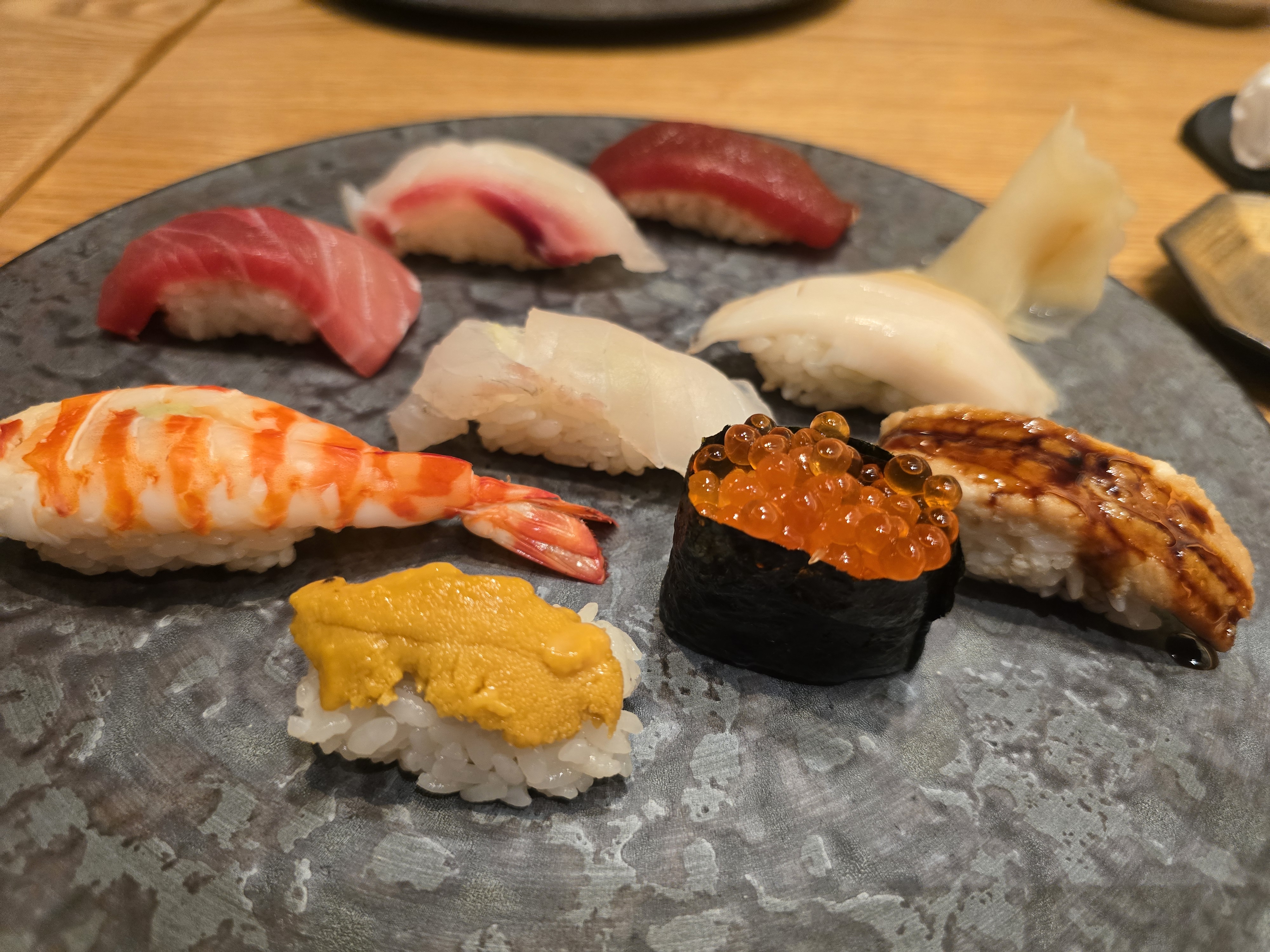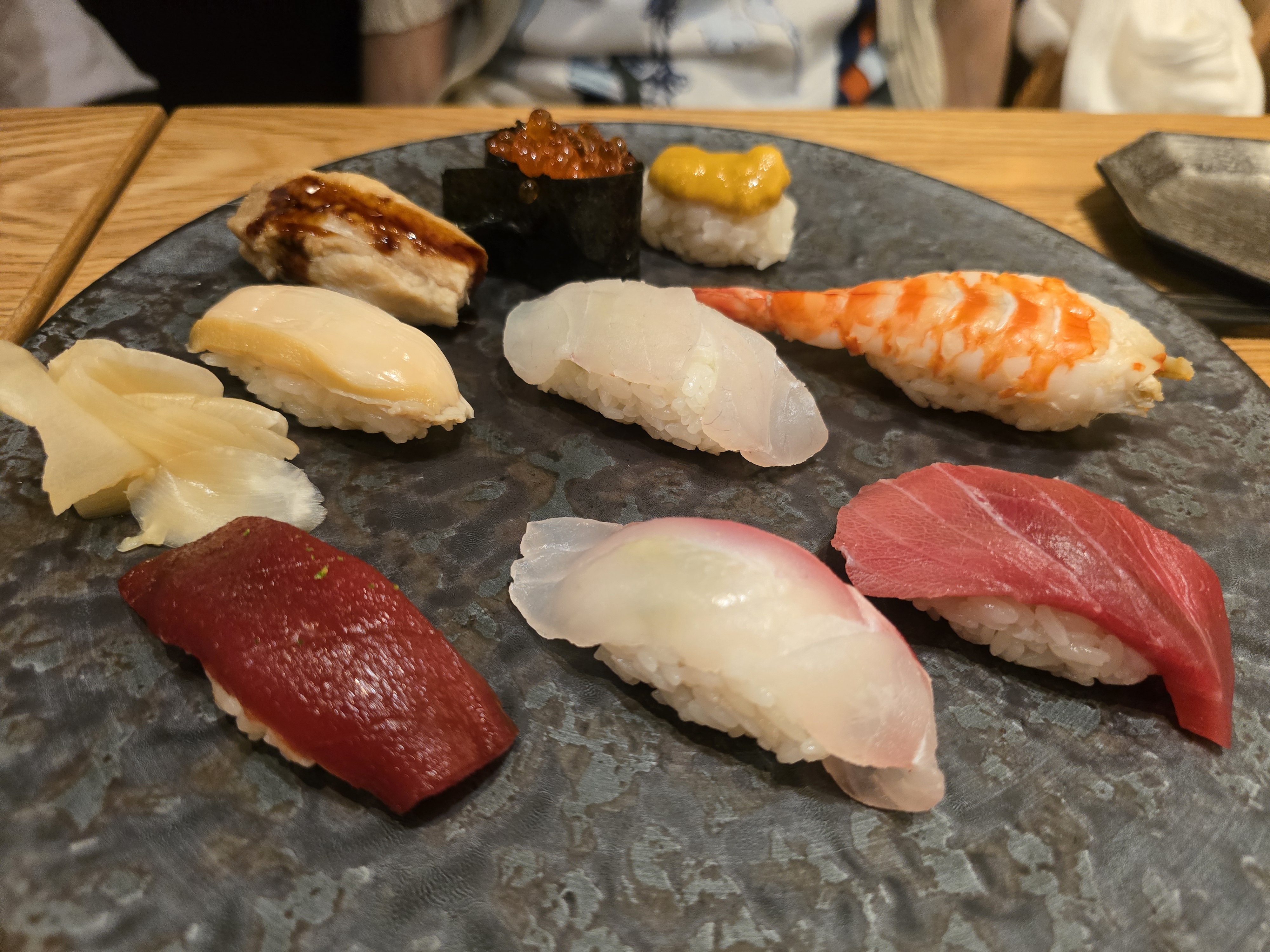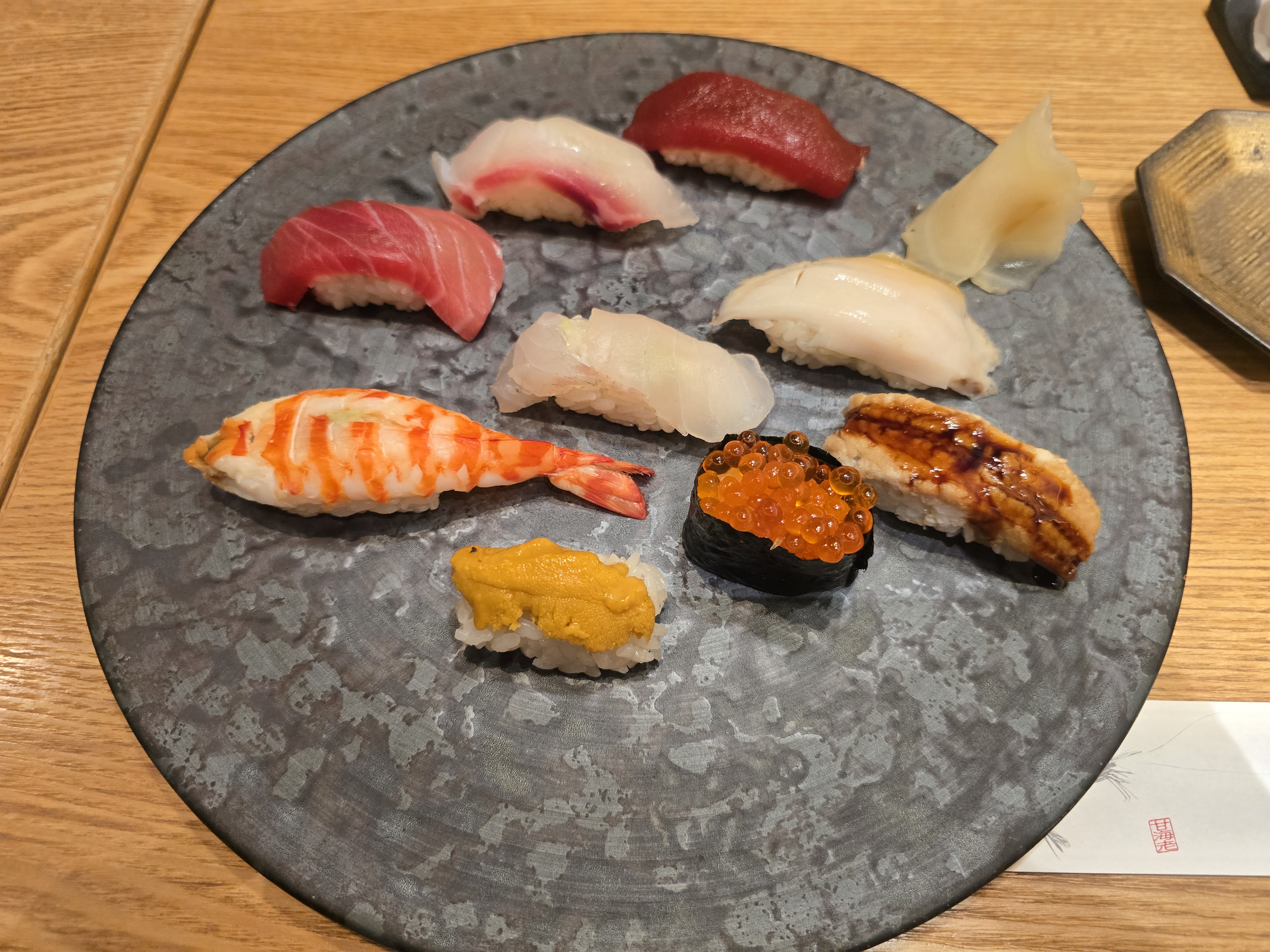 여러가지 먹고 싶은 것은 많았지만 아침을 먹은지 얼마 되지 않아서 기본 스시 9칸세트로 주문하였습니다