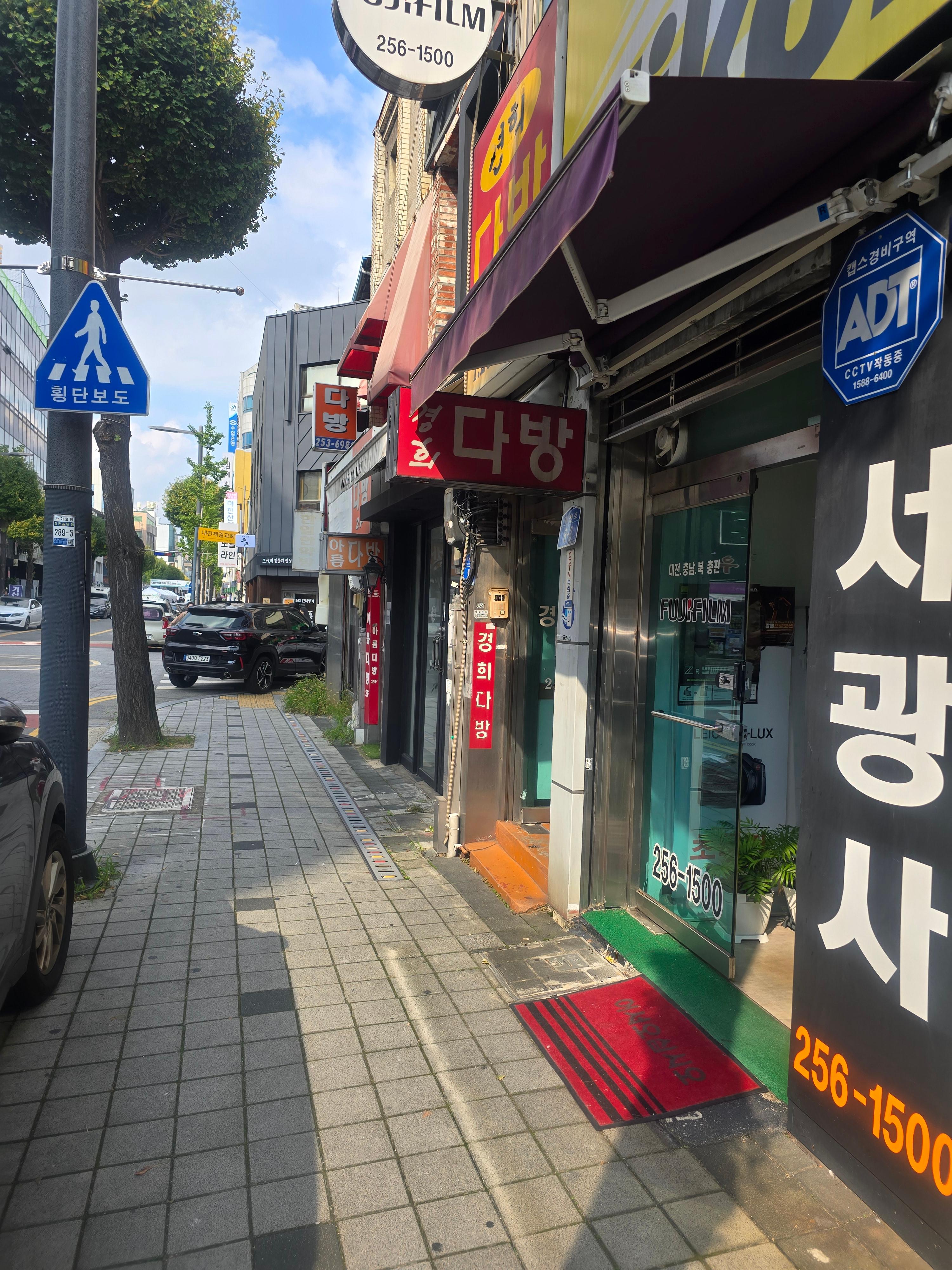 점심을 맛있게 먹고 차한잔하러 시장 건너편 상가거리로 걸러가 봅니다 . 멀리 대전역이 보이네요.