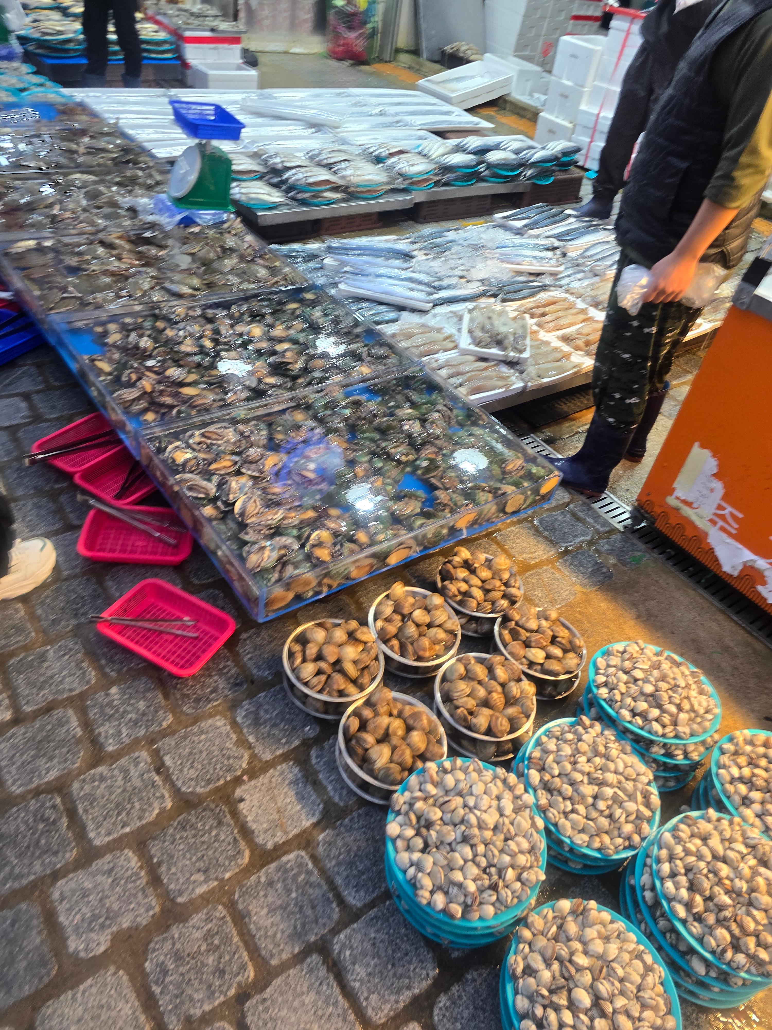 오전에 흐렸던 날씨가 점심시간이 되자 맑아졌습니다 . 한적한 재래사장에 단체 관광객들이 들어서니 갑자기 활기를 띄기 시작 했습니다