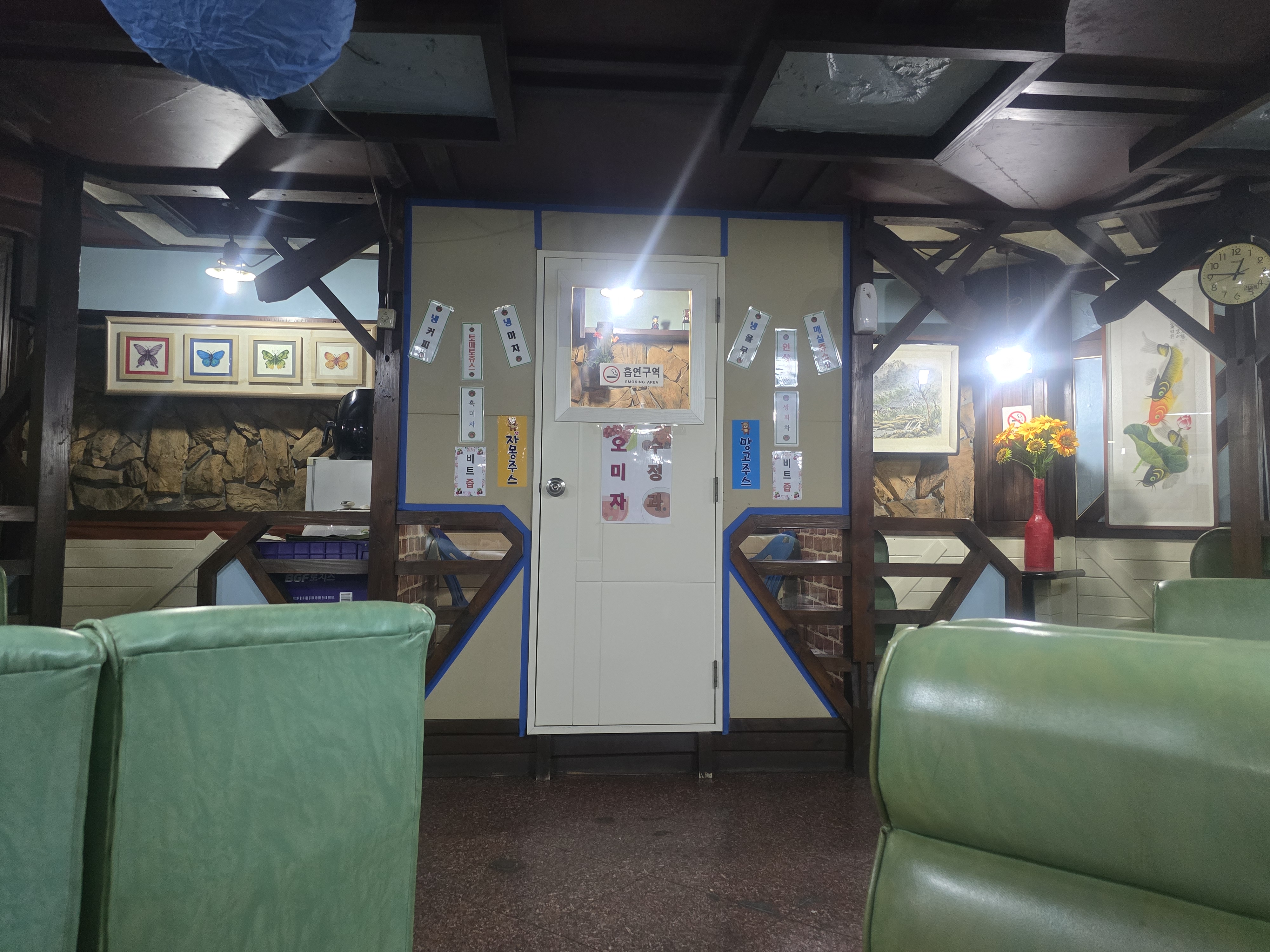 지하에서 담배를 피울 수 있도록 흡연실도 따로 설치되어 있습니다. 자리를 잡고 둘러보니
