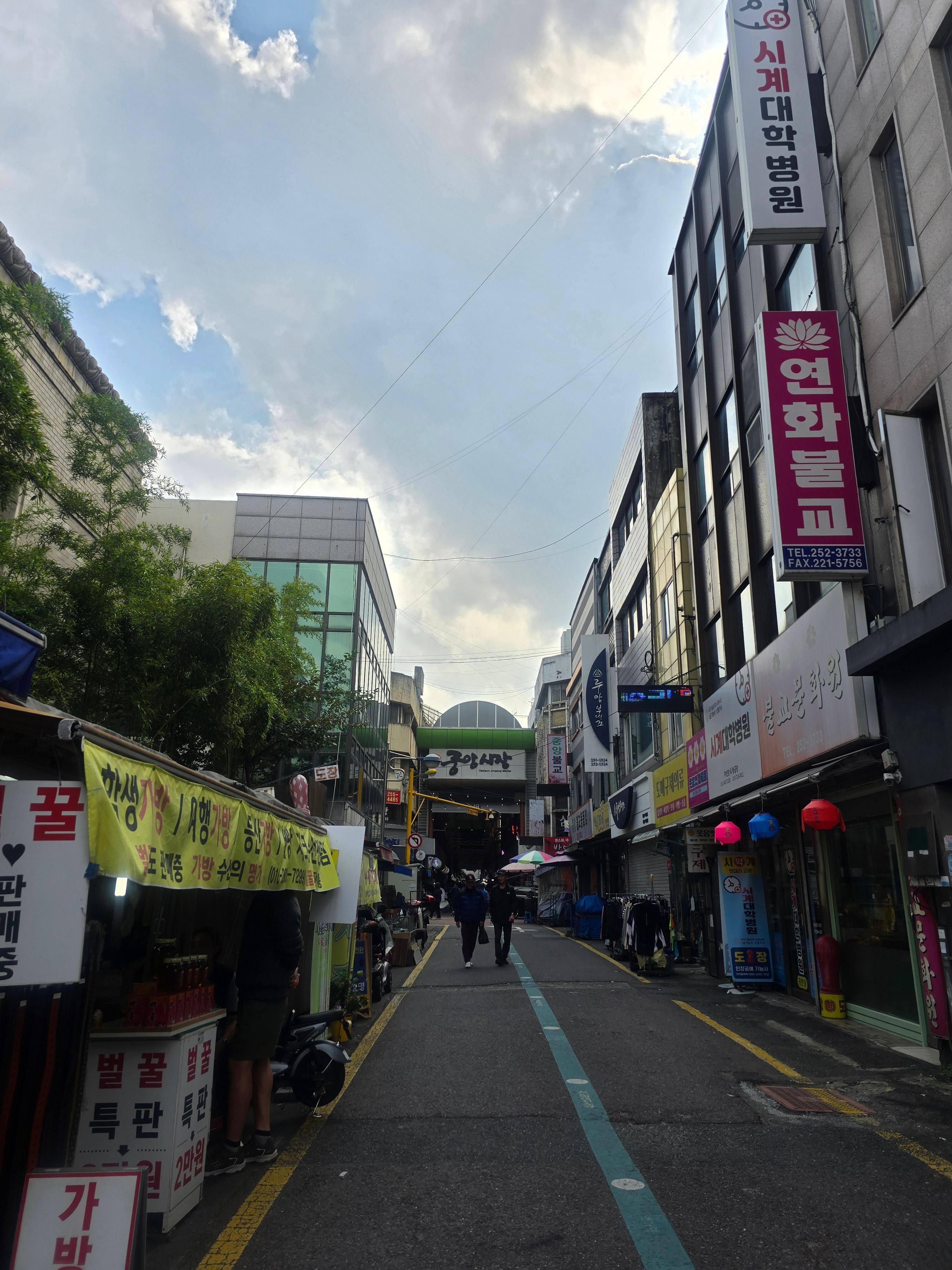 대전 중앙시장의 중앙대로 입니다 . 차량이 다닐 정도로 통로가 넓습니다