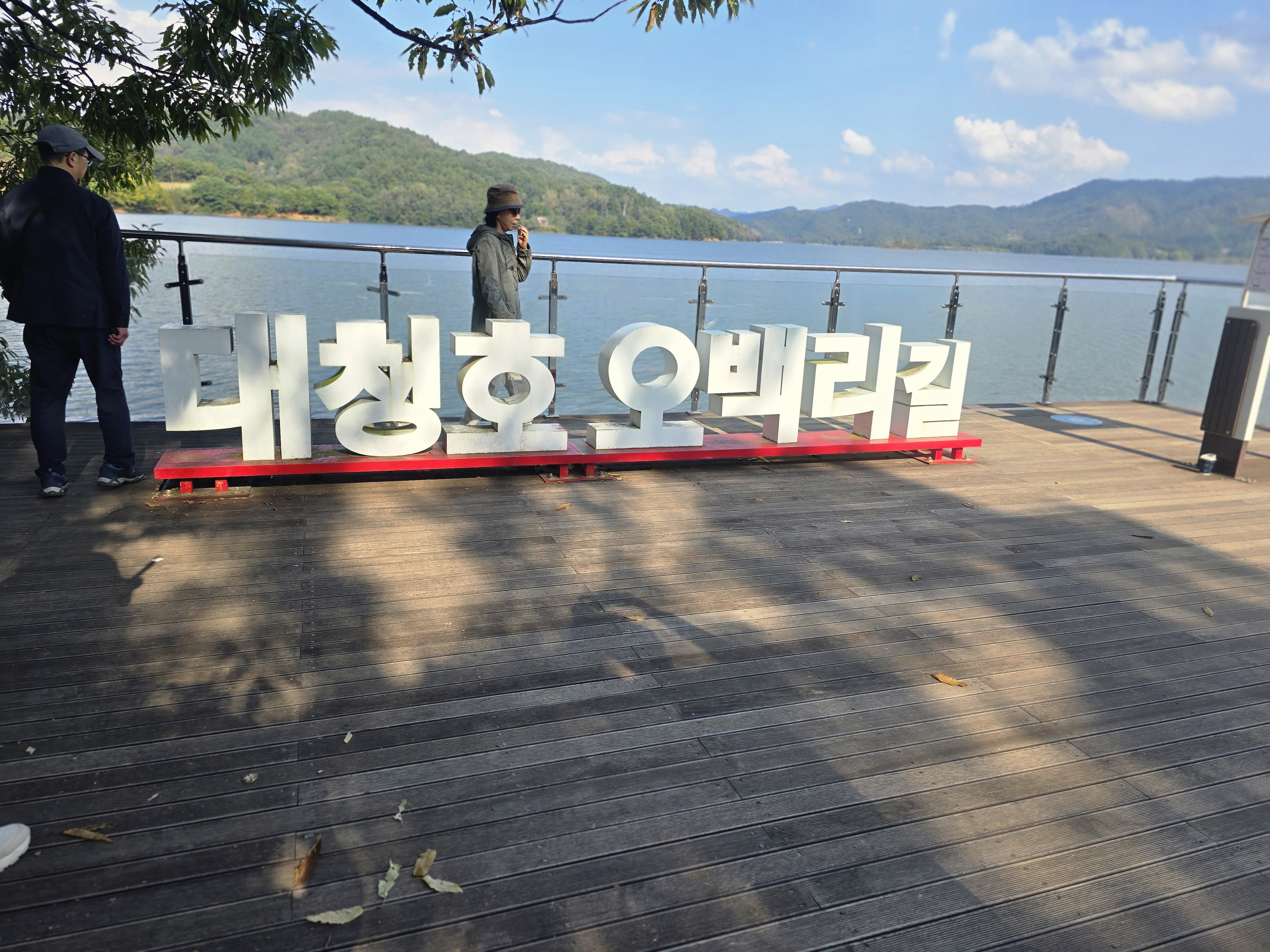 대전여행중 두번째 코스는 대청호 오백리길의 명상정원관광입니다. 주차장에서 수변데크길을 따라 왕복3키로 정도를 걸어서 명상정원을 다녀 왓습니다. 대청호수를 끼고 잘 정비된 데크길을 걸으면서 멋진 풍경에 기분이 좋아지는 코스였습니다.
