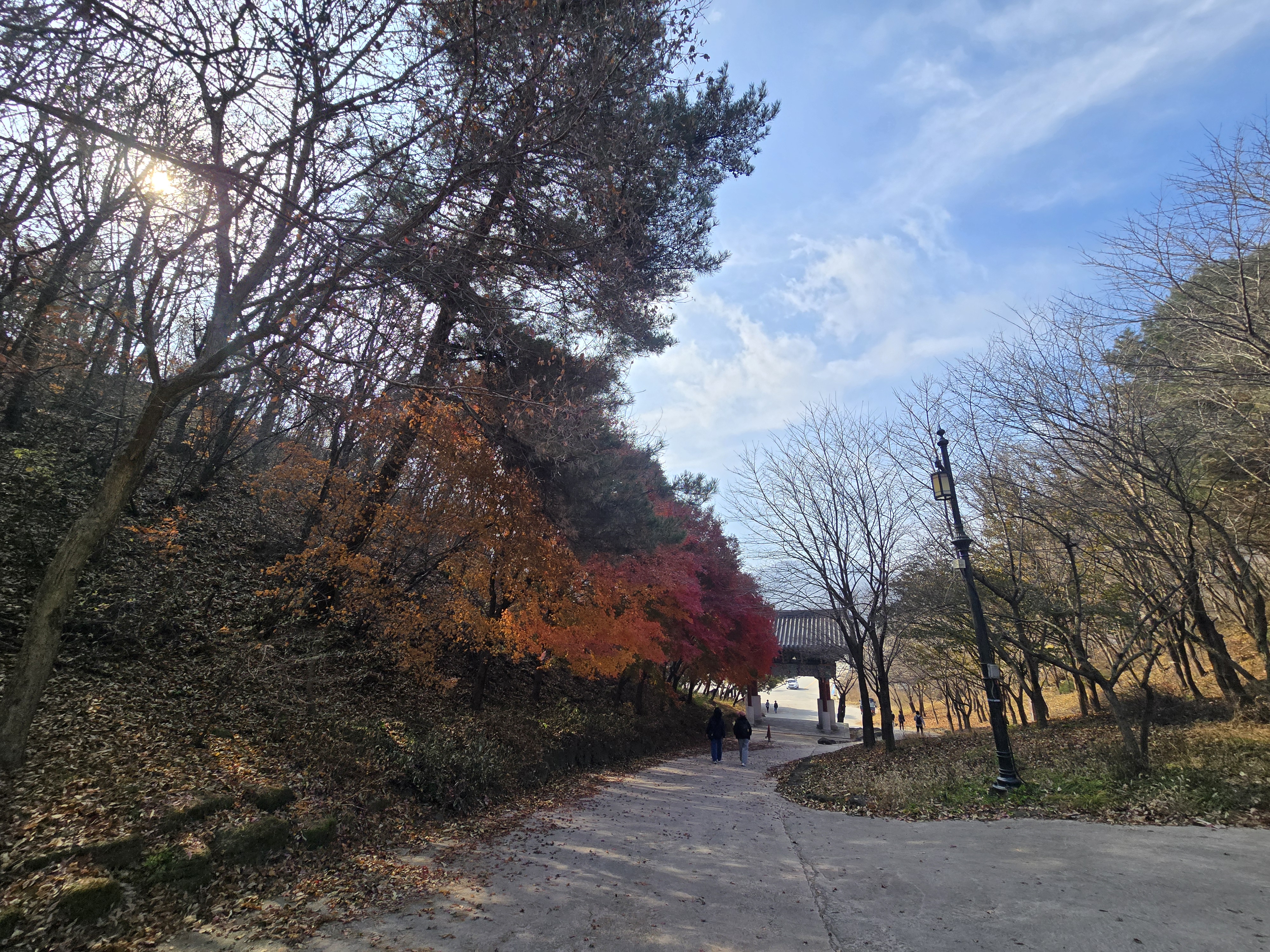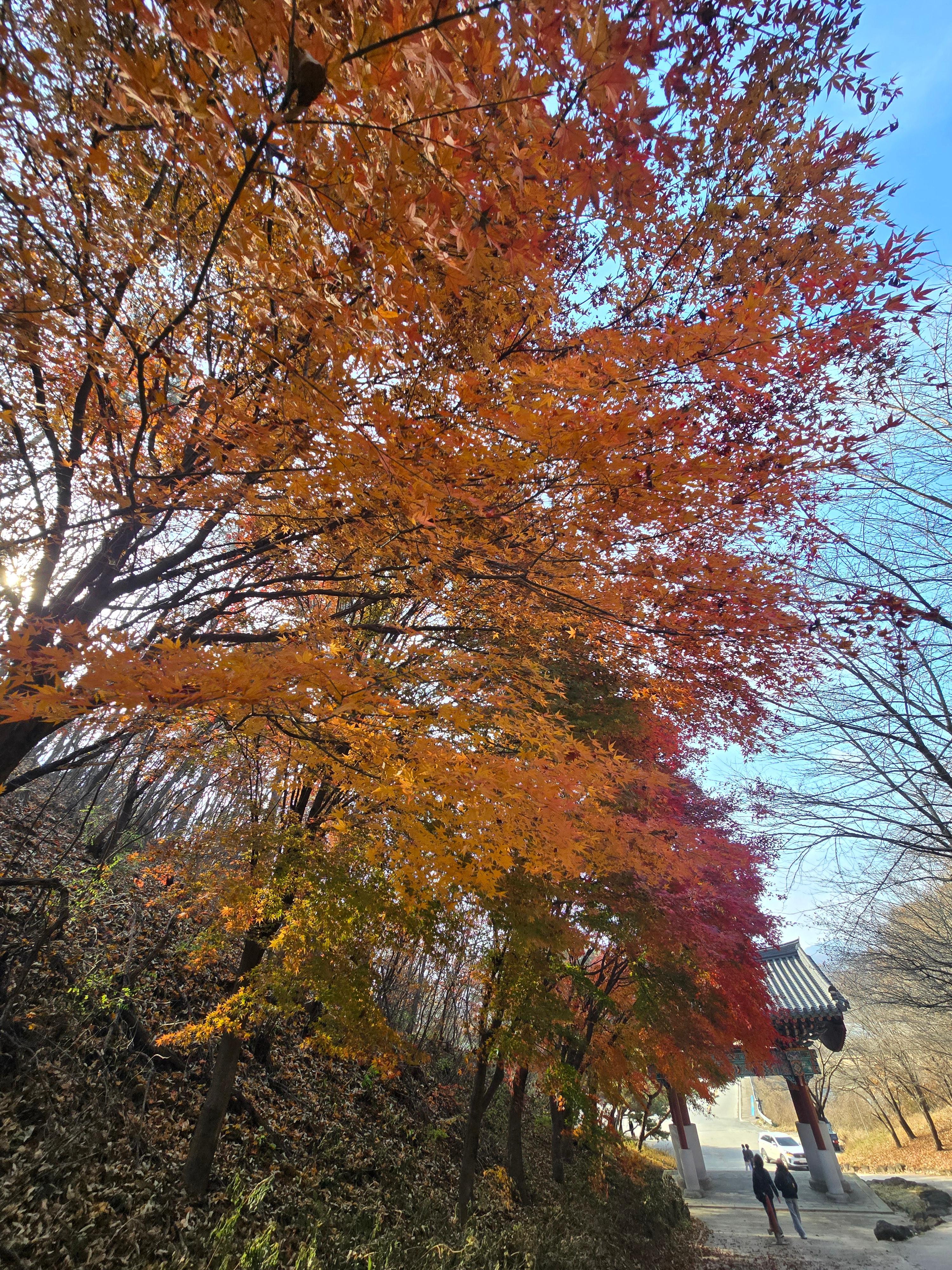 일주문쪽에 빨간 단풍이 아름답습니다 . 가단청이을이 깊어 갑니다