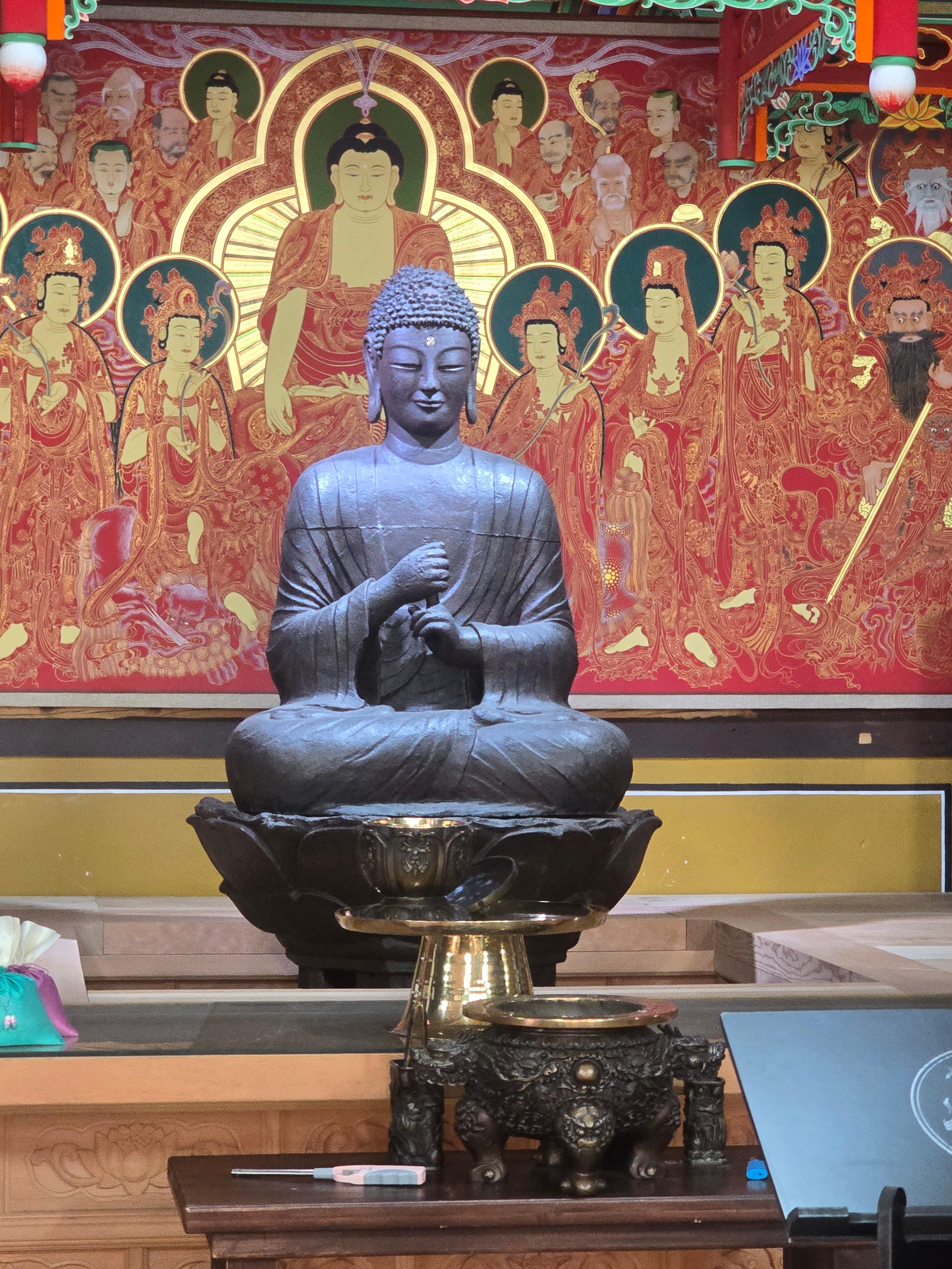대웅전 :대적광전이라고 쓴 현판이 걸려 있습니다 . 고요함과 밝은 지혜