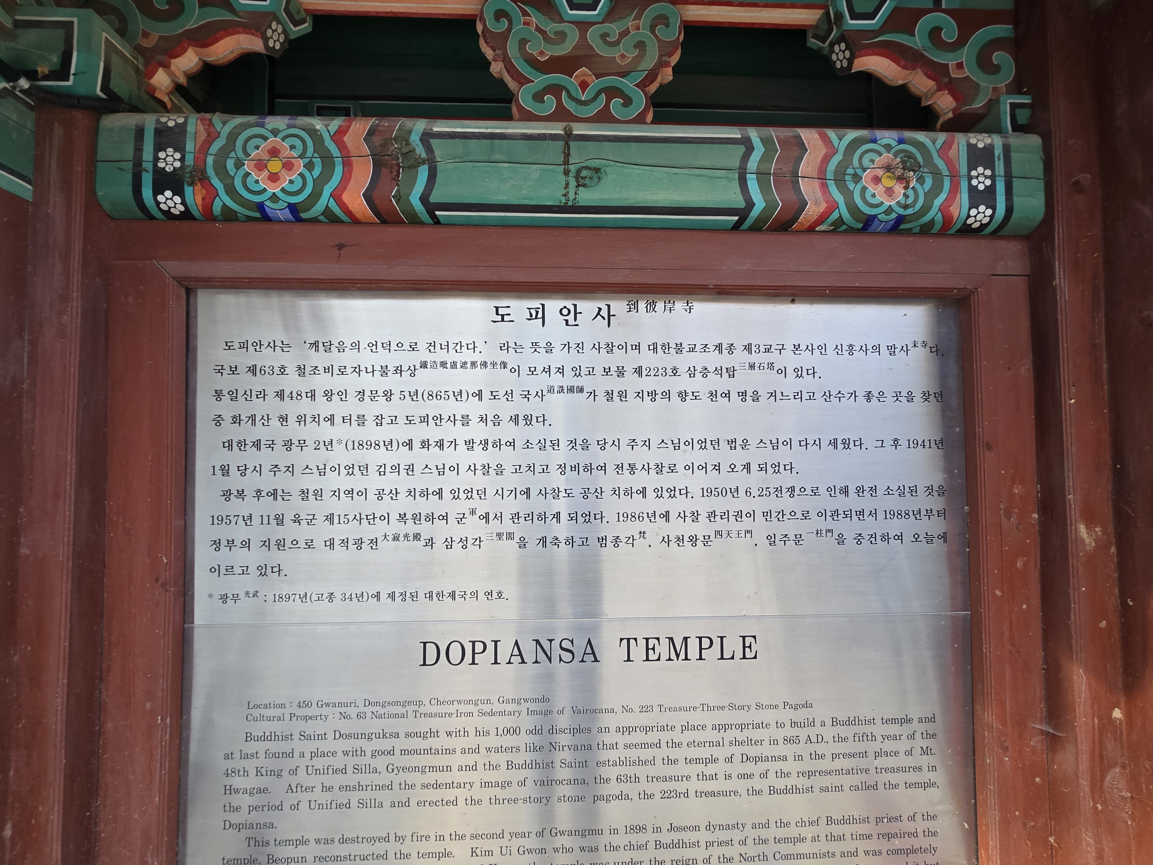 도피안사는 신라시대의 사찰이지만 625때 전소된 것을 군부대에서 재건한 절이라는 사연이 있다는 것도 처음알았습니다. 철원지역이 전쟁으로 사연이 많은 곳임을 실감하였습니다.
