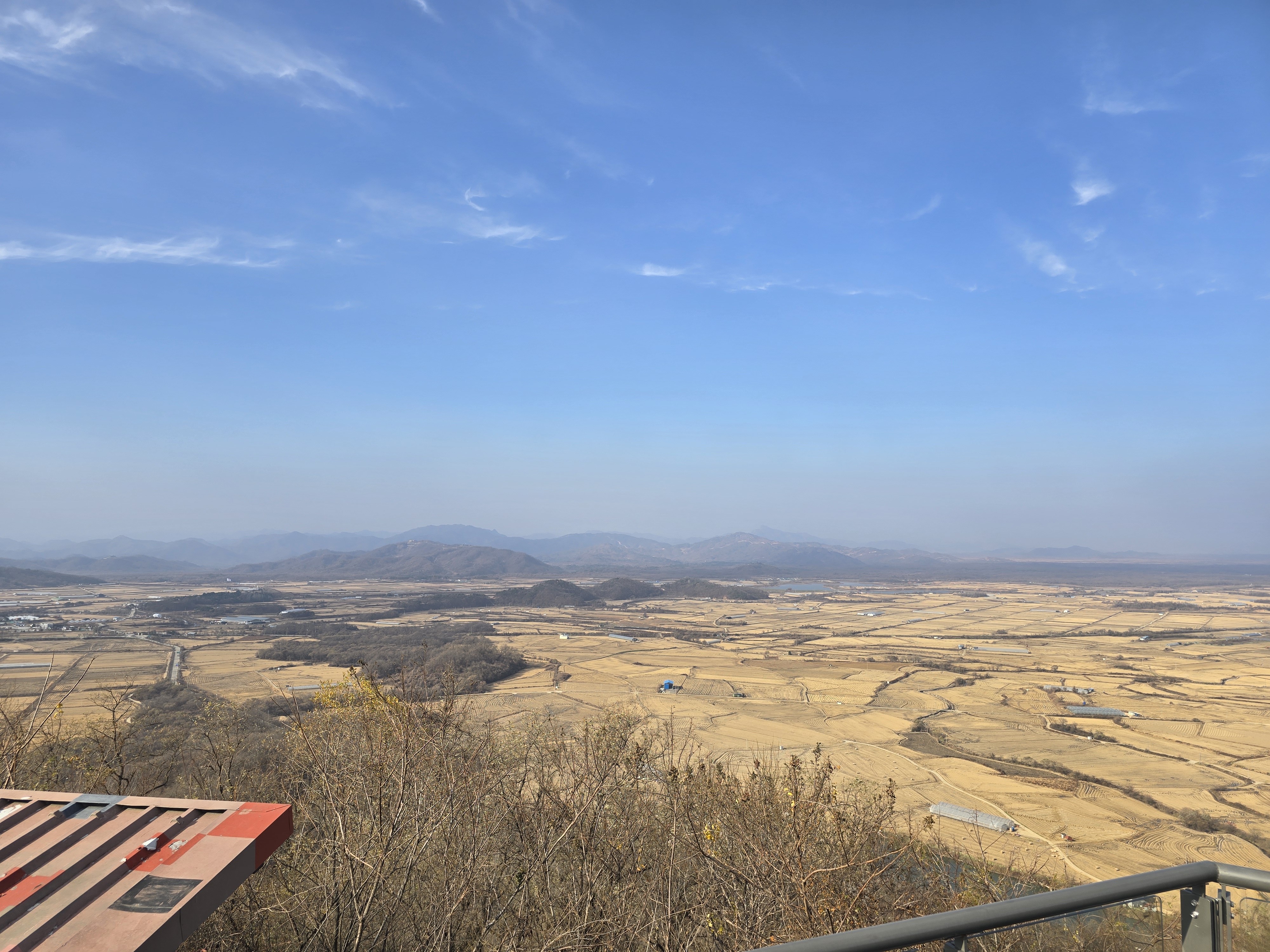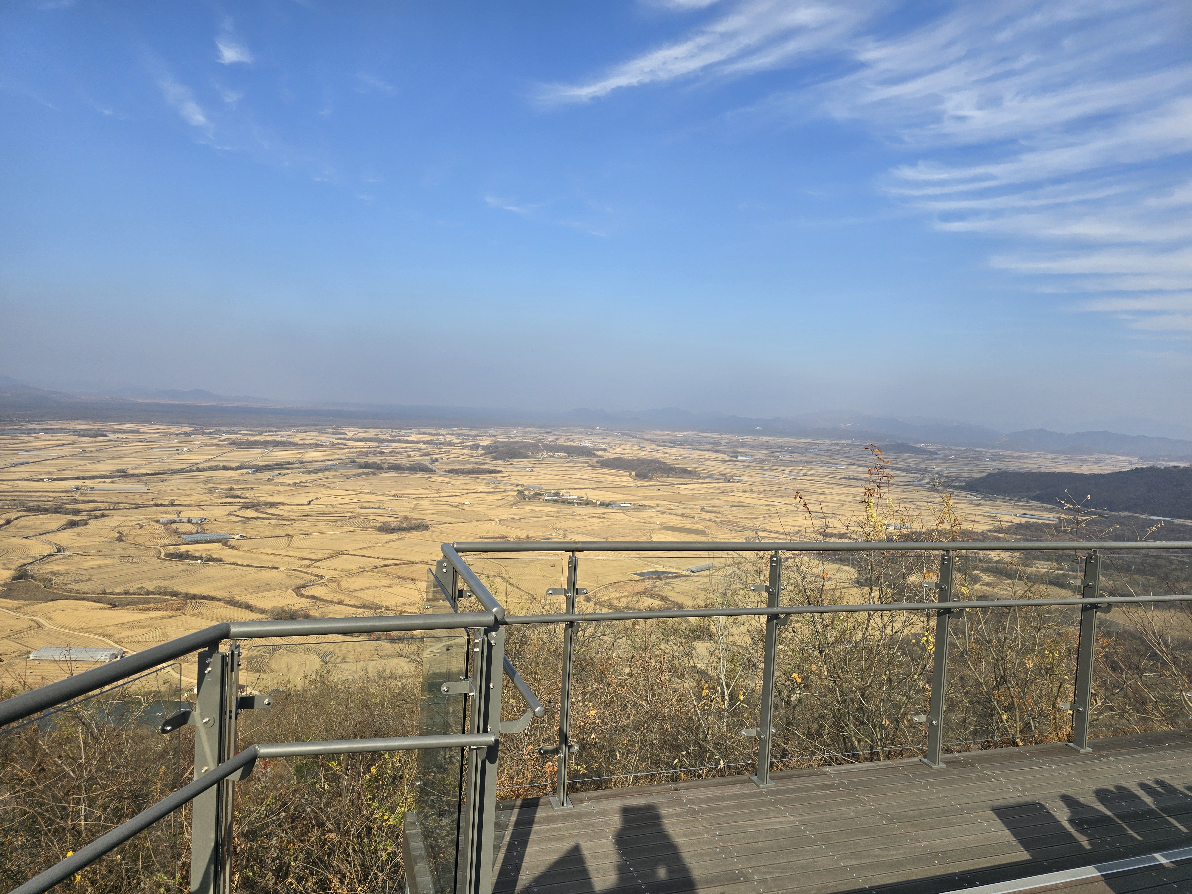 지평선 끝에는 미무장지대가 있으며 그 윗쪽은 북한입니다