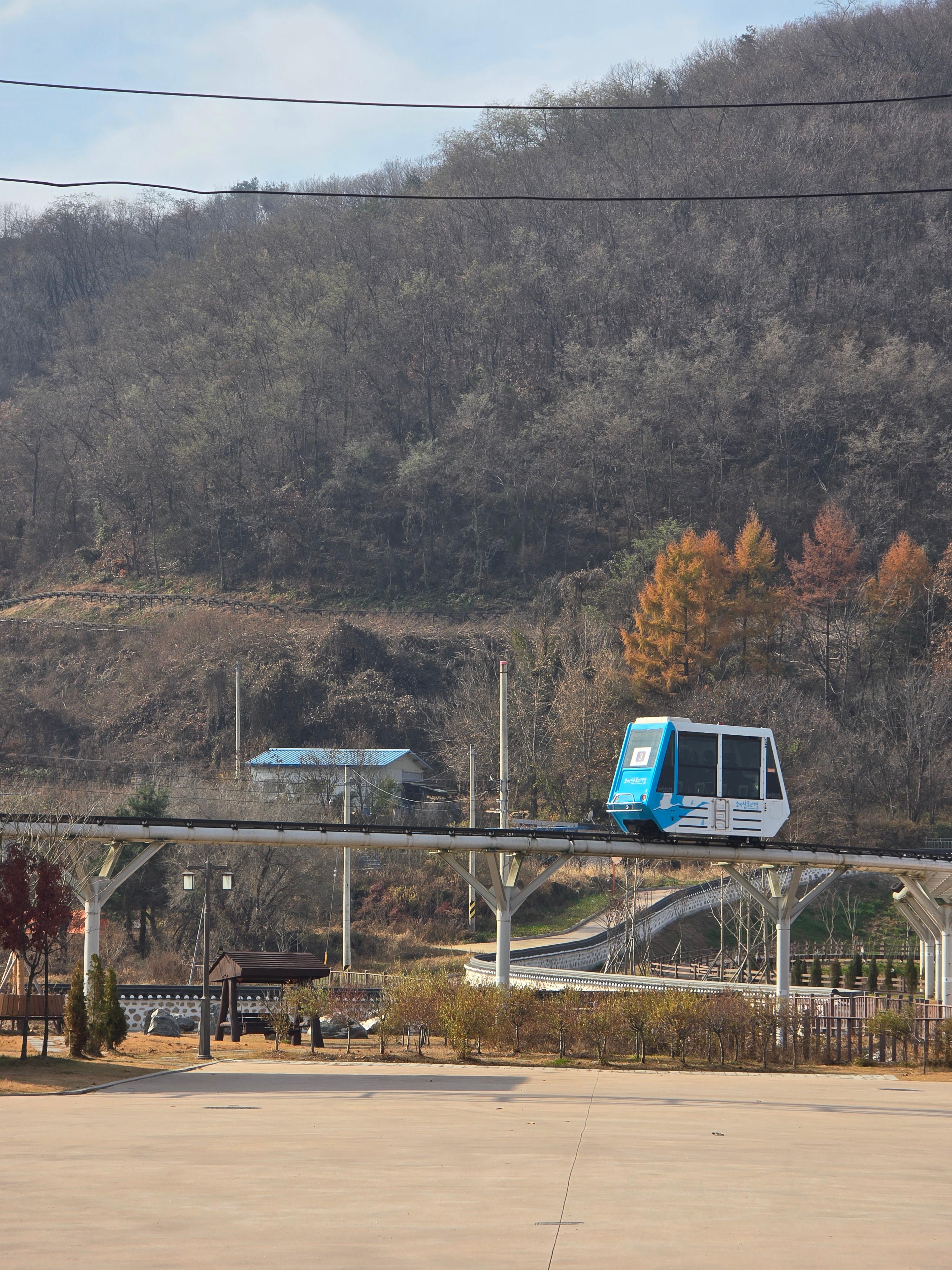 천천히 내려가는 모노레일에서 멋진 가을 하늘을 볼 수 있었습니다