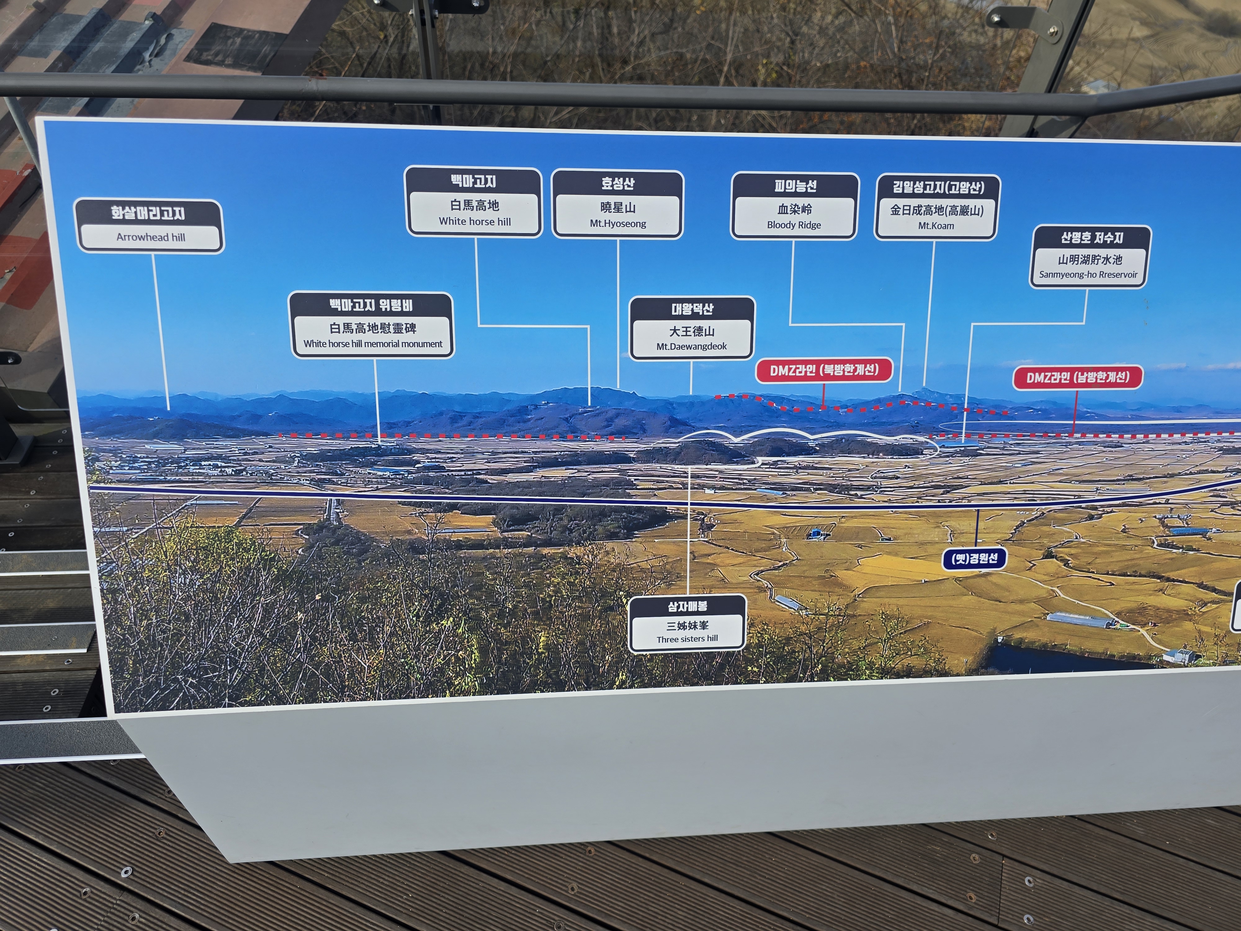 백마고지입니다 . 전쟁중에 서로 전략적 우위를 점령하고자 수많은 생명을 희생하며 뺏고 뺏기는 고지점령 전투가 있던 곳입니다.