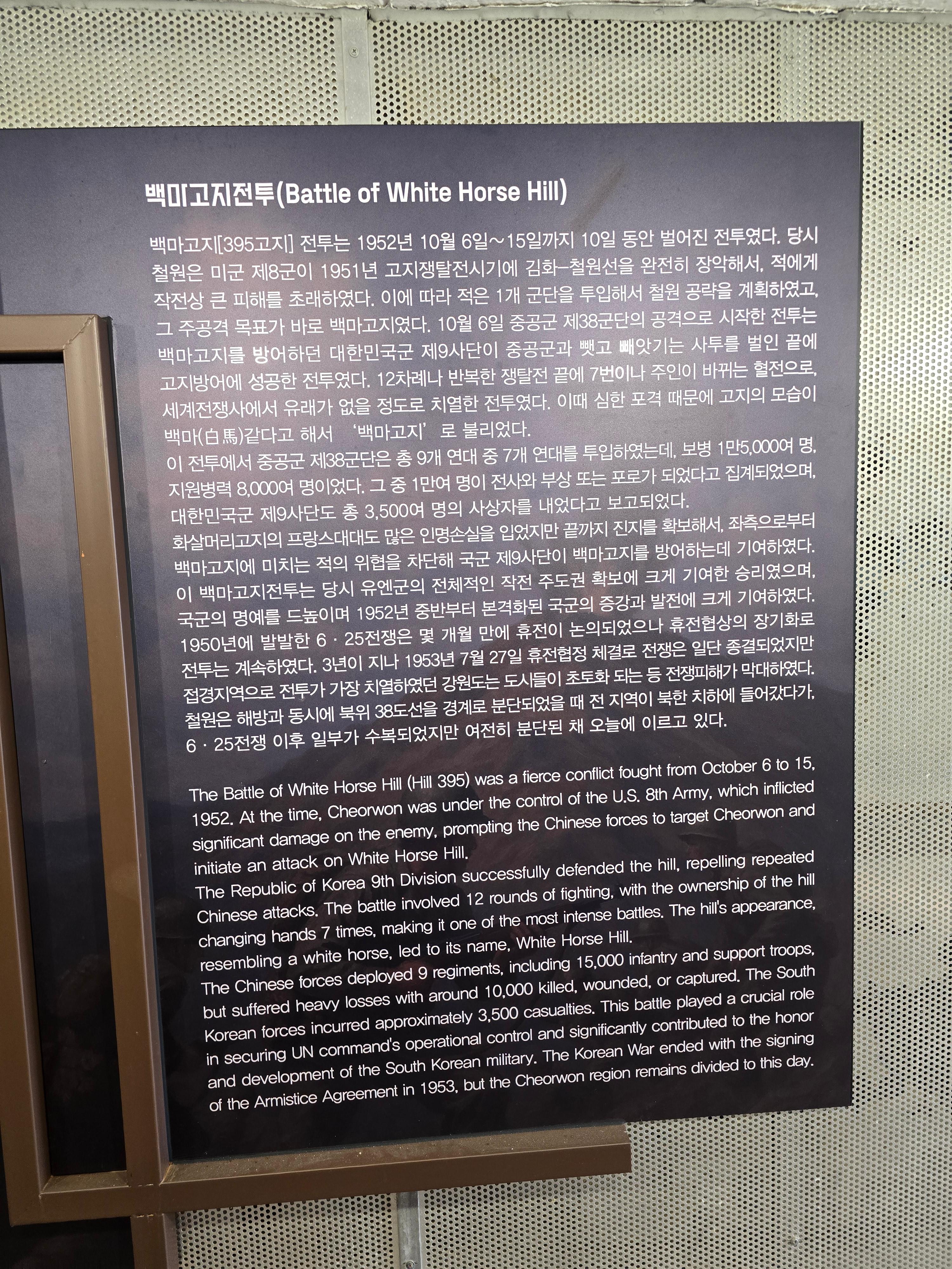 철원지역의 유명한 백마고지전투에 대한 안내가 잘 되어 있습니다.