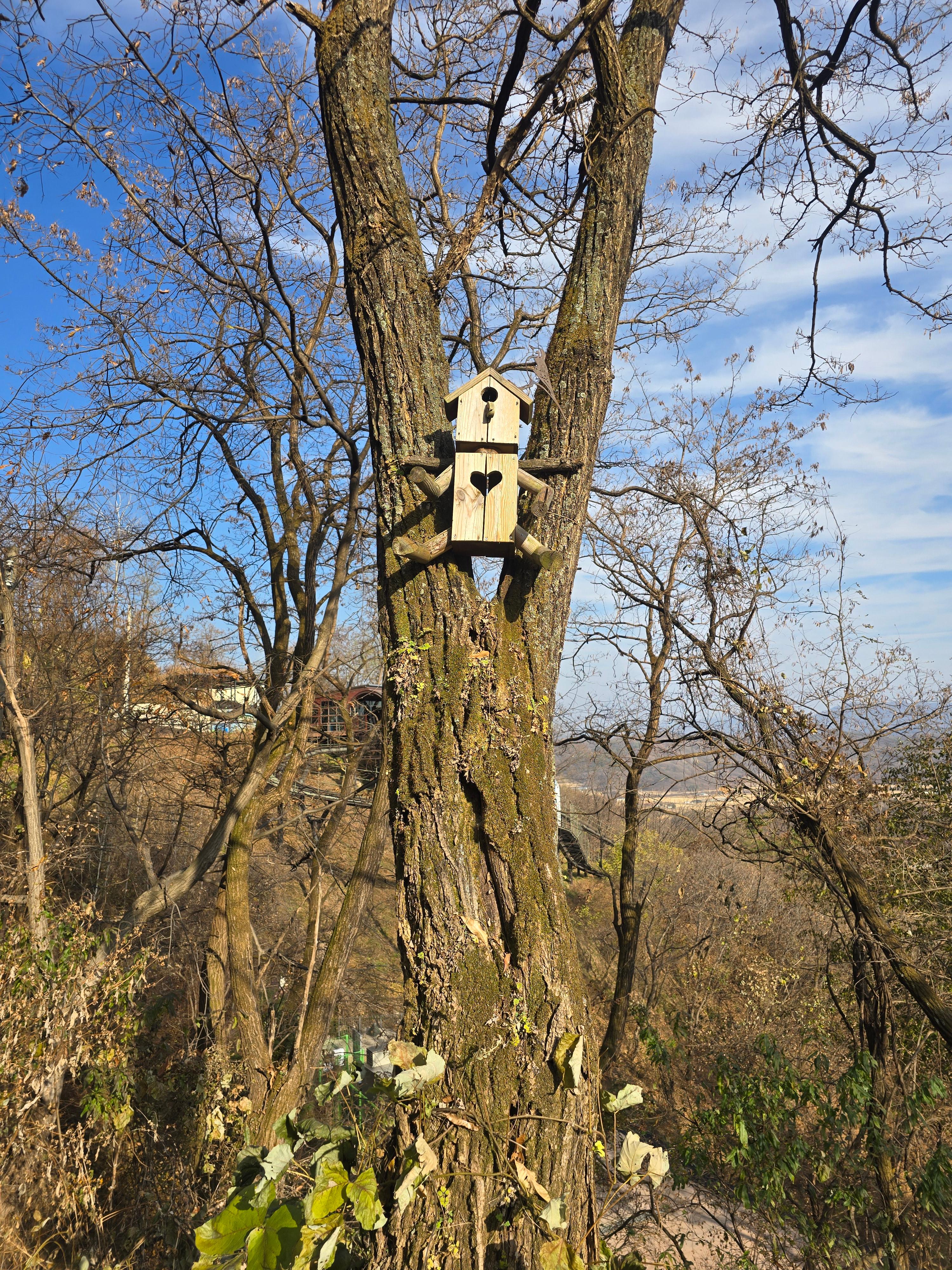 곳곳에 재미있는 새집을 만들어 나무에 걸어 놓았습니다.