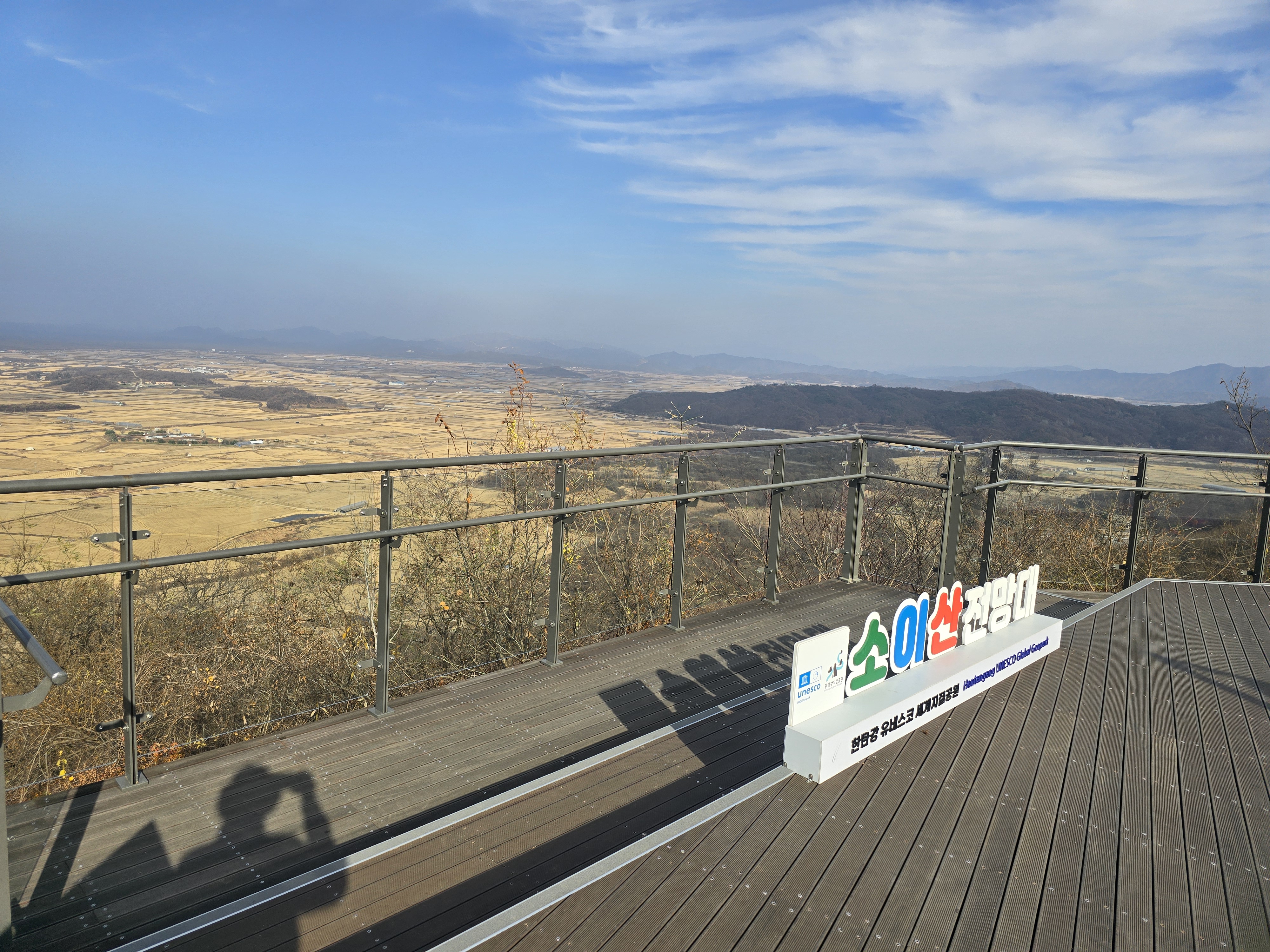 소이산 전망대... 한탄강 유네스코 세계지질공원으로 지정되어 잇습니다 . 전망대에 오르니 멀리 넓은 철원평야가 펼쳐 집니다 .