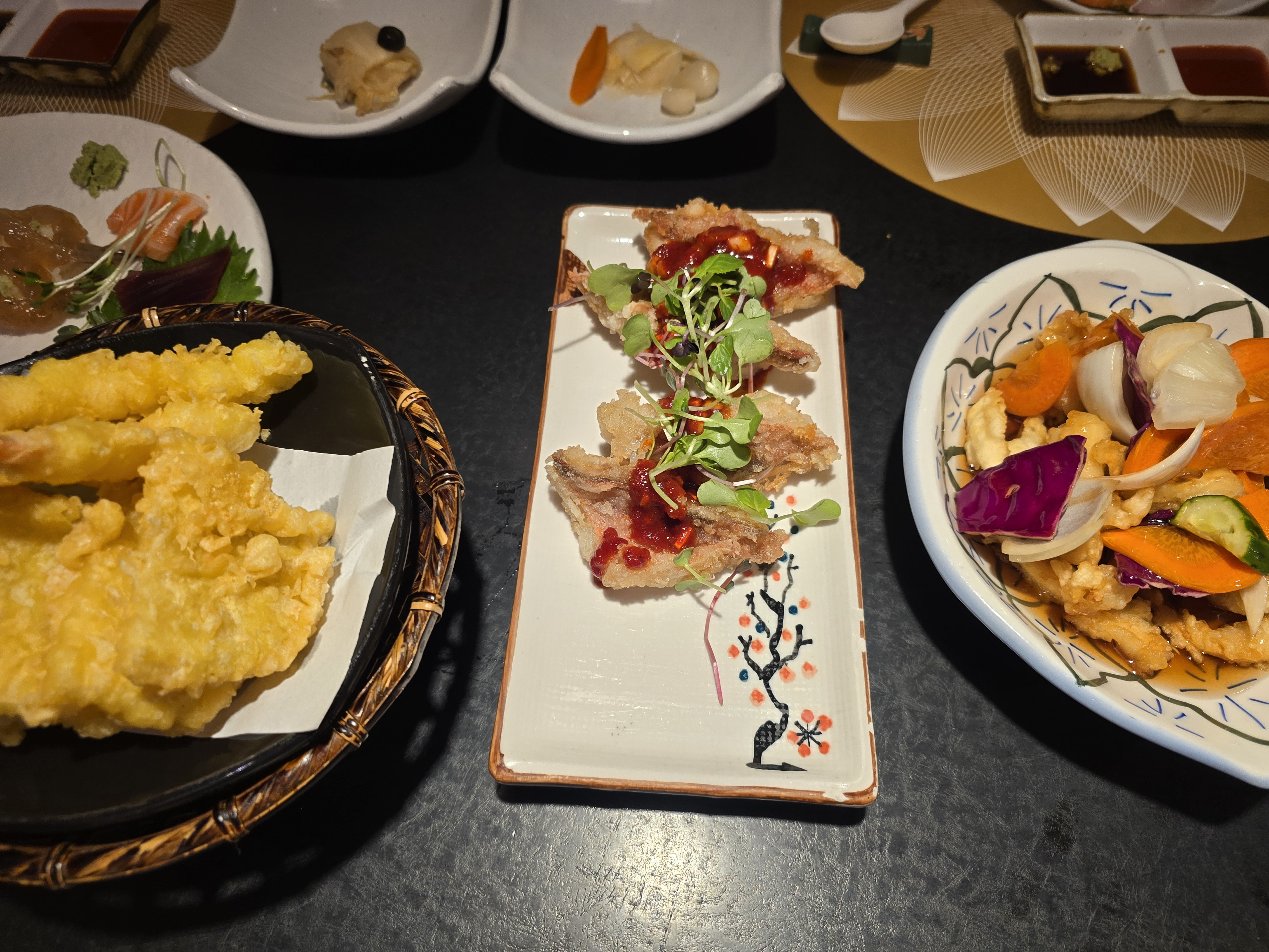 튀김모듬은 새우, 고구마로 바로 튀겨나와 맛있게 먹었습니다 .