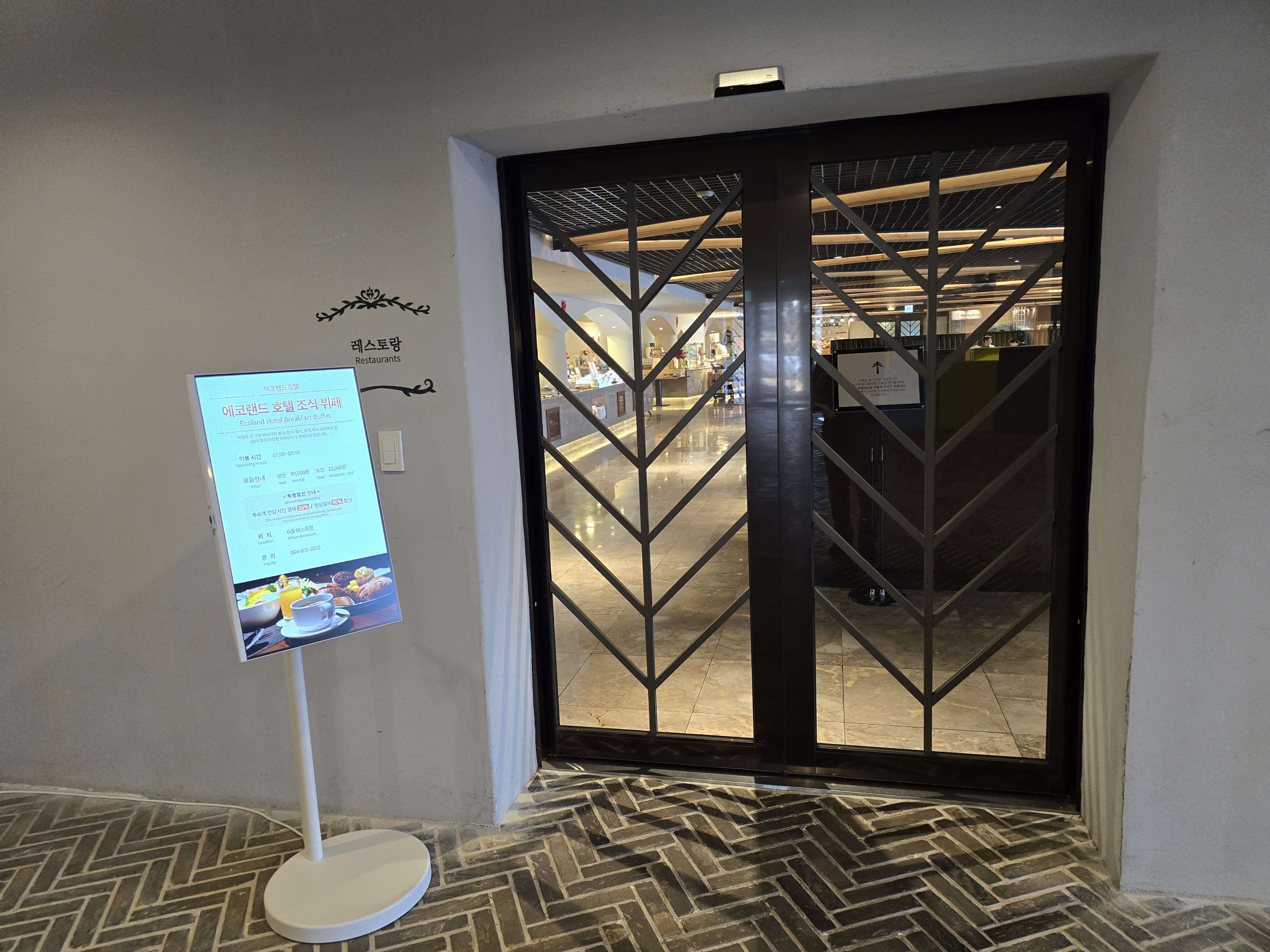 에코랜드호텔에 투숙하고 첫날 저녁은 지하 G층에 있는 레스토랑에 예약을 하였습니다 . 마침 투숙객 30%할인 이벤트를 하고 있어서 득템했네요. G층에는 간이 편의점, 편집샾과 베이커리, 키즈존을 지나면 레스토랑후문으로 들어가면 됩니다.