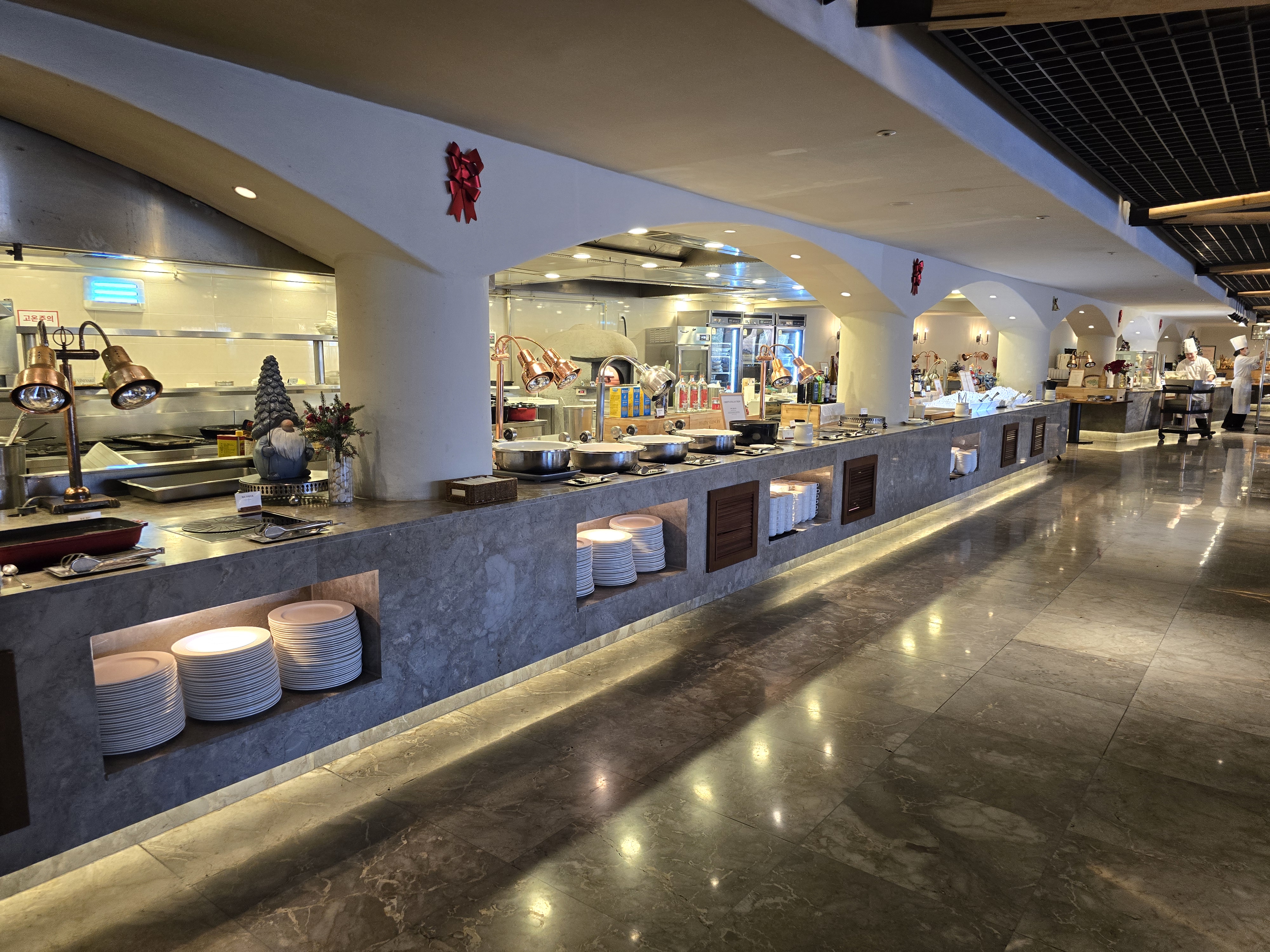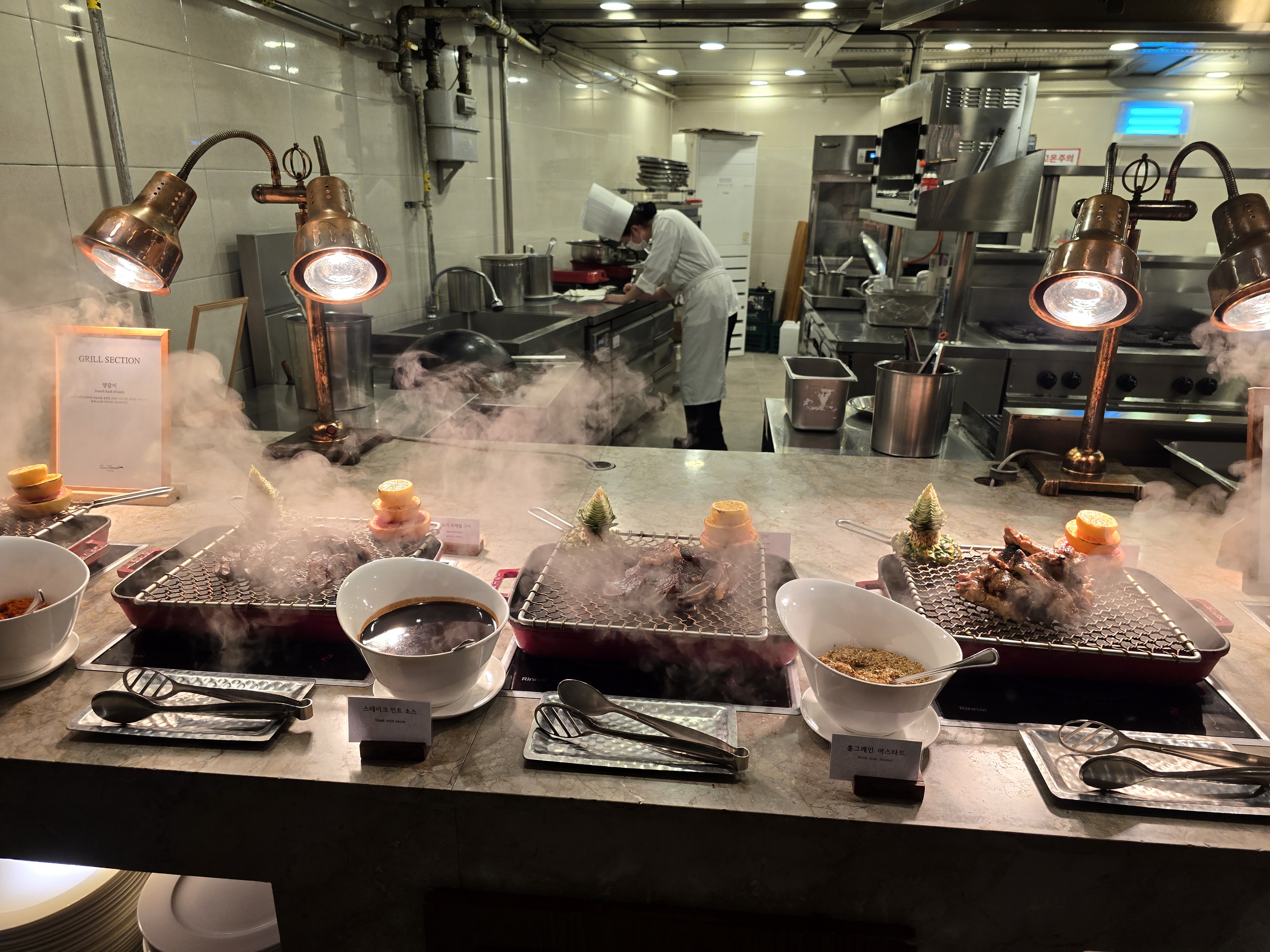 주방에서 바로바로 조리하여 테이블에 진열합니다