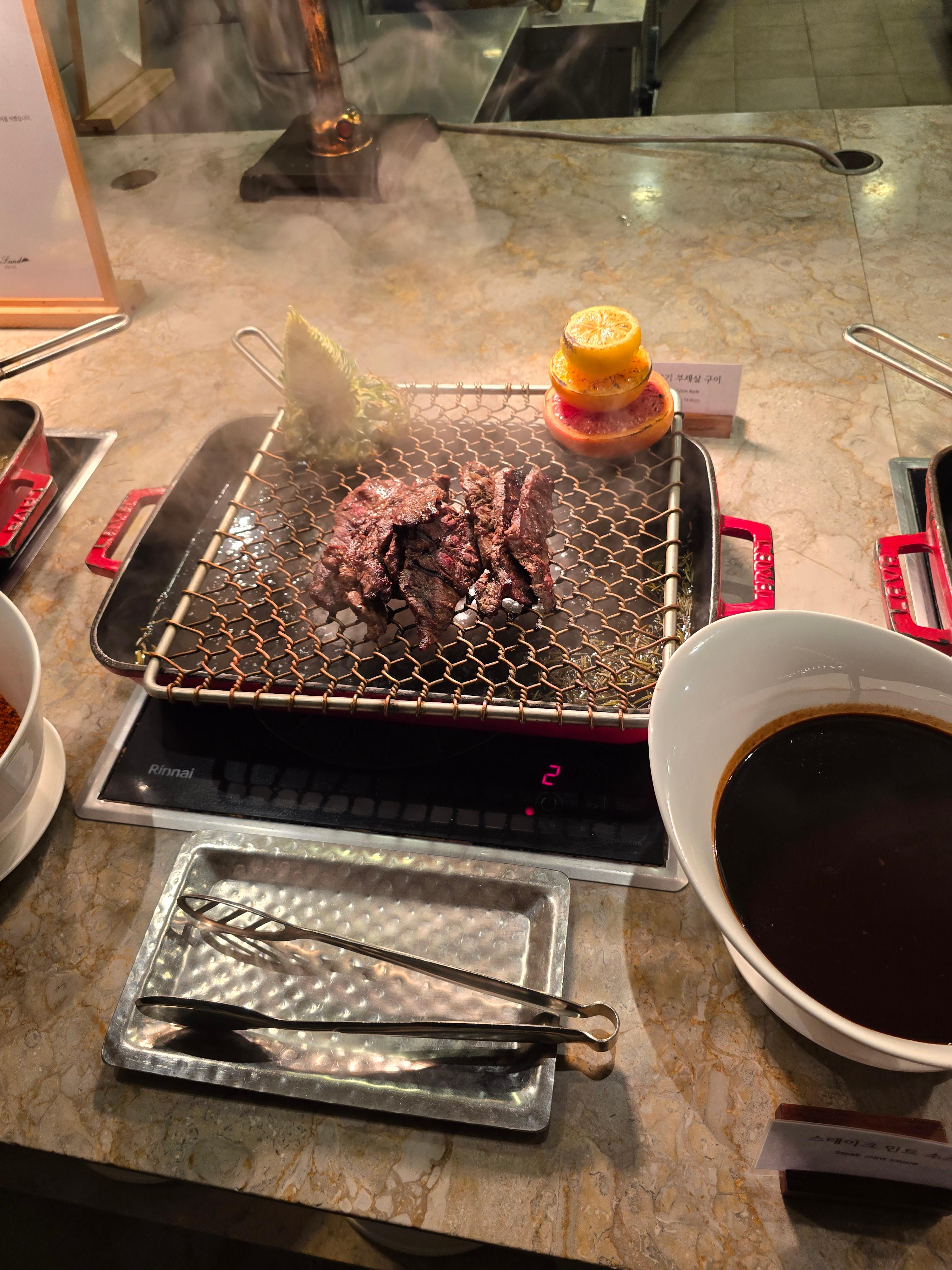 양갈비와 LA갈비, 부채살은 너무 바싹구워서 말라 있엇습니다