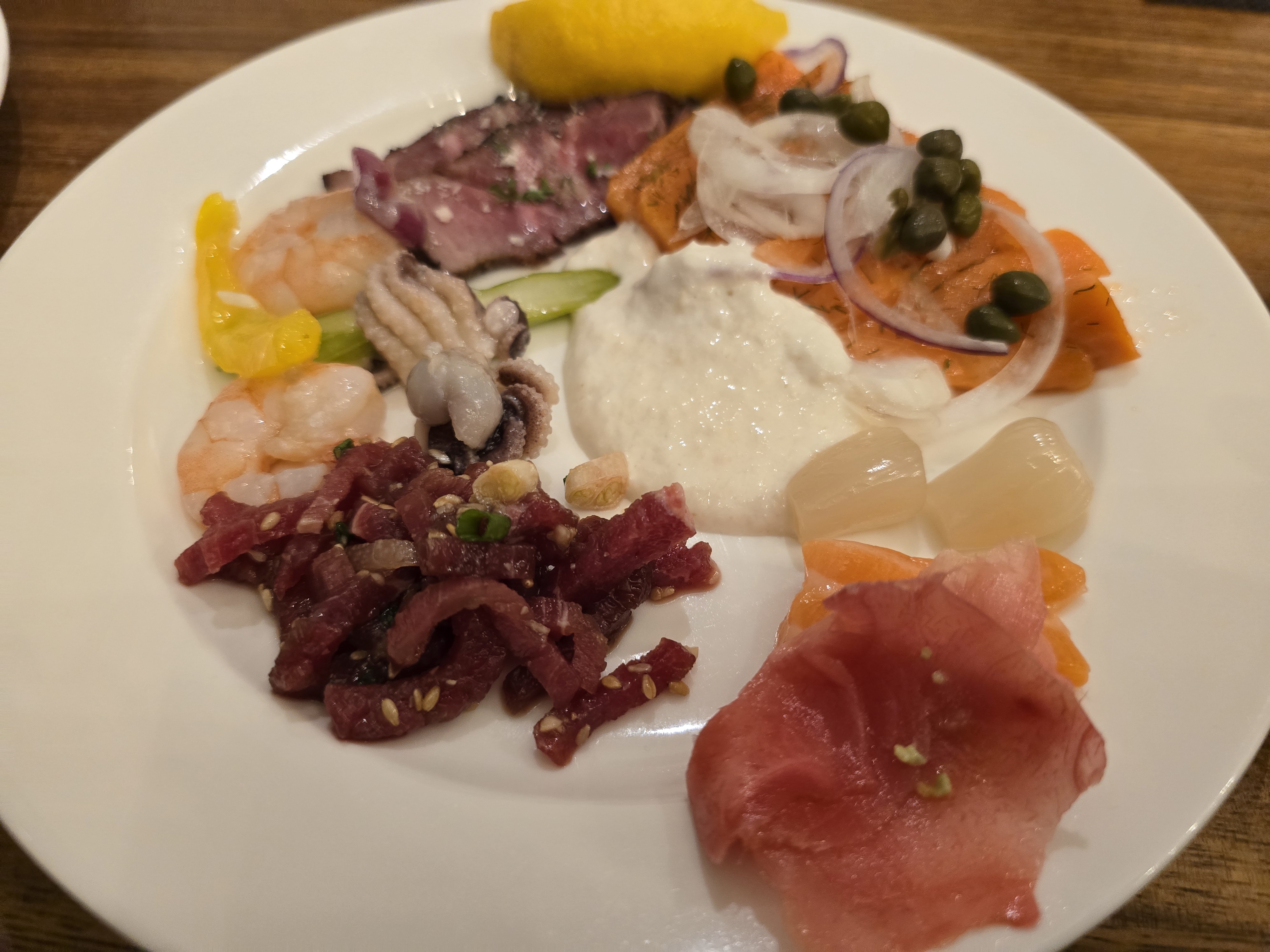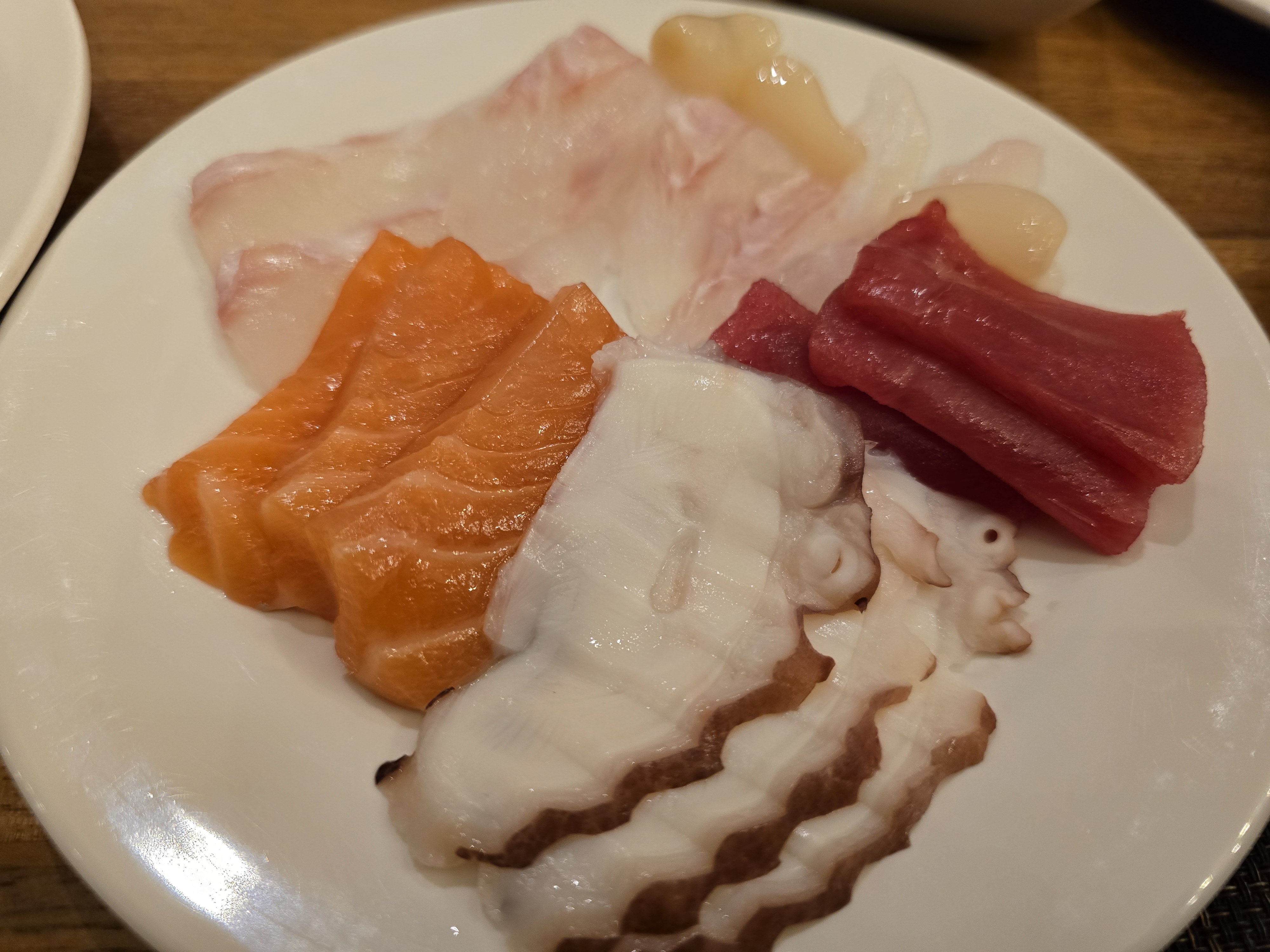 회종류는 노르웨이 생연어와 제주 광어회, 참치회와 돌문어 숙회가 다지만 충분합니다