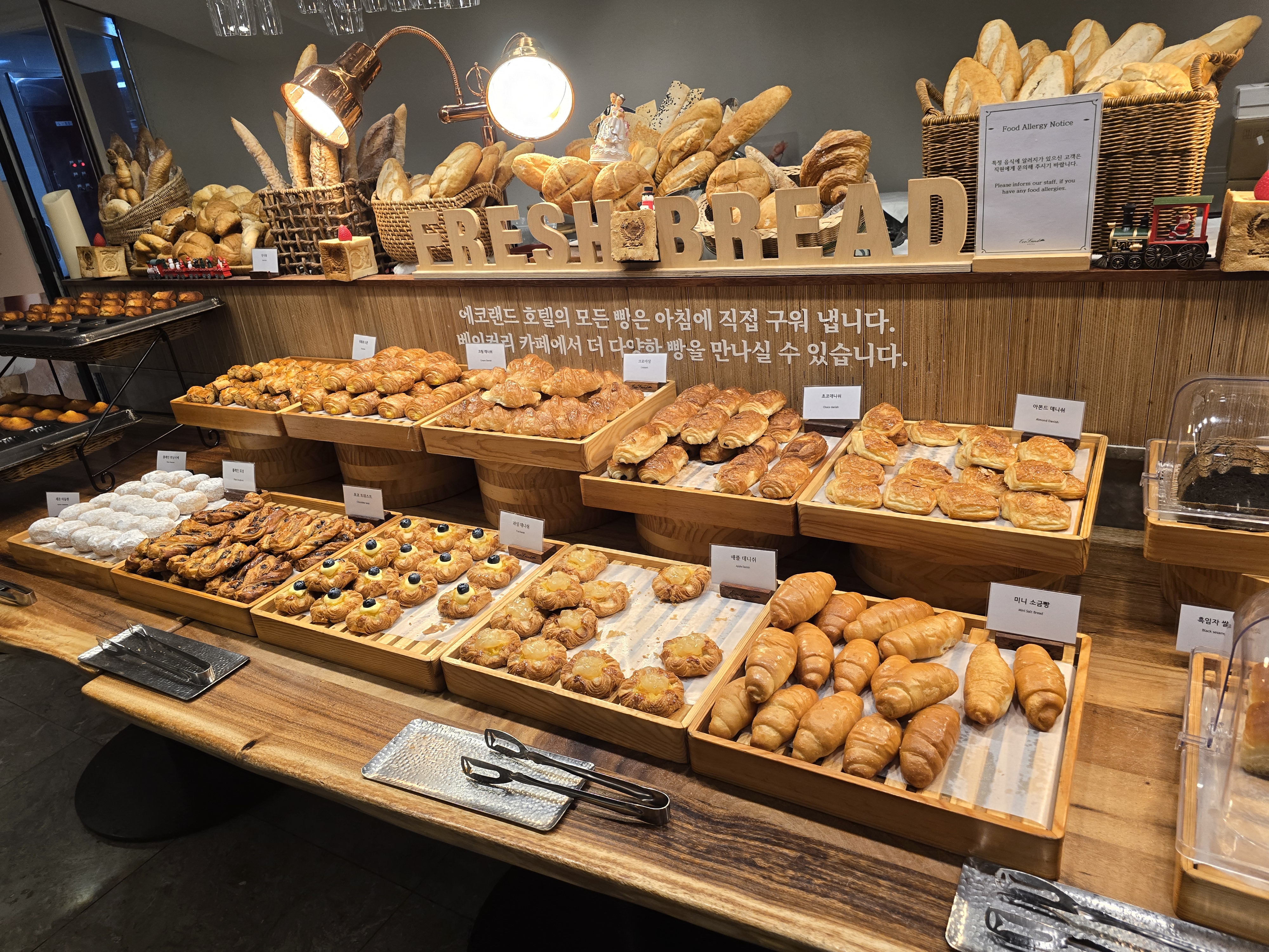 베이커리코너는 다음날을 기약하며 구경만 했습니다. 매일 아침 직접 구워 낸다니 맛이 기대가 됩니다