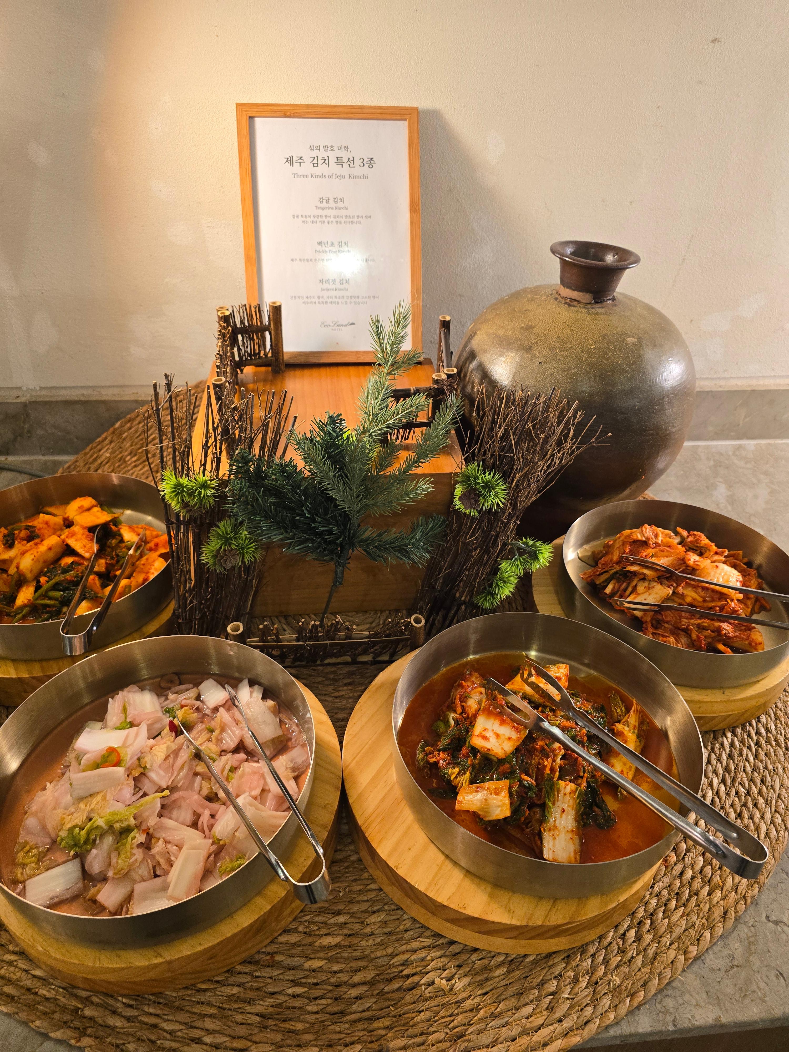 제주김치 특선3종코너도 특이 했습니다. 감귤김치, 백년초 김치, 자리젓김치입니다. 감귤, 백년초, 자리돔을 사용한 김치입니다.