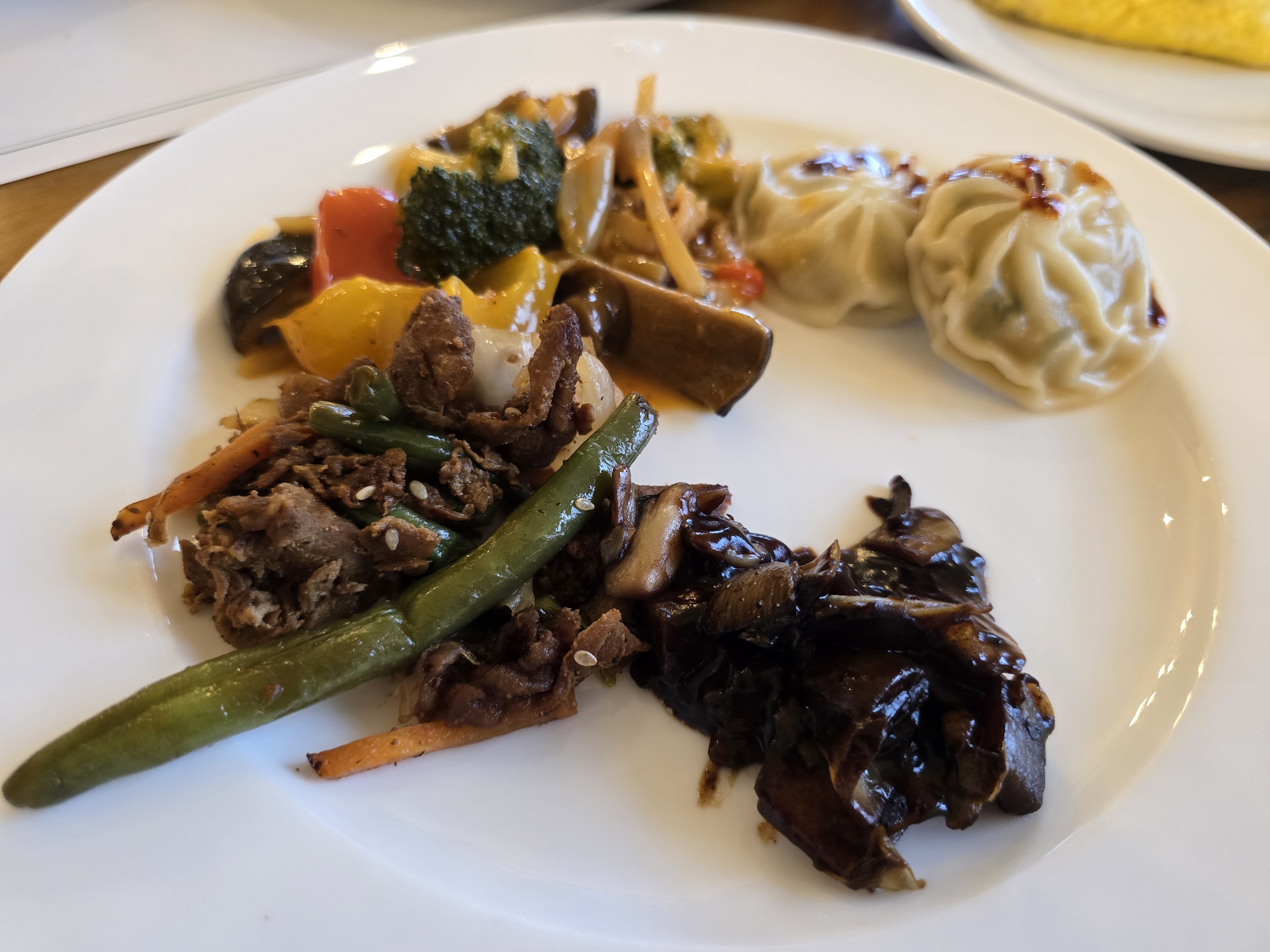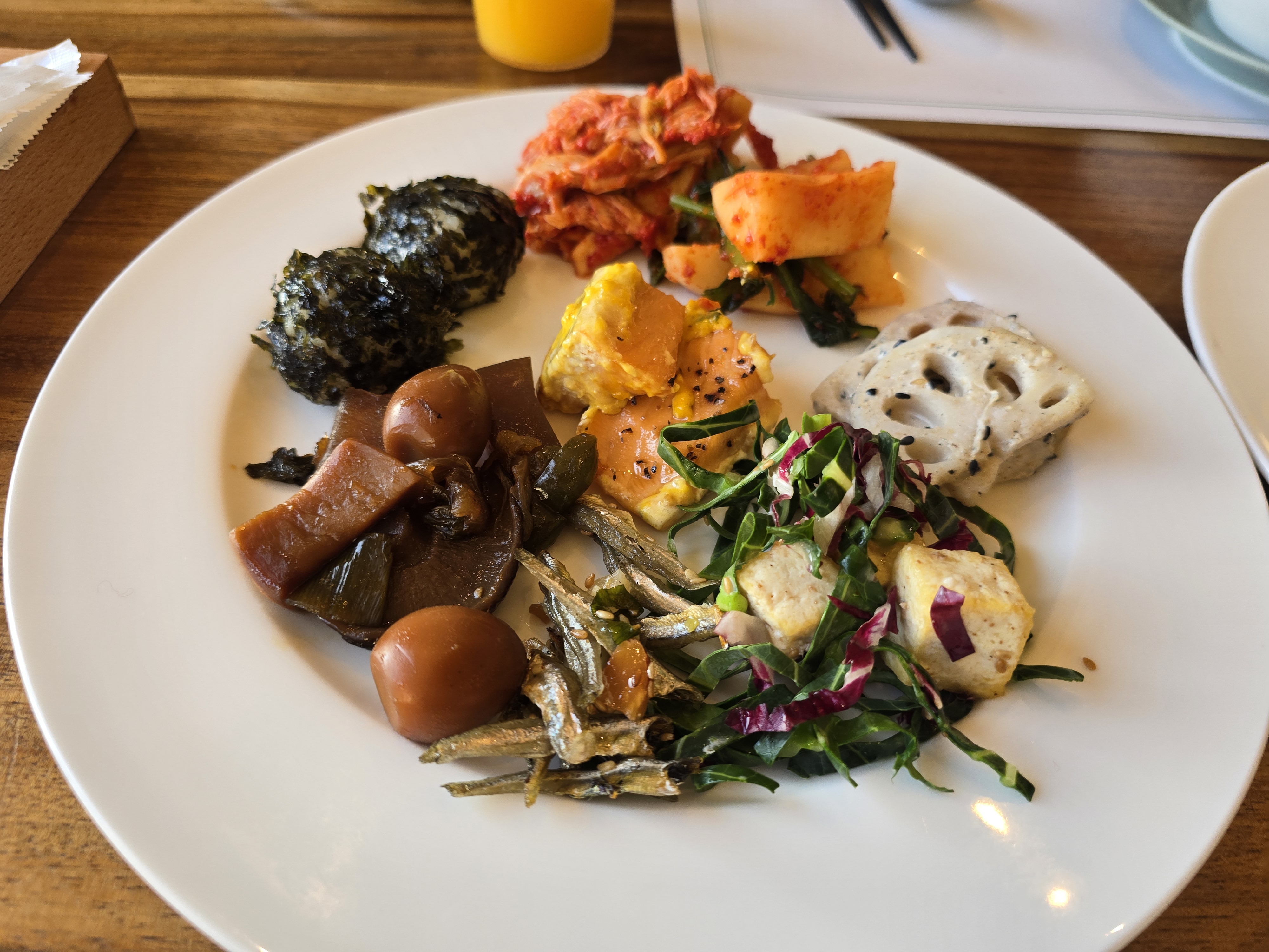 조식부페는 양식, 중식, 한식 등 골고루 요리가 준비되어 있엇습니다.
