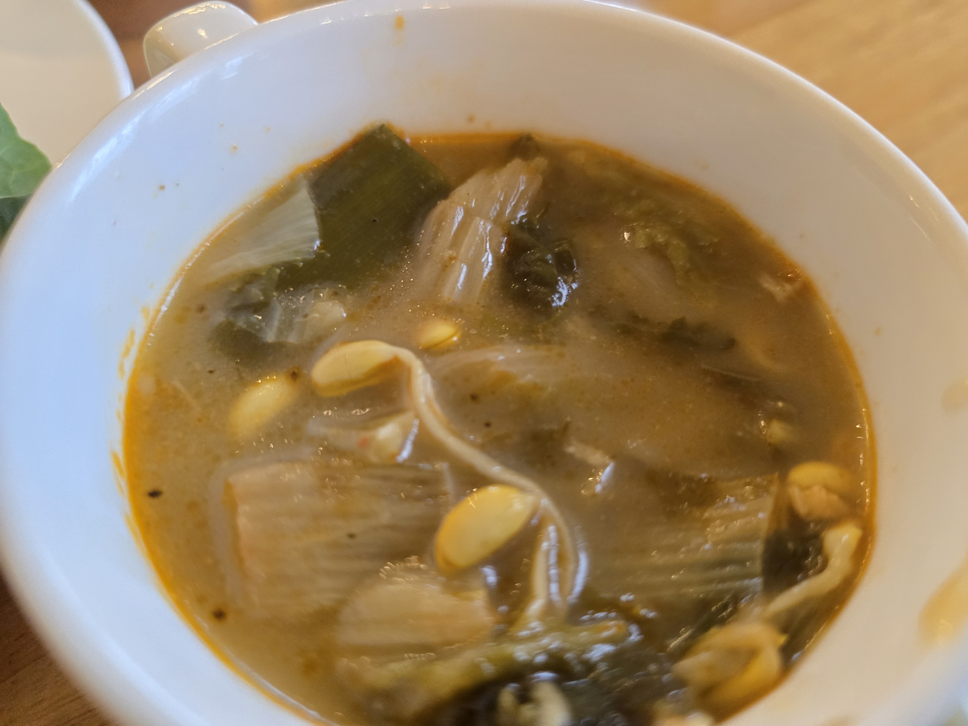 취향에 따라 소면과 고기, 야채를 그릇에 담아 직원에게 건네주면 따뜻한 물에 국수와 야채를 데우고 진한 육수를 담아 내 줍니다.