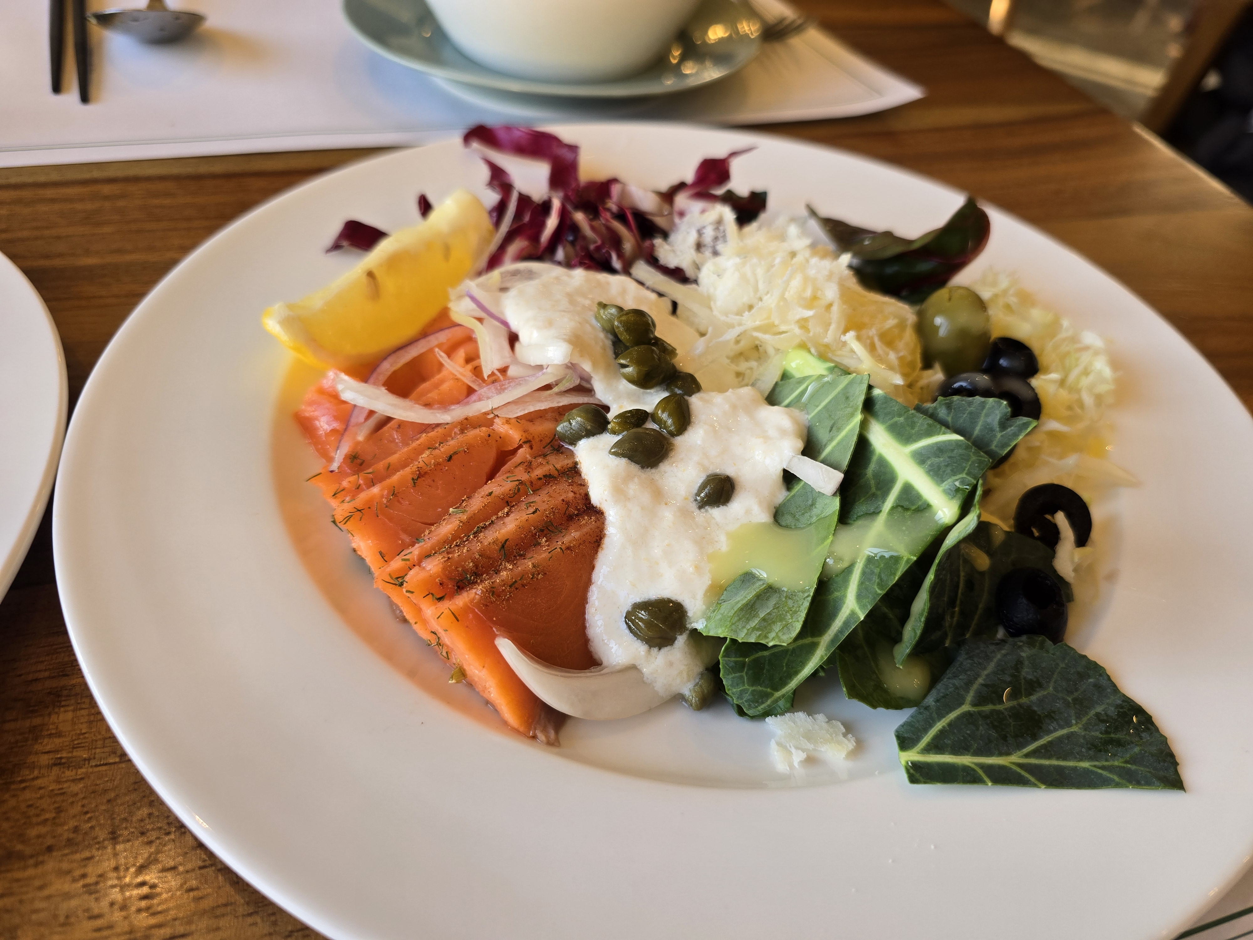 샤프란소스 연어찜도 조금 가져왔습니다 .