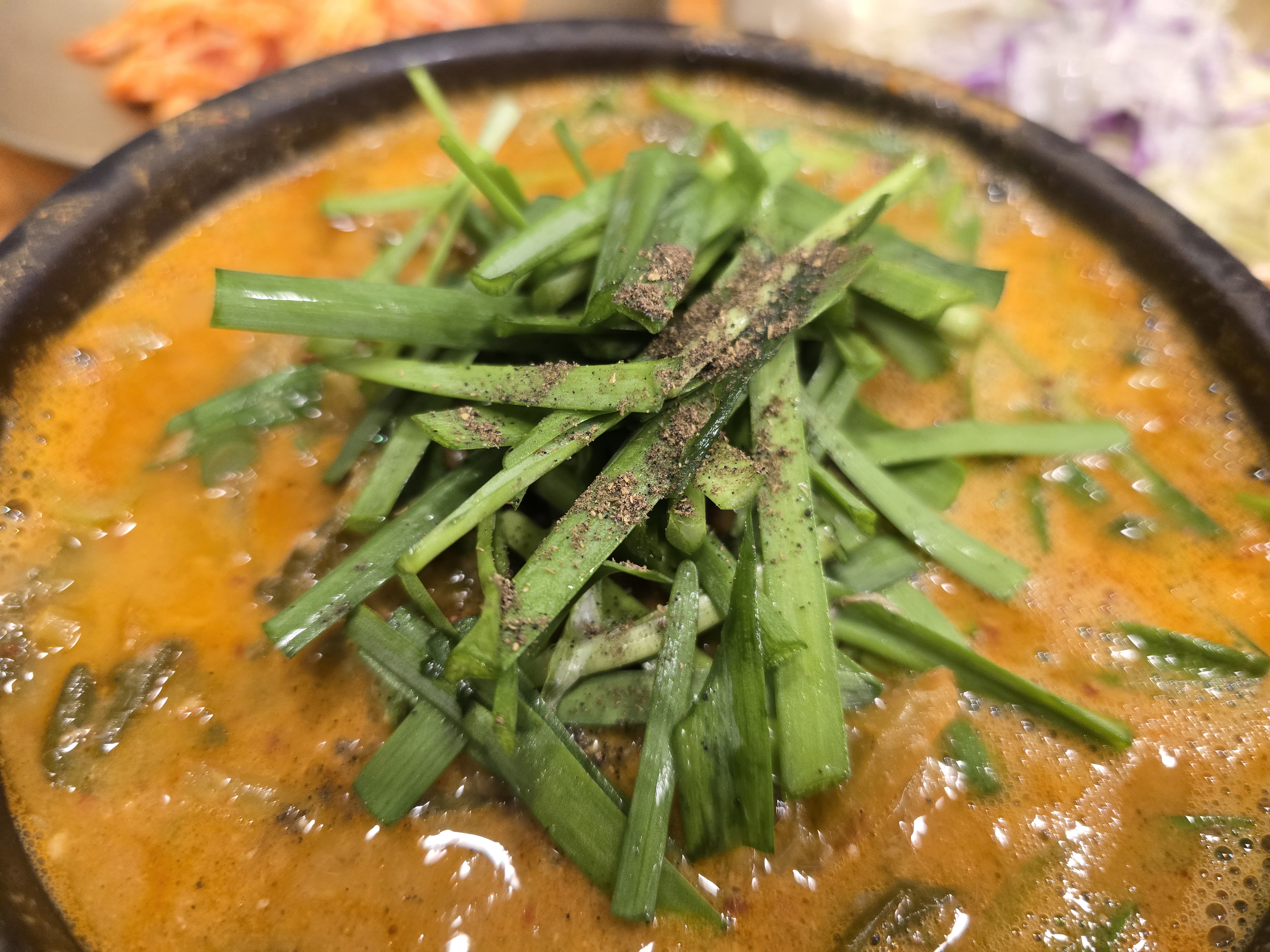 먹다가 중간에 들깻가루도 한숟가락넣어 고소함의 변주를 주어도 좋습니다