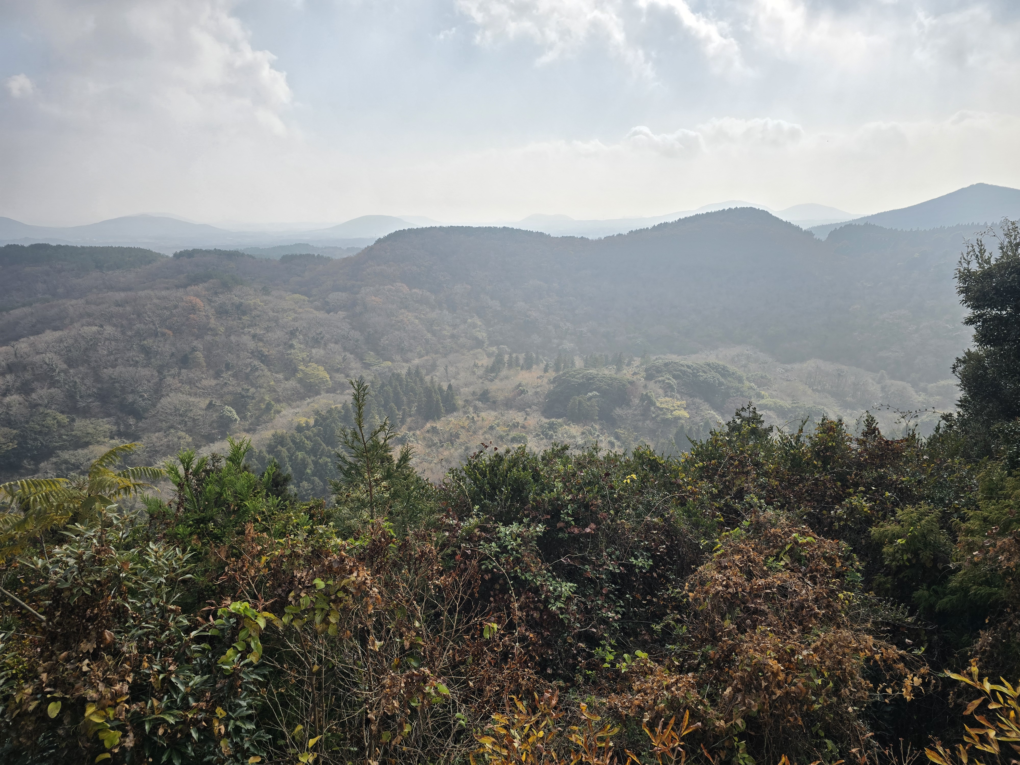 정상에서 보이는 전망입니다. 비가오고 구름이 많이 끼어 아쉽게도 한라산은 보이지 않습니다