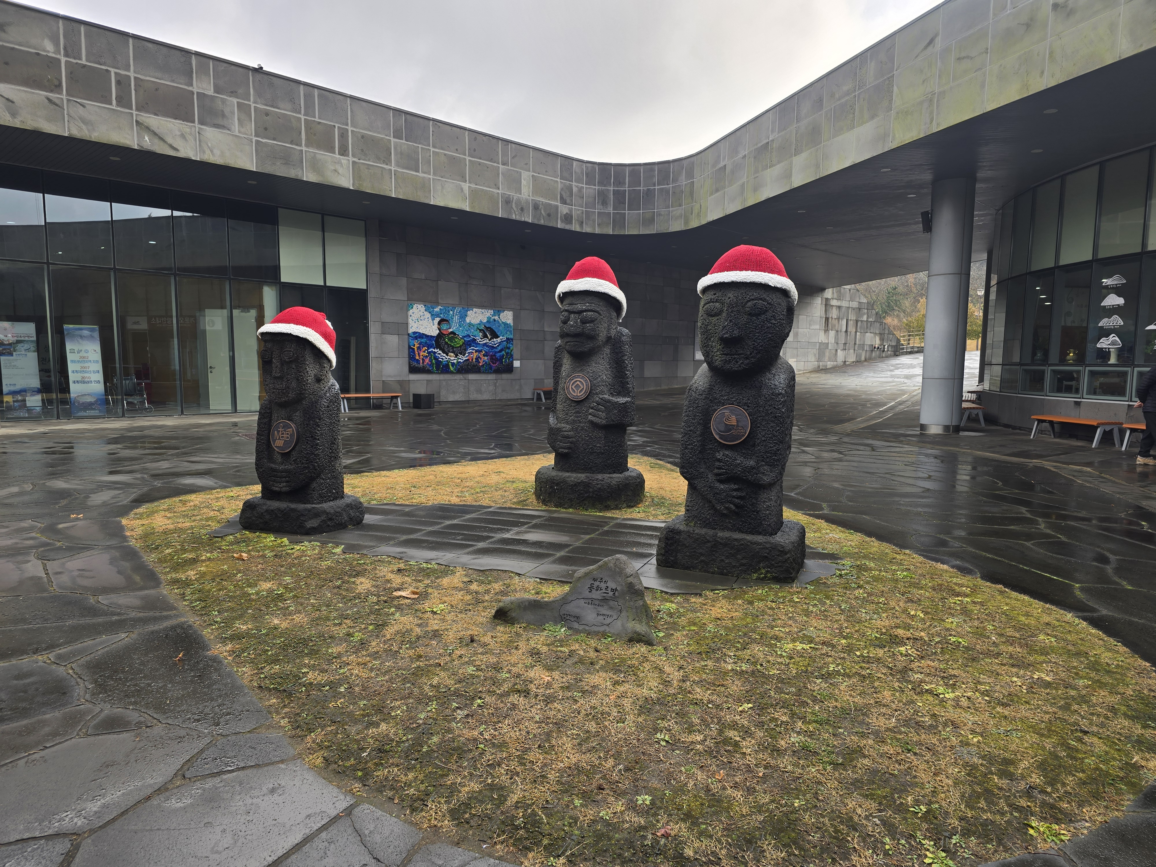 둥근 건물 안쪽으로 들어서면 빨간 싼타모자를 쓴 돌하루방이 맞이 합니다