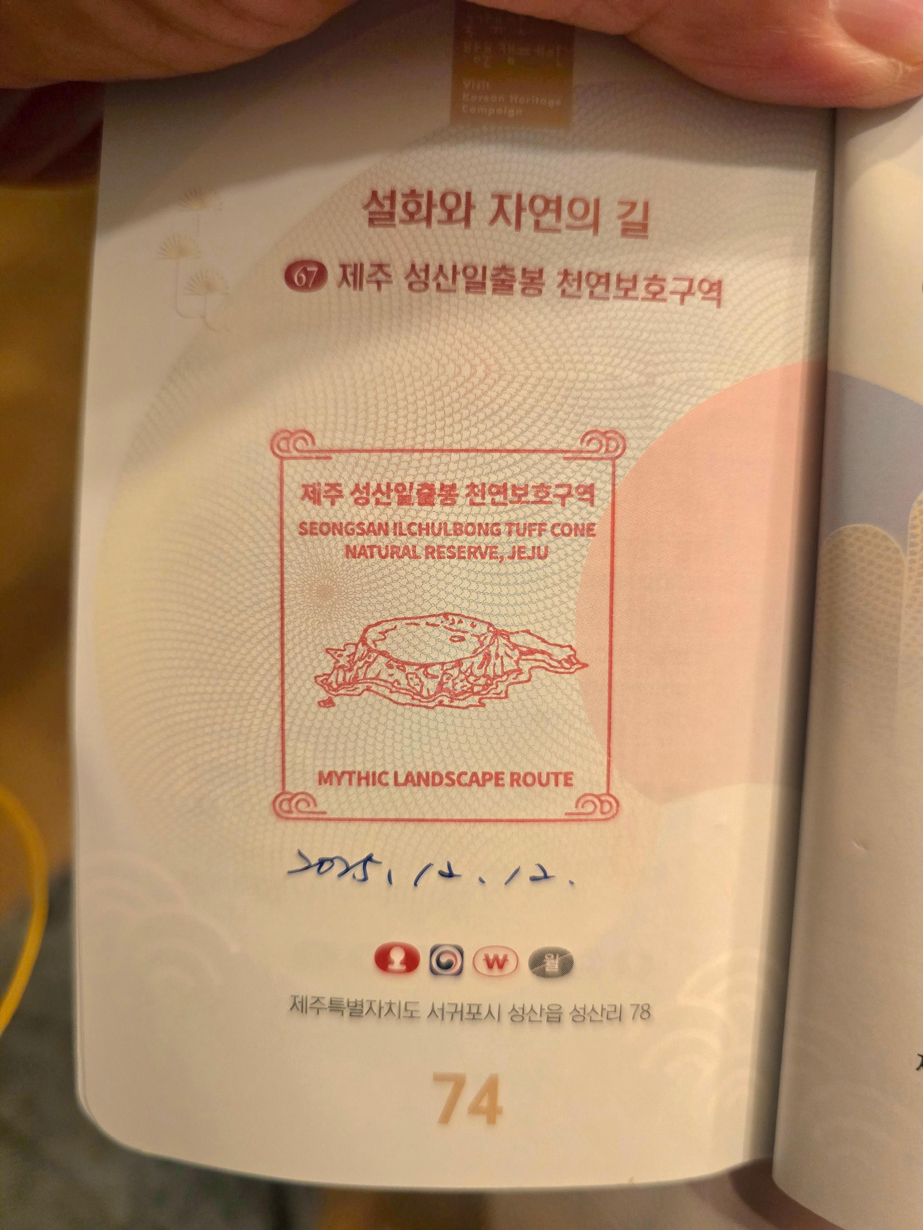 성산일출봉관리사무소에 가서 방문자여권 스탬프를 받앗습니다