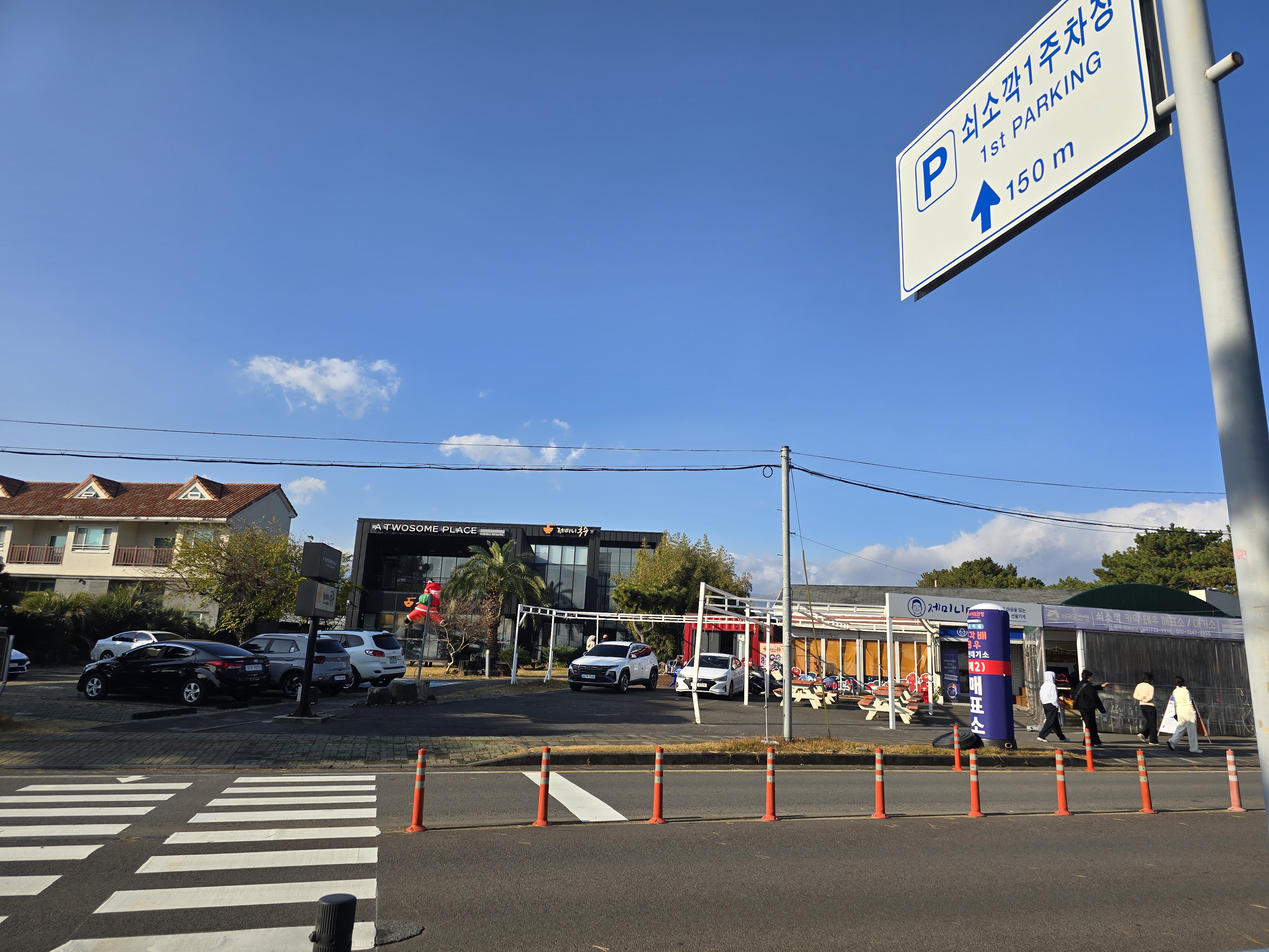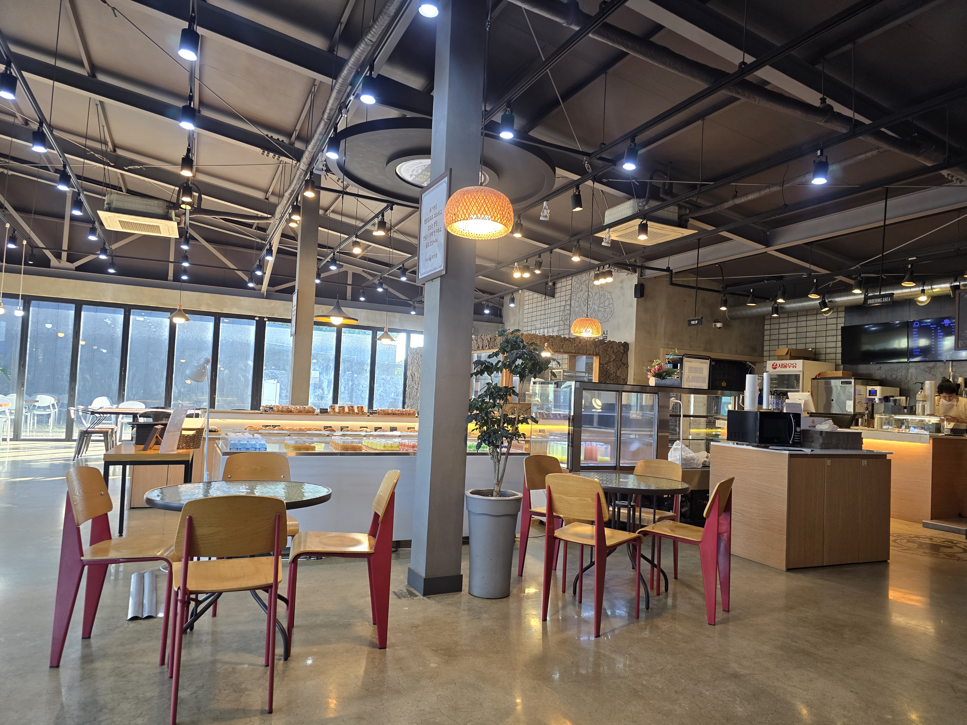 쇠소깍을 둘러보고 잠시 카페에서 휴식을 취했습니다 . 넒은 주차장이 있는 쇠소깍 빵명장 카페입니다