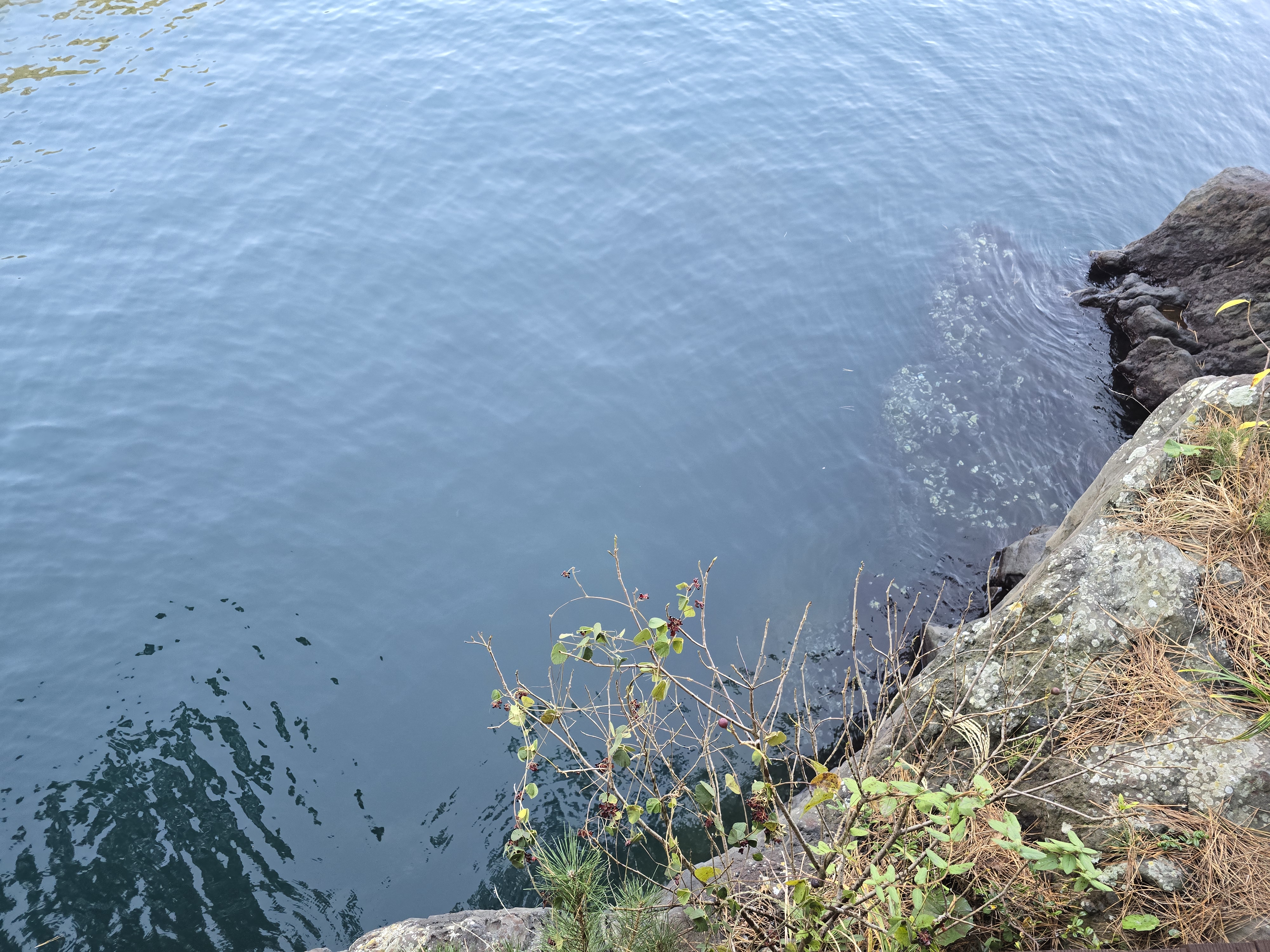 맑은 물로 속이 비치기는 하는데 깊이를 알 수 없습니다 .