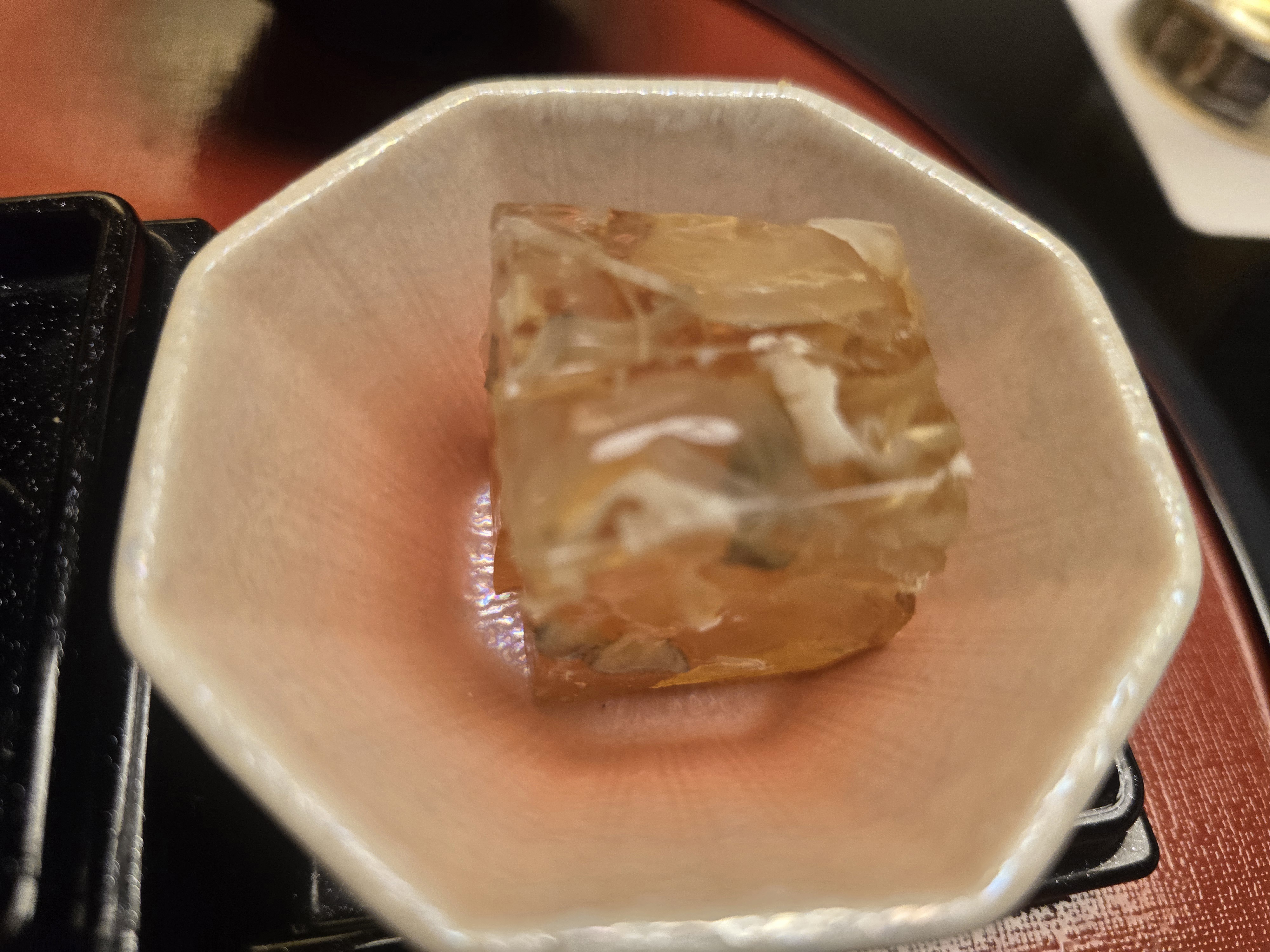 복껍질에서 나오는 젤라틴으로 묵을 만들었습니다.