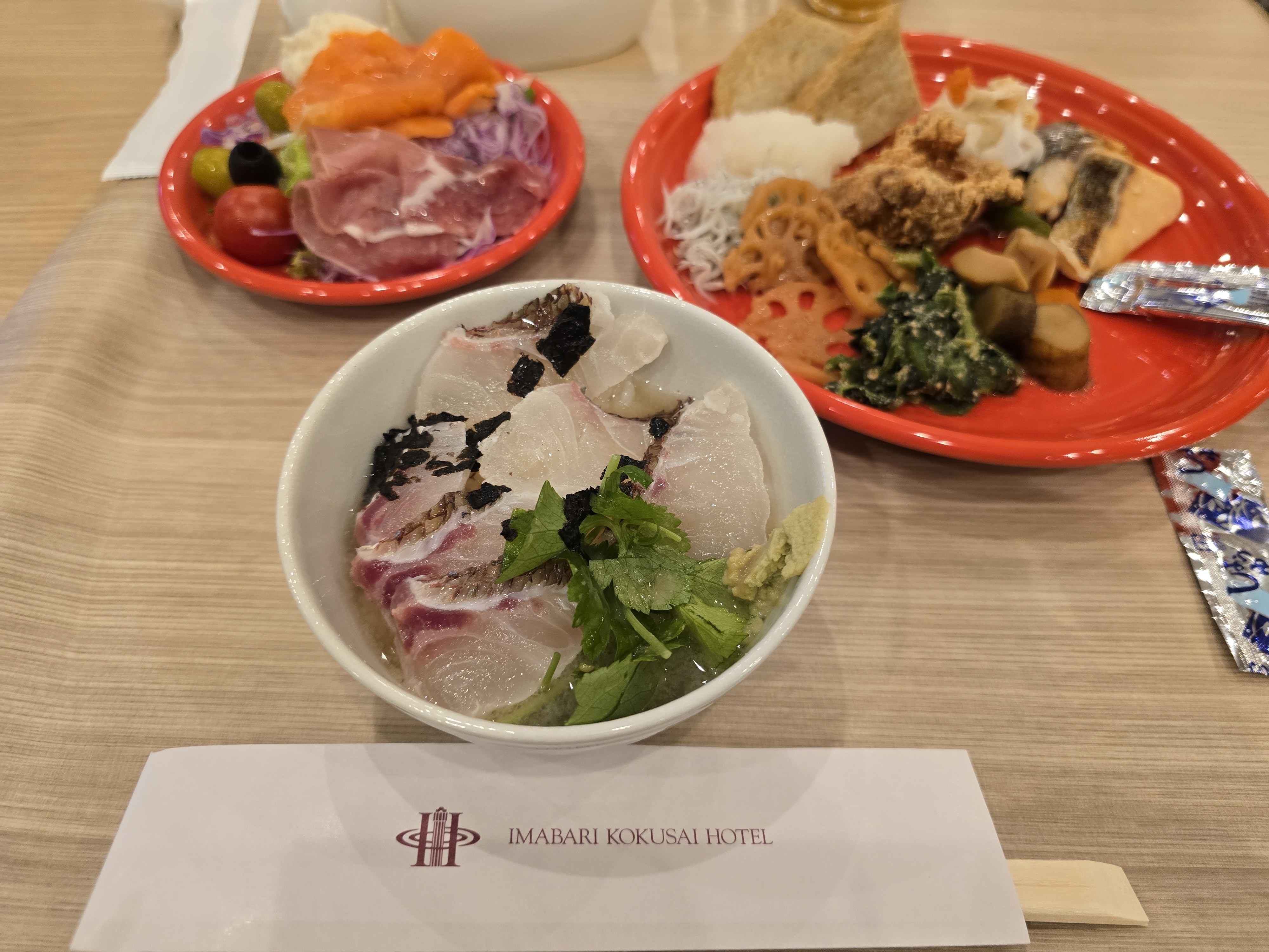 이마바리고쿠사이호텔에 일년만에 오니 관광객들을 위한 시코쿠의 명물을 다양하게 준비한 정성이 엿보였습니다 . 잘먹었습니다