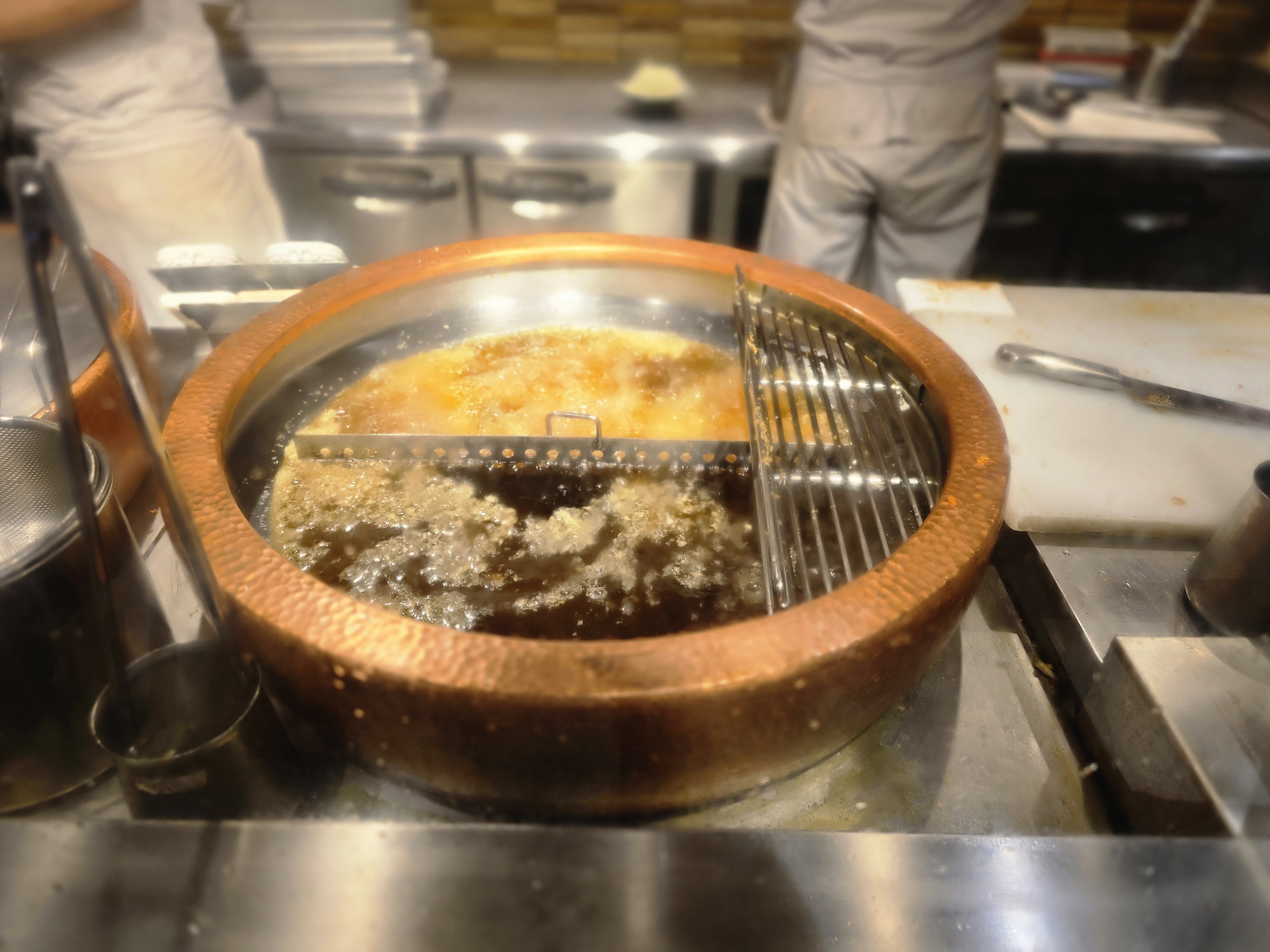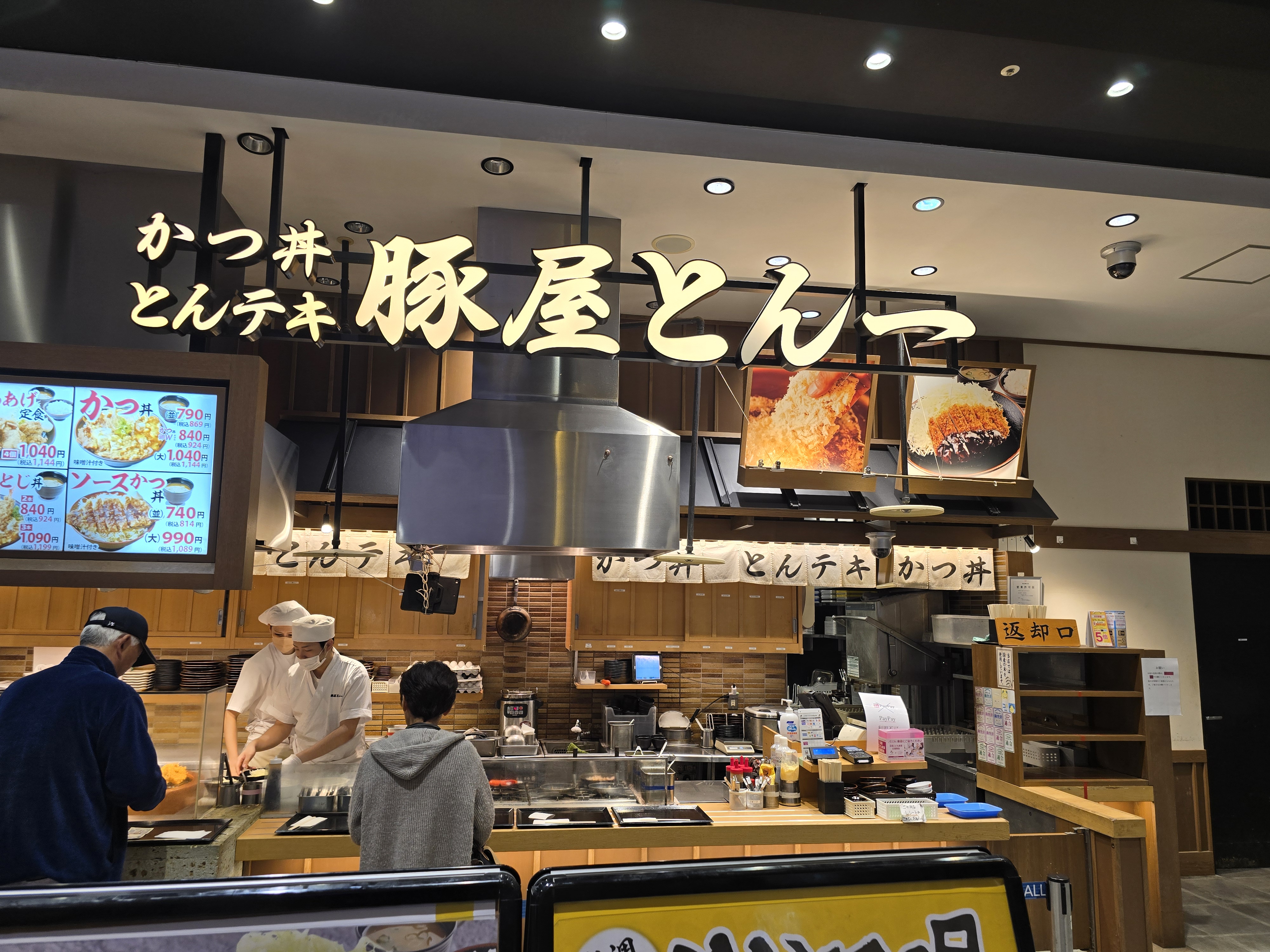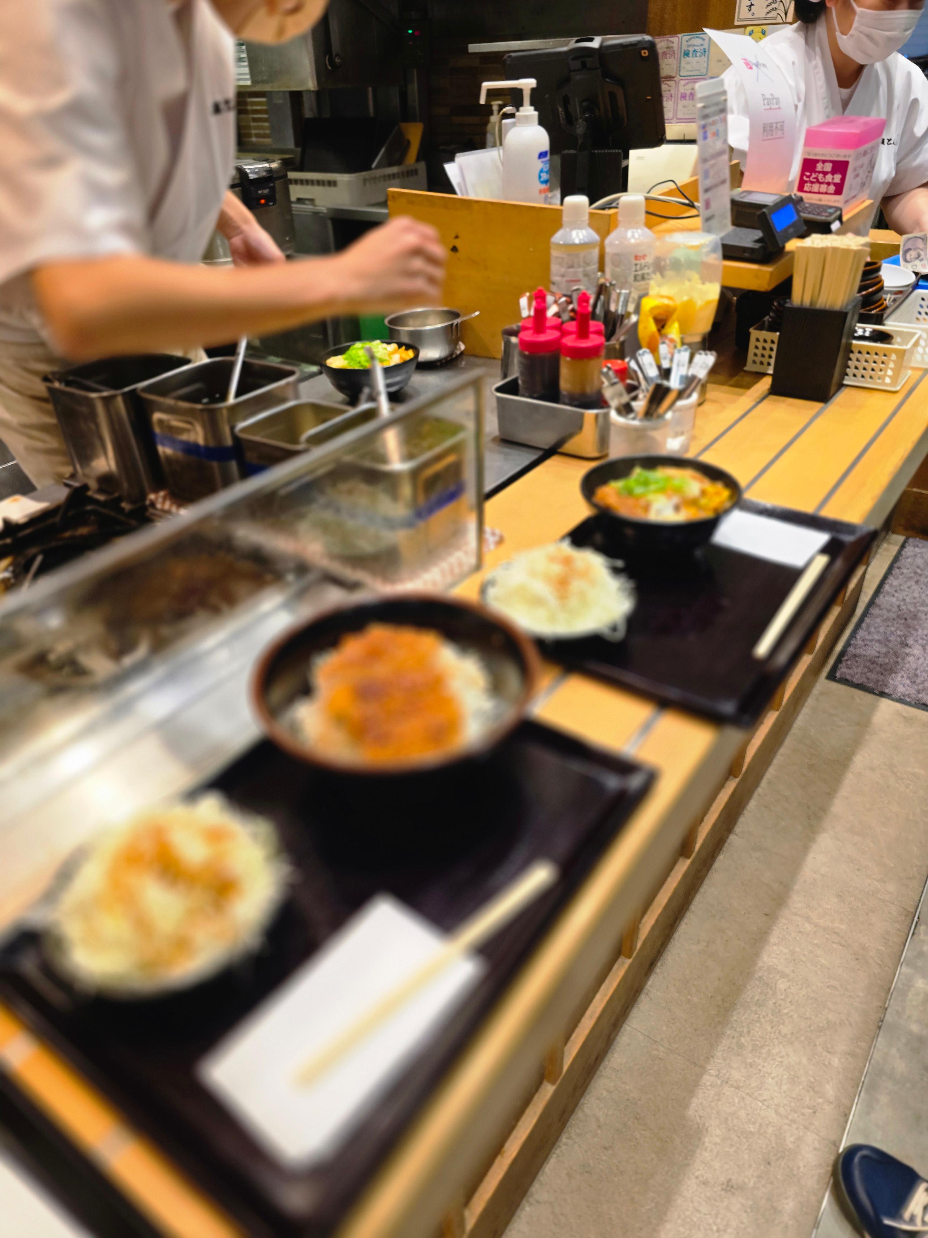 바로 앞에서 가츠동을 만드는 것을 볼 수 있어 재미잇습니다 , 거의 기계적으로 움직입니다